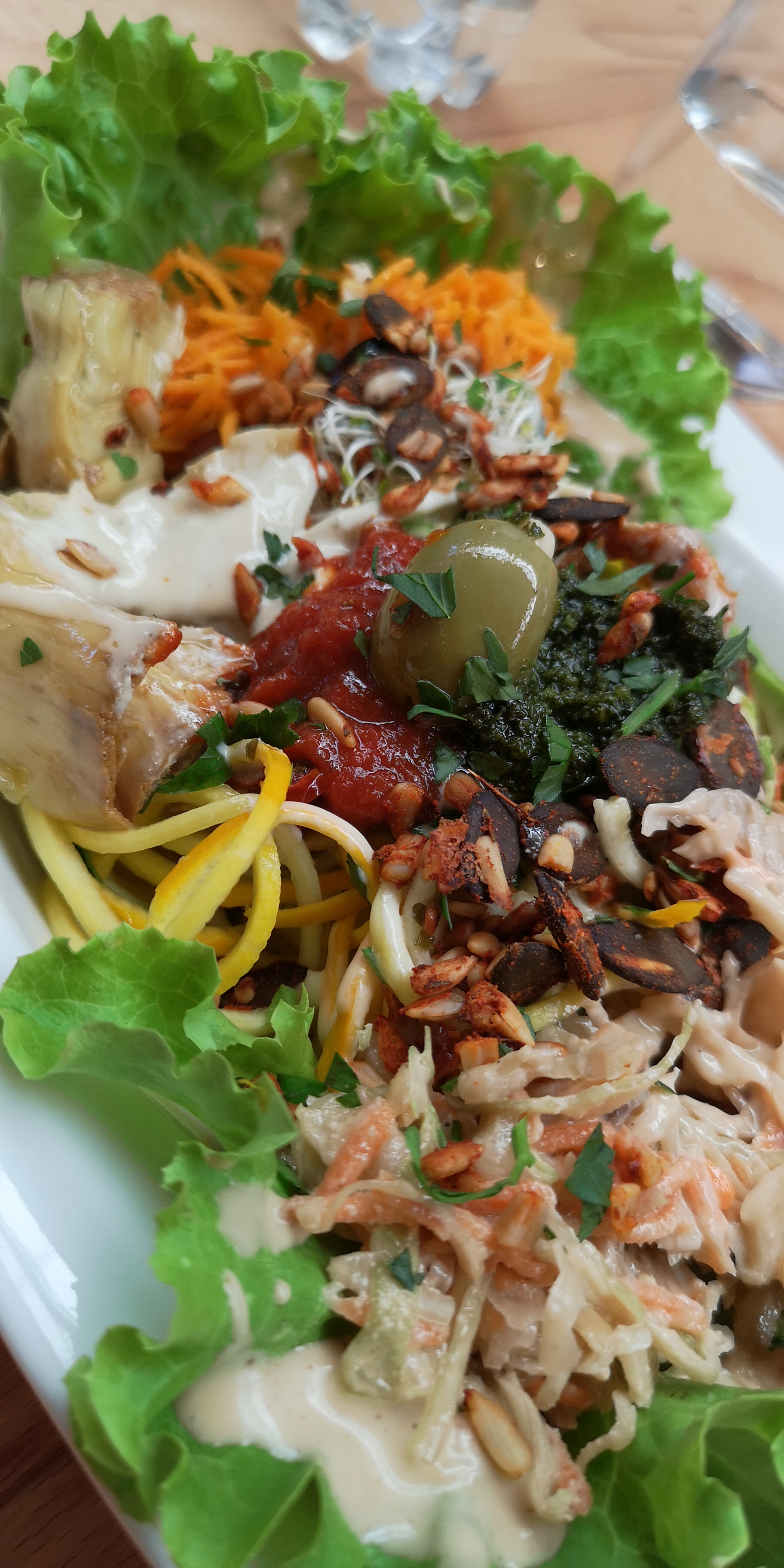Ma meilleure adresse pour du vegan, bio, frais et cru à Colmar et même la seule à proposer une si belle salade vegane. On se régale. Je ne m'en lasse pas. Il y'en a pour tous les goûts avec de burgers, jus frais, desserts sans gluten ni lactose. Une petite merveille.