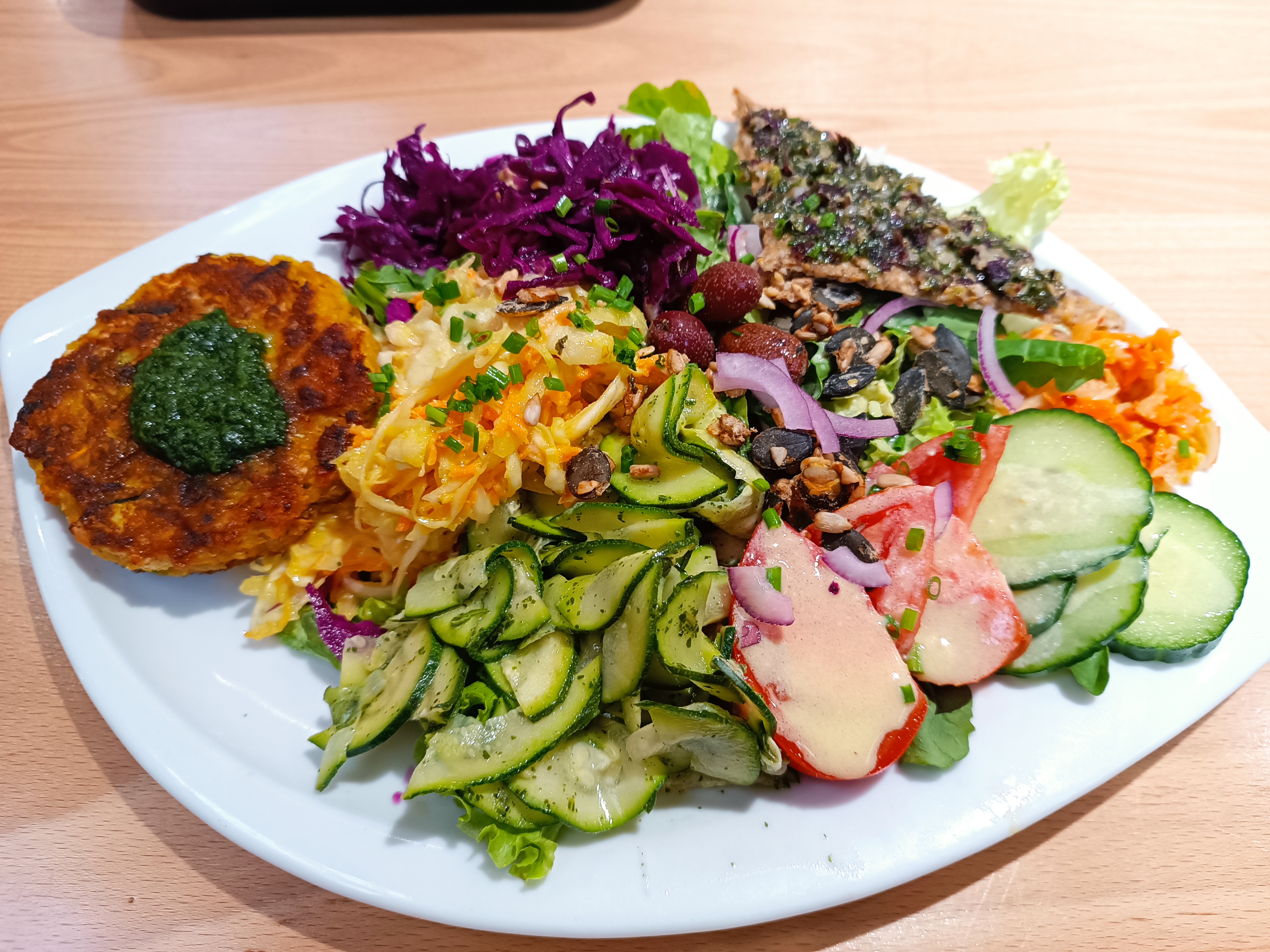 100% mérite une visite pour les végétaliens. Bonne nourriture. Très grand choix. Service germanophone super sympathique.
