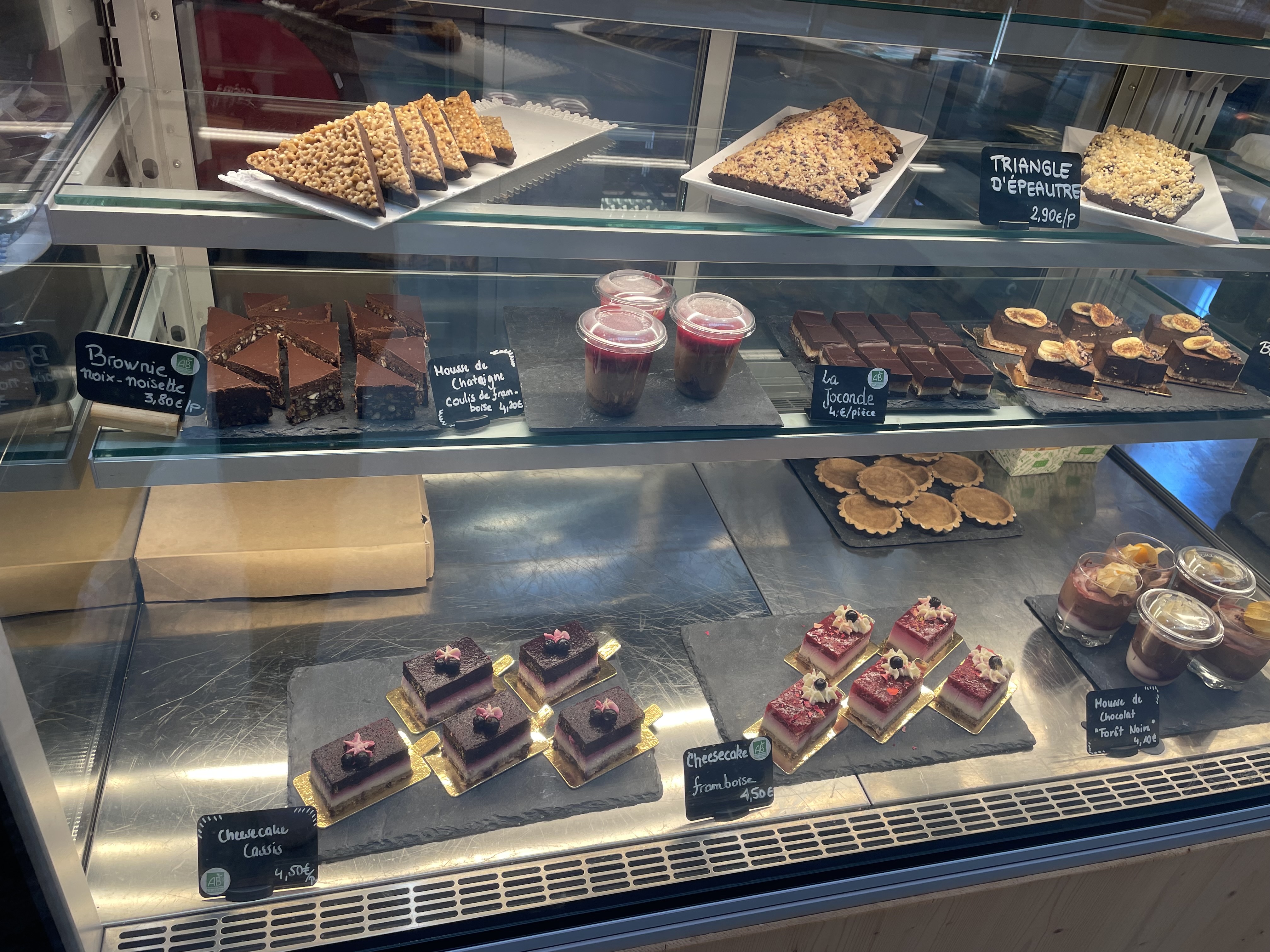 Très bonnes pâtisseries (brownie, choco-café, caramel et cheesecake) et galettes graines (Florentin, multi graines, cajou, noisettes) !