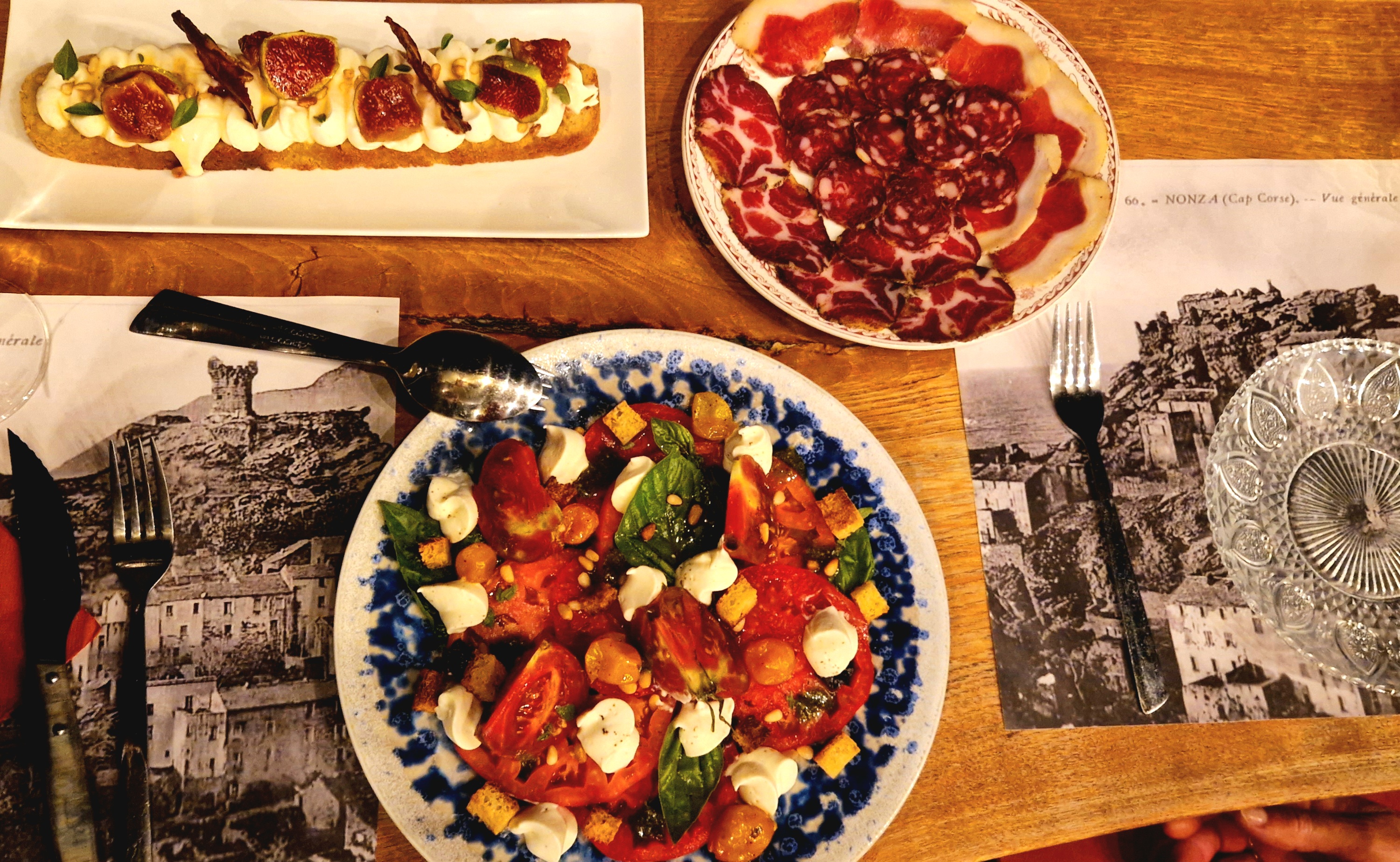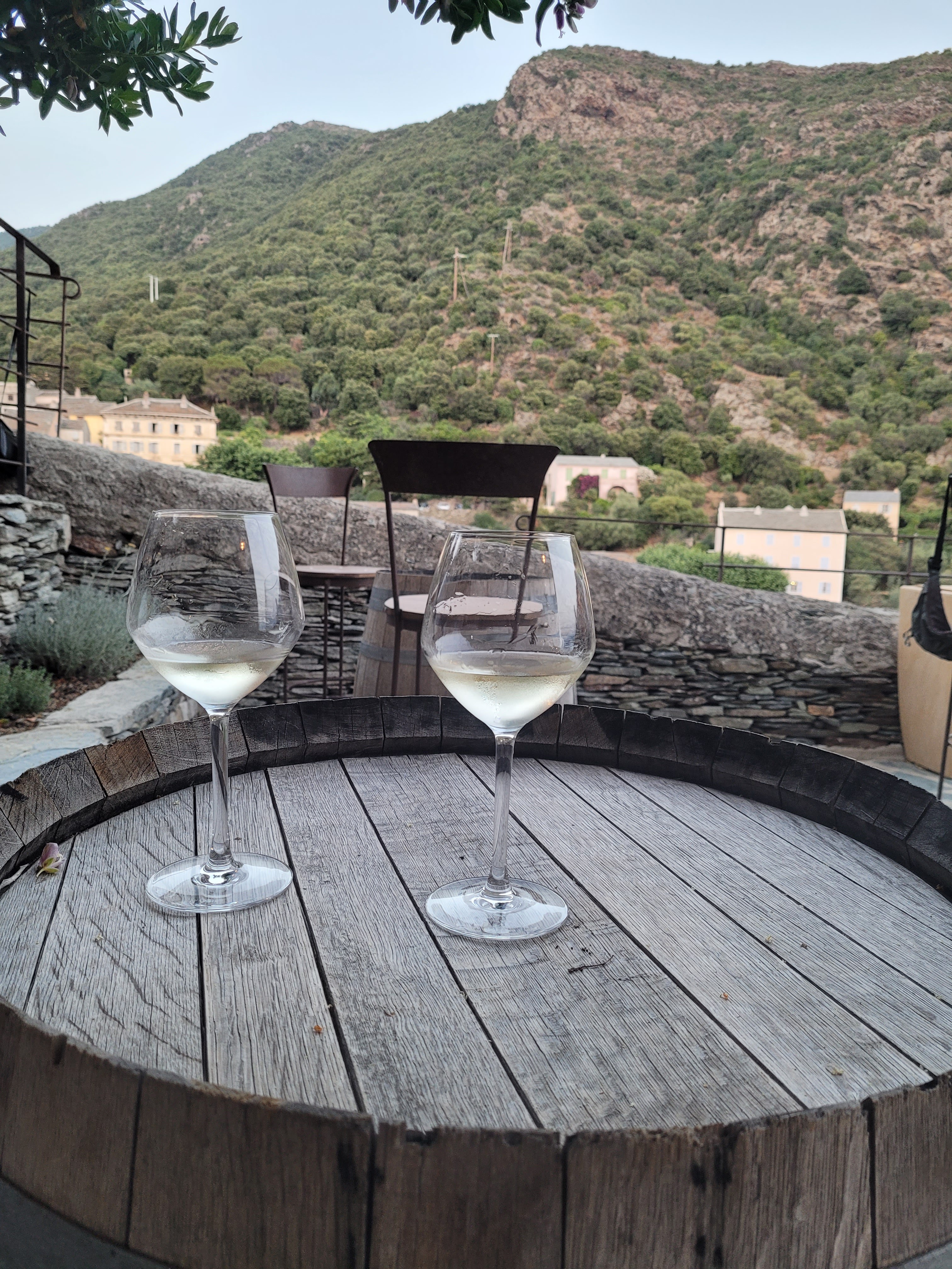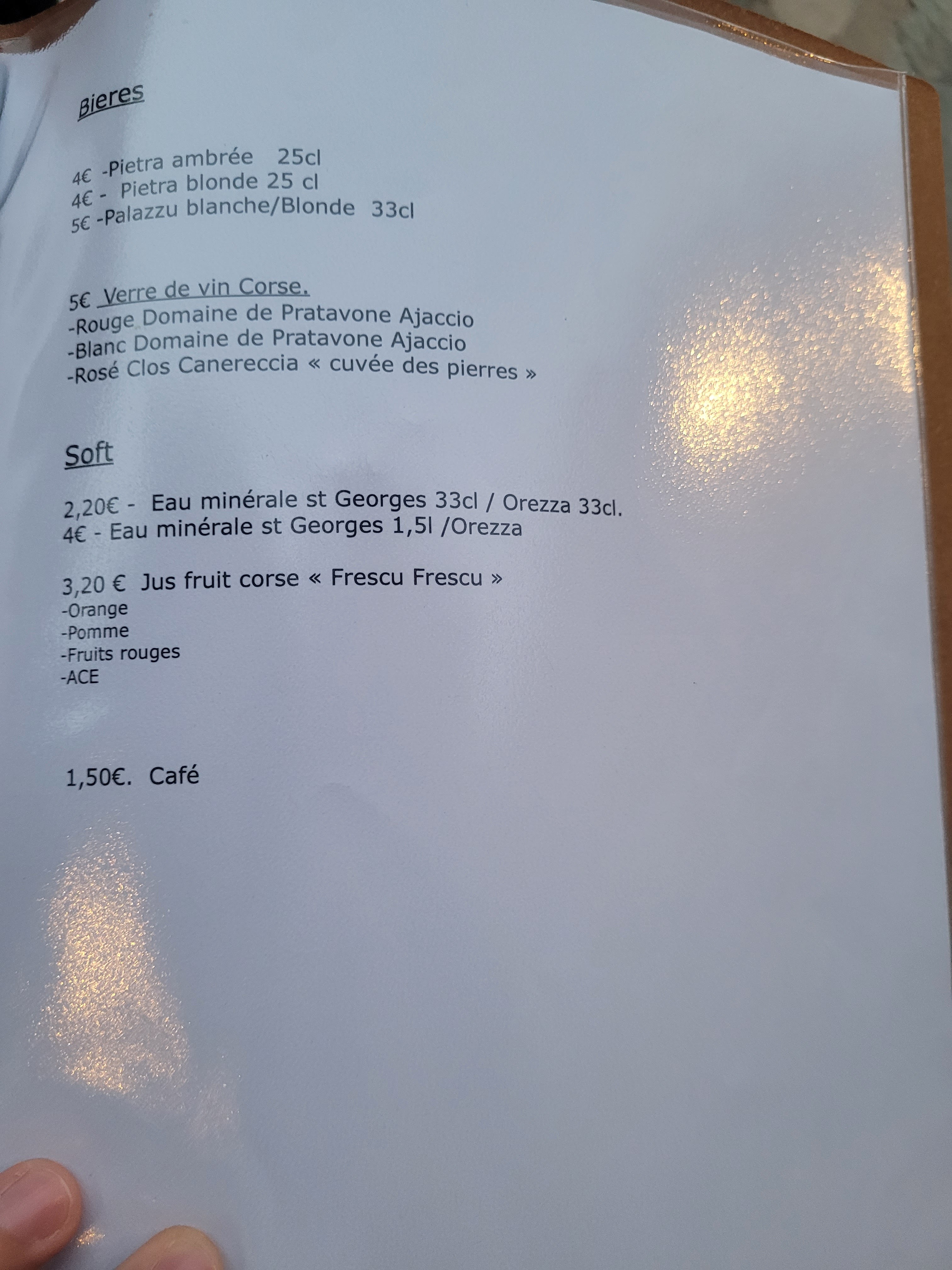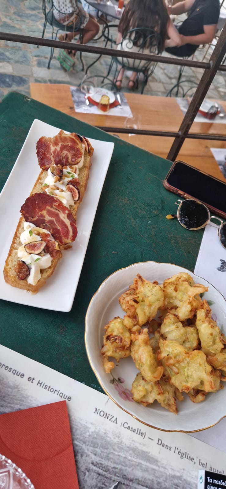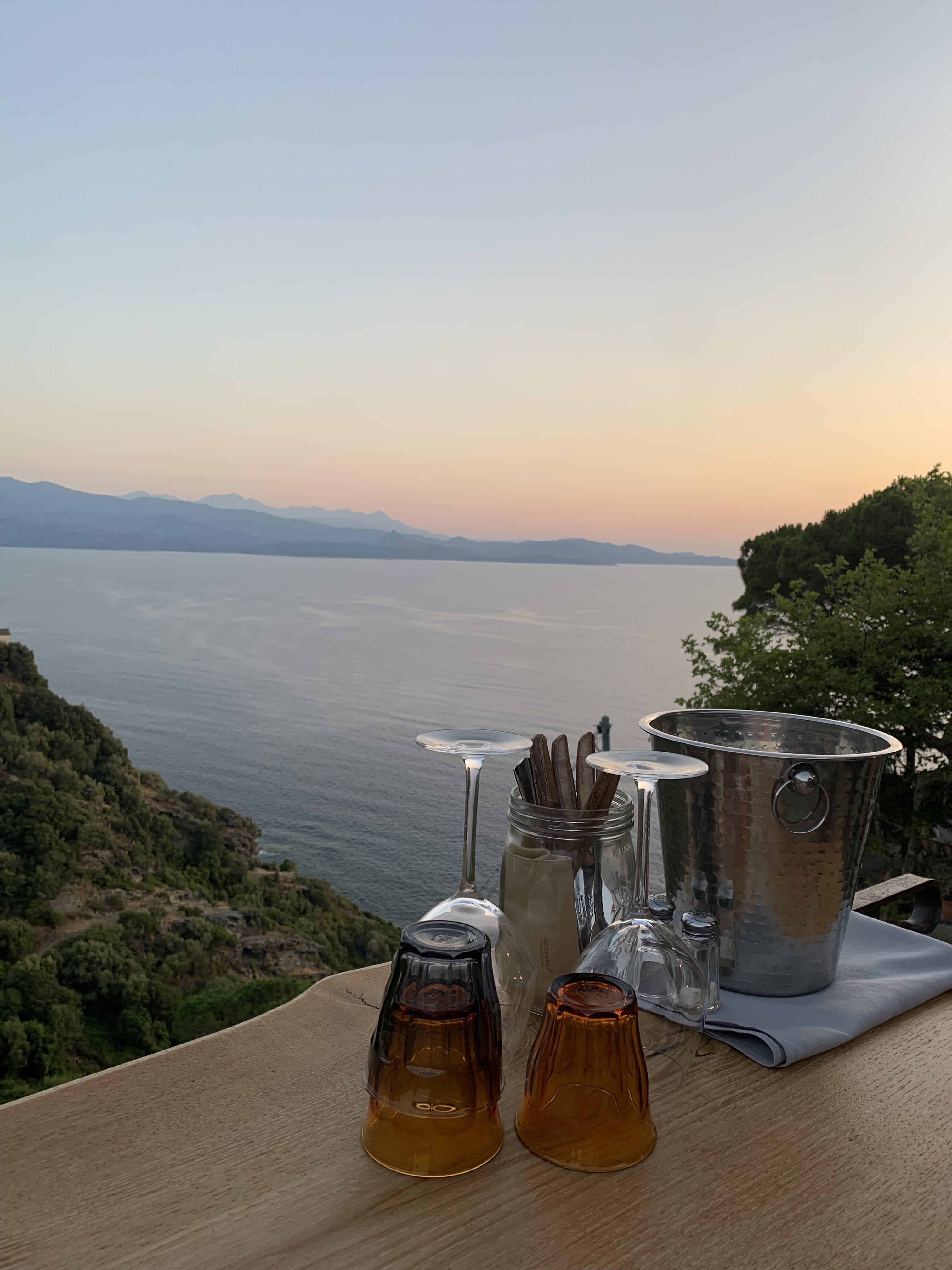 Matteu et Stefana (en espérant épeler correctement leurs prénoms) ont ravi nos papilles avec une carte de produits frais (certains plats de la carte peuvent avoir un supplément avec explications données au préalable) dans un cadre idyllique, avec vue sur Nonza et le bleu de la Mediterranée. Mention spéciale à Matteu qui nous a aidés à nous garer par téléphone dans Nonza qui peut être bondée en période estivale. Bref, un lieu enchanteur que, sans surprise, je recommande vivement!