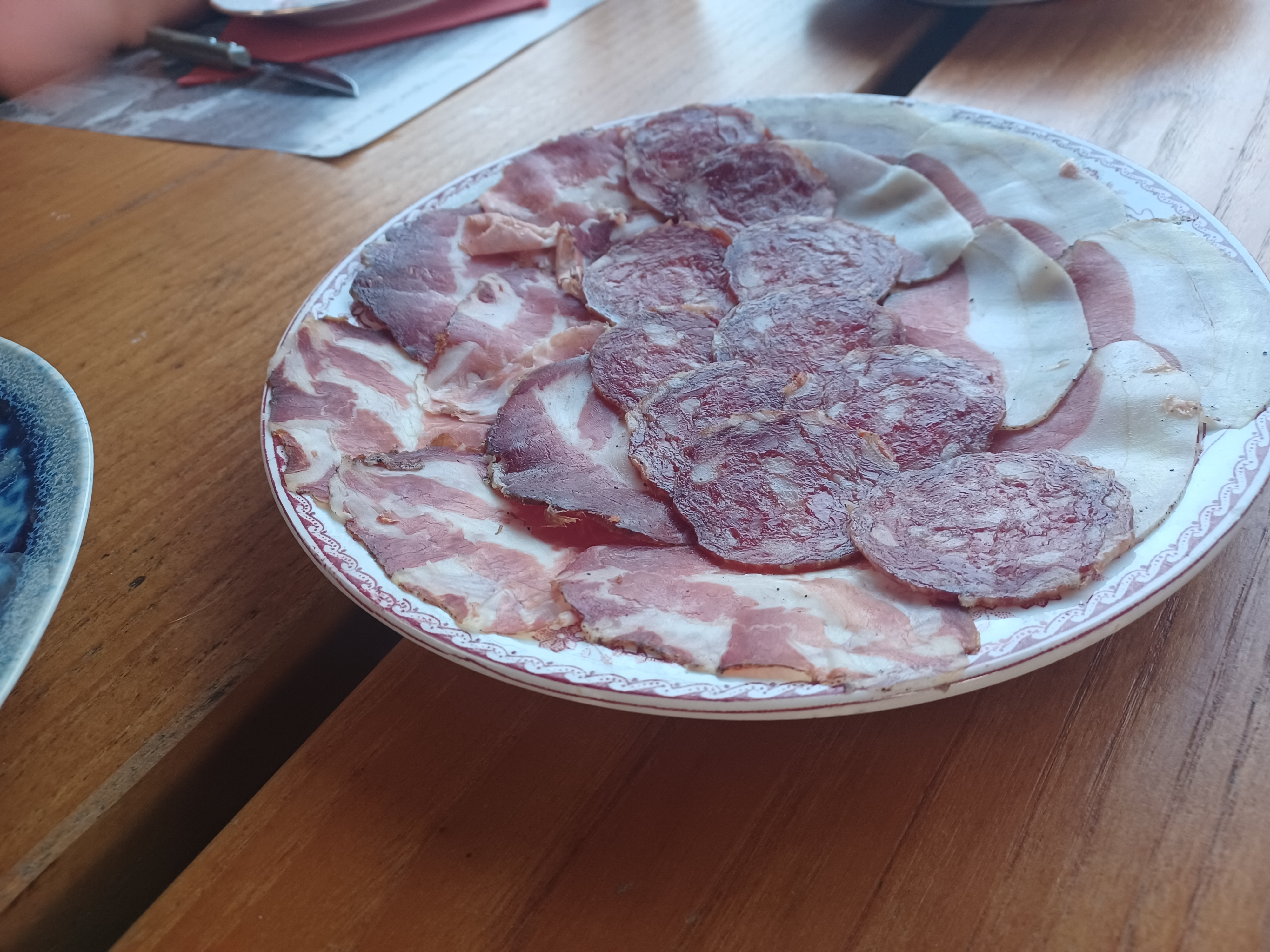 Nous avons déjeuné avec une vue imprenable et de très bons plats, des produits cultivés par eux ou faits maison, le tout à zéro km ! Restaurant approuvé haut la main par deux italiens !