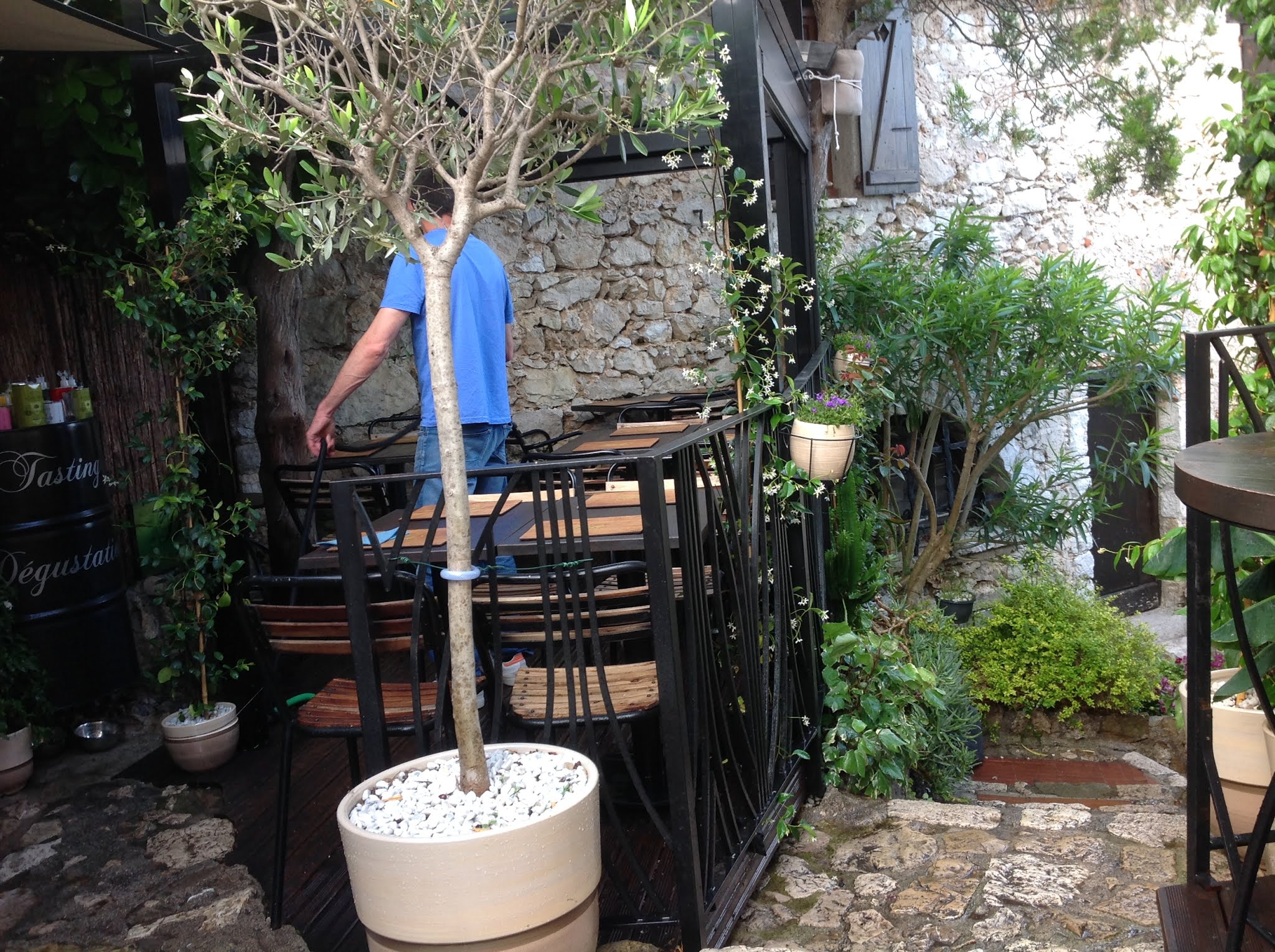 Beaucoup de monde à Eze-village aujourd’hui pour le dernier jour d’avril. Il ne restait plus que ce ravissant petit restaurant perché sur les hauteurs d’Eze-Village pour pouvoir déjeuner sans trop attendre. Heureusement car la salade niçoise (19€) était copieuse et bien bonne. Et le serveur, super sympa et souriant.