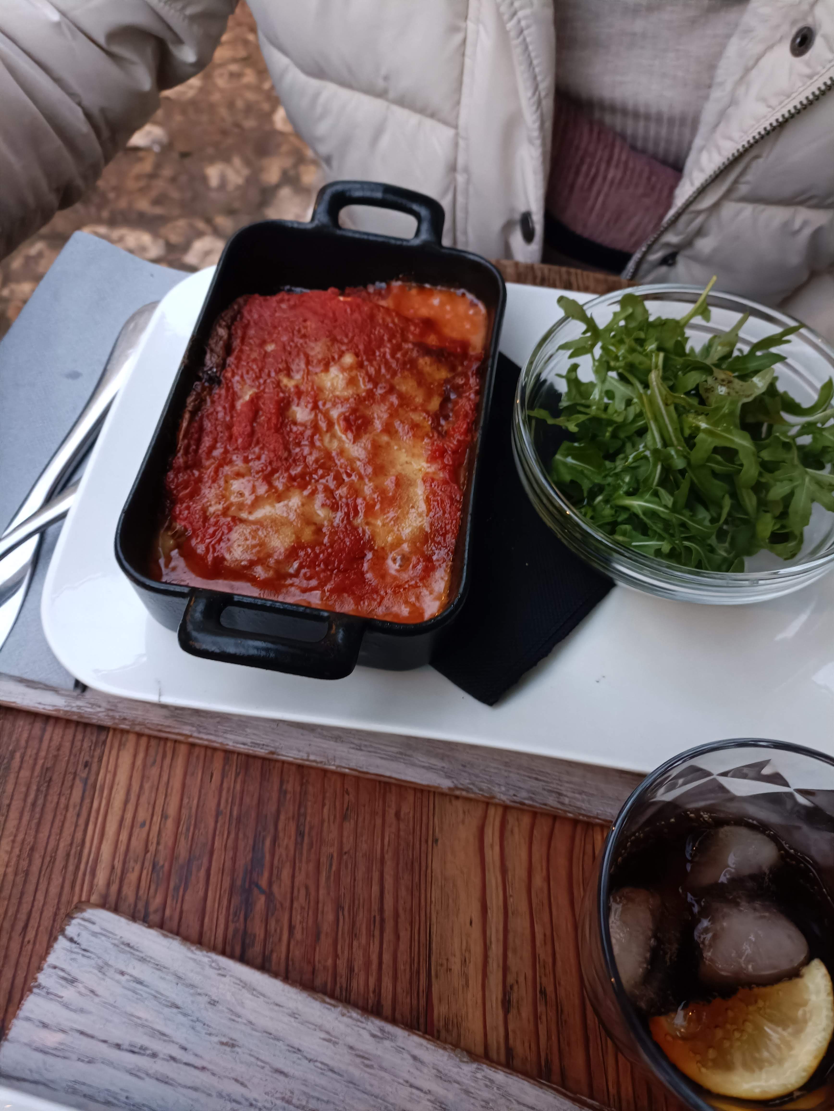 La nourriture était vraiment délicieuse et le service était excellent ! Vous êtes si gentil et doué pour recommander de la nourriture ! J'avais des lasagnes et un sandwich, et la taille du sandwich était vraiment grande ! La salade de roquette qui l'accompagne est vraiment délicieuse et spéciale... Même si cela semble ordinaire, cela a un goût spécial ! C'est le meilleur !!