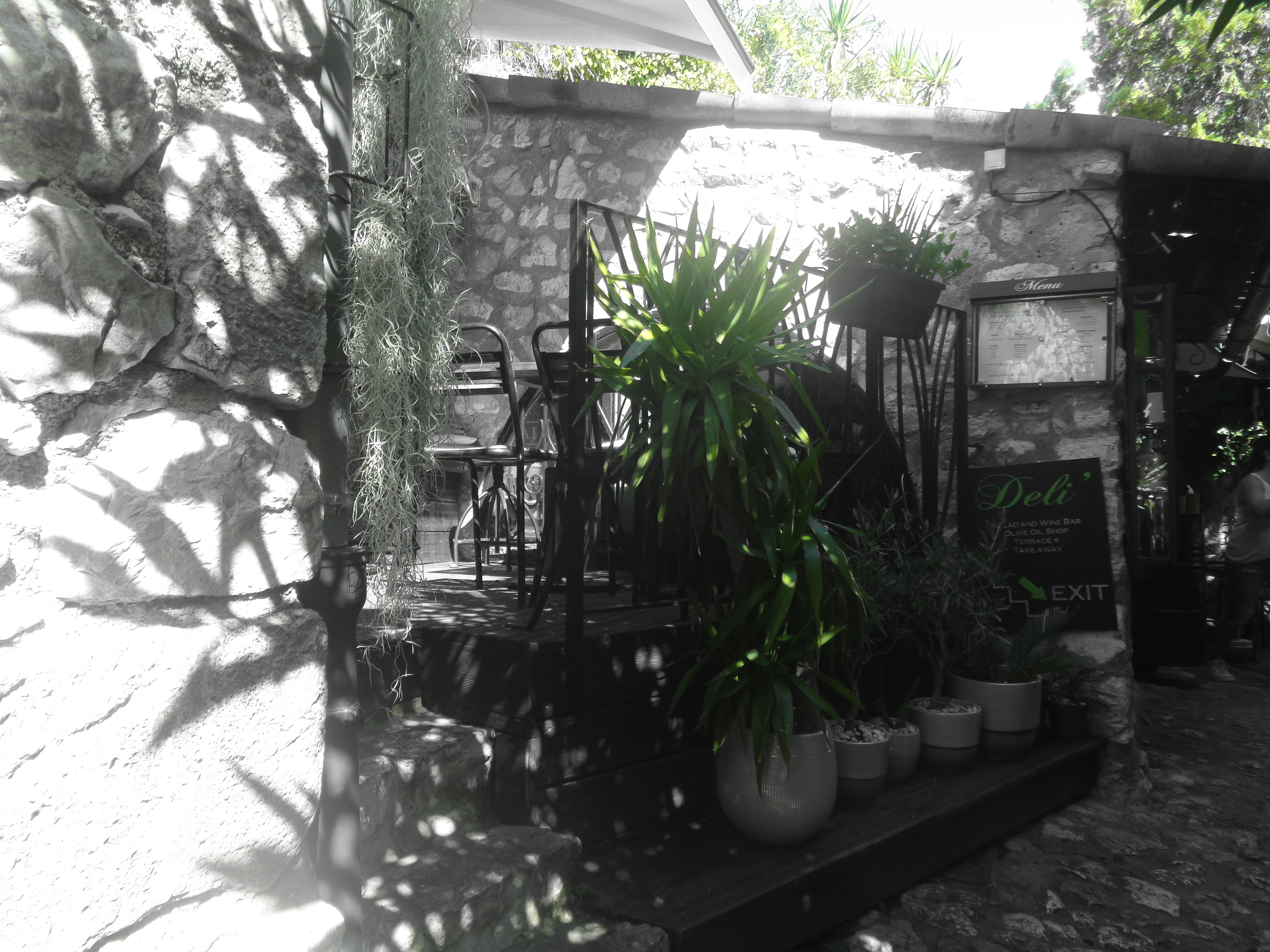 Petit restaurant dans les ruelles du vieux village où sont proposées de magnifiques salades composées avec des produits frais, des pizzas maison et des plats méditerranéens conviviaux. Tres agréable, pas cher et aéré ou l'on peut acheter de très belles huiles d'olives et des vinaigres originaux. Une belle halte avant le jardin exotique.