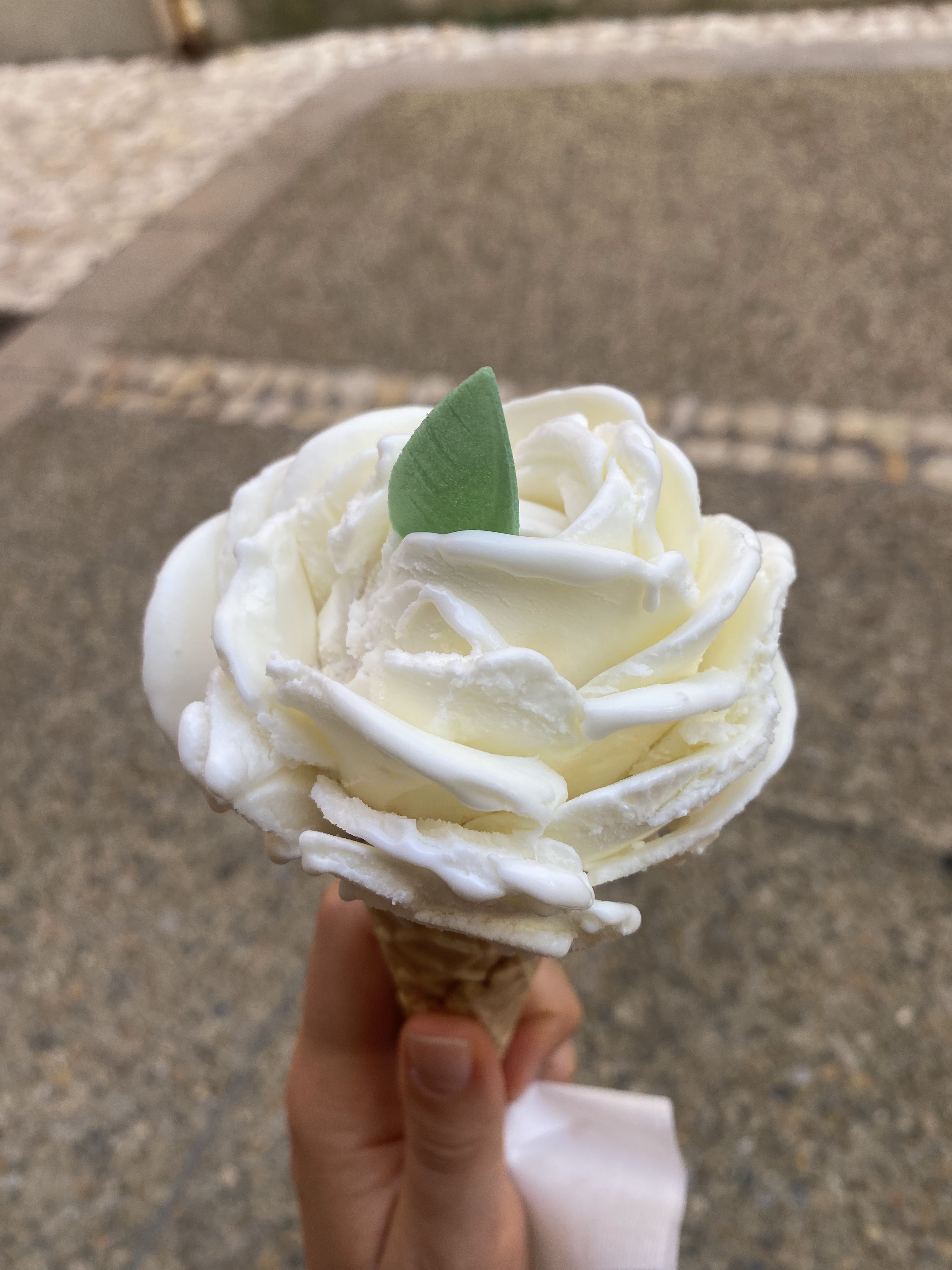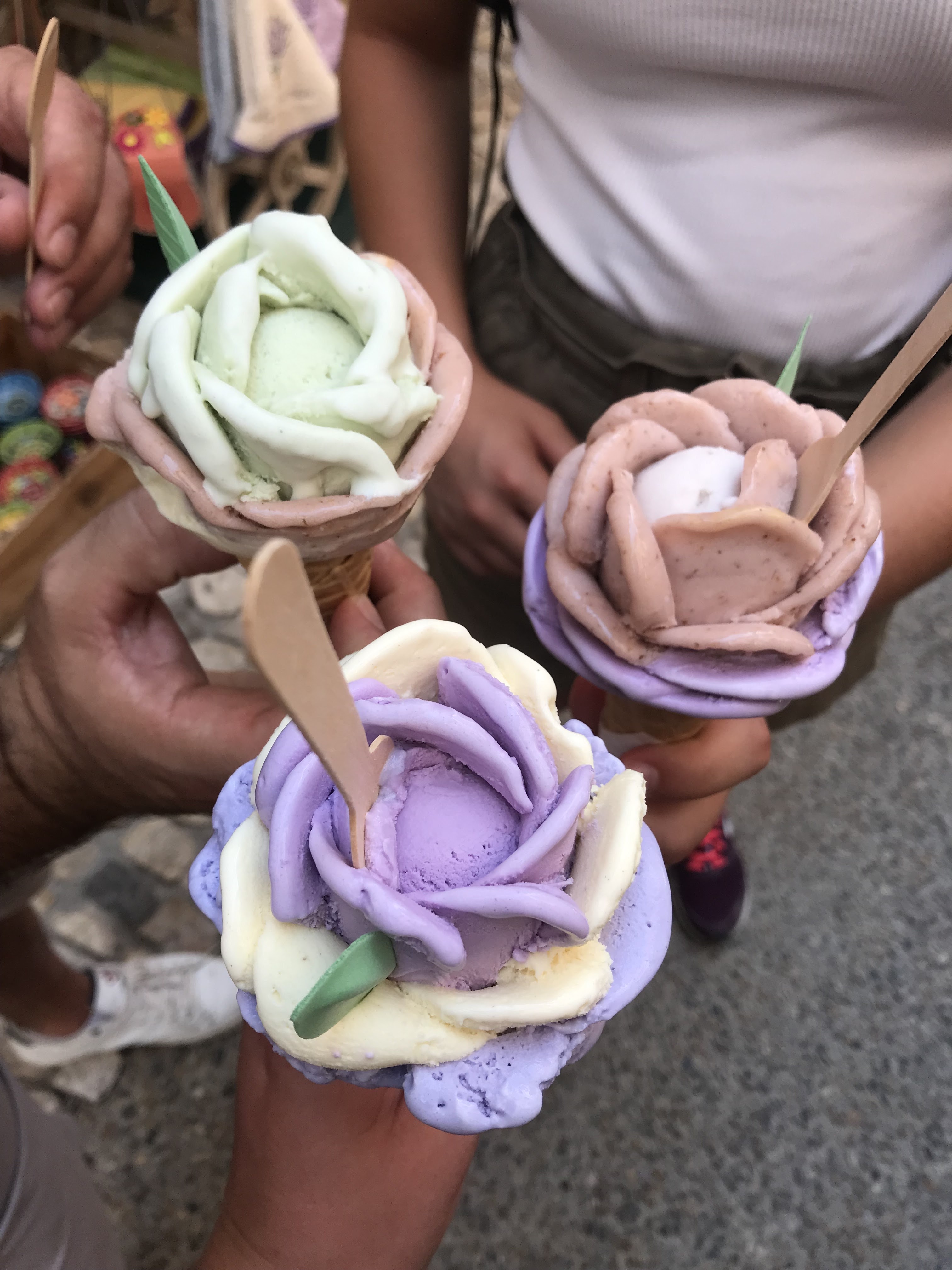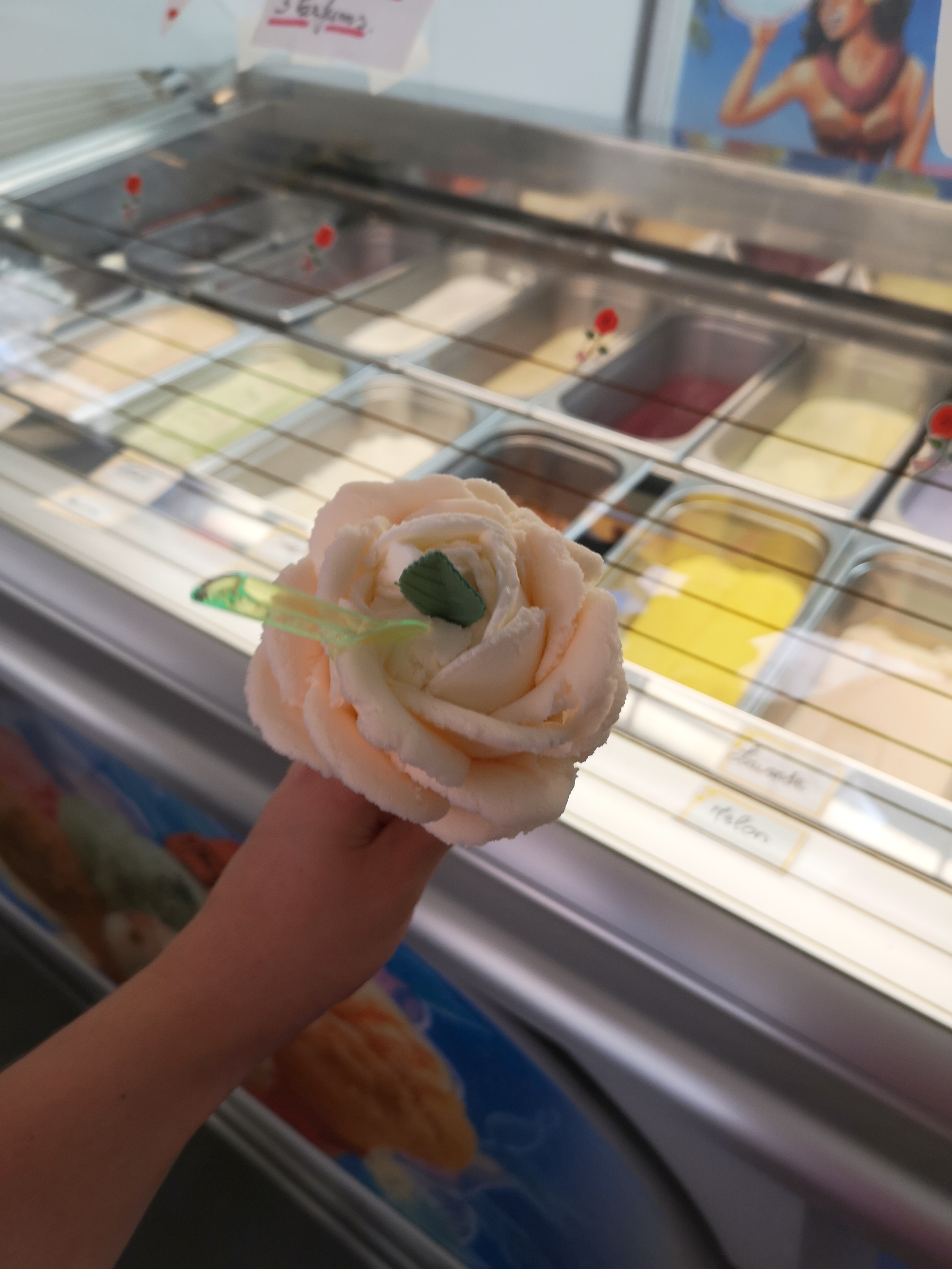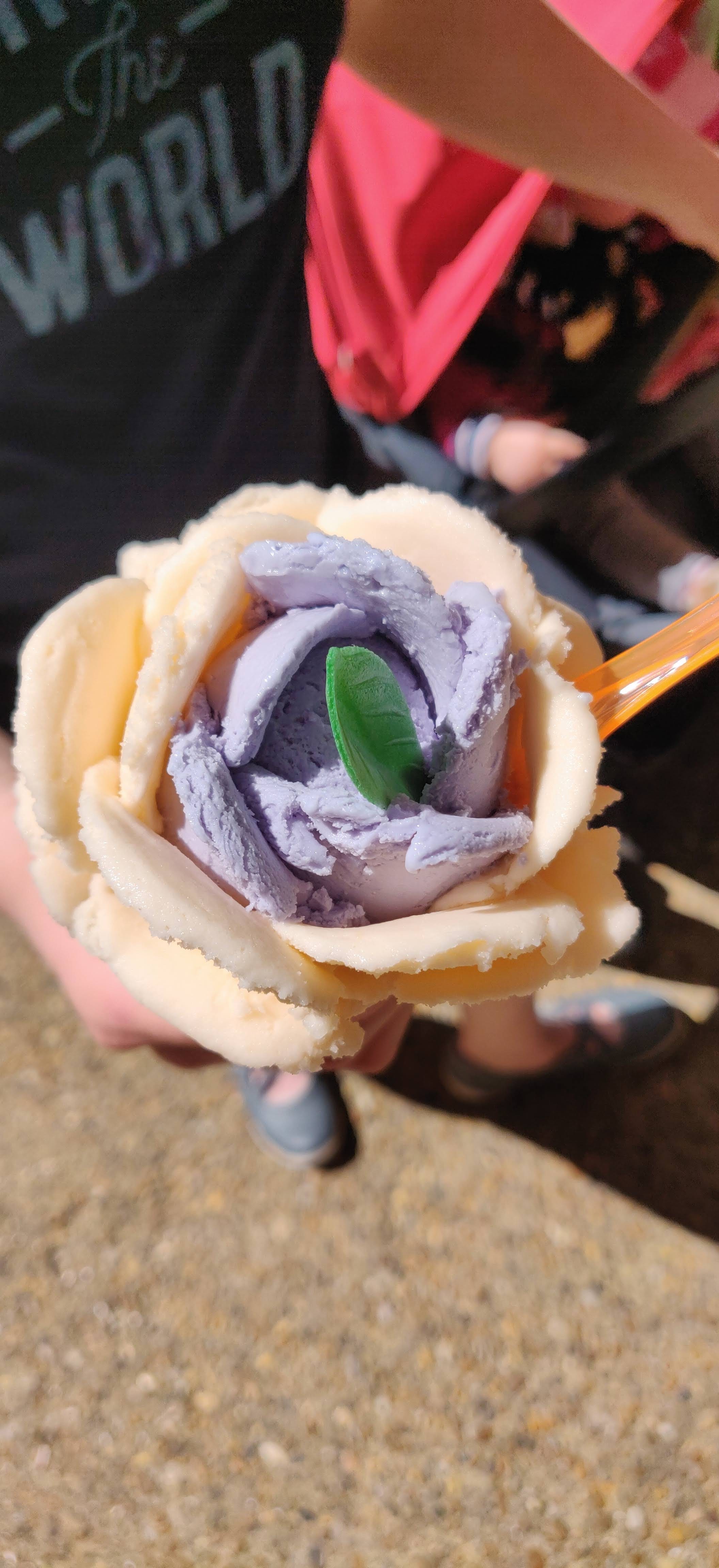 L'argument de vente unique de ce stand de glaces sont les glaces en forme de fleur de rose. Personnel très sympathique ! Je n'ai pas été époustouflé par la qualité de la glace ; les cristaux de glace ne sont jamais bon signe.