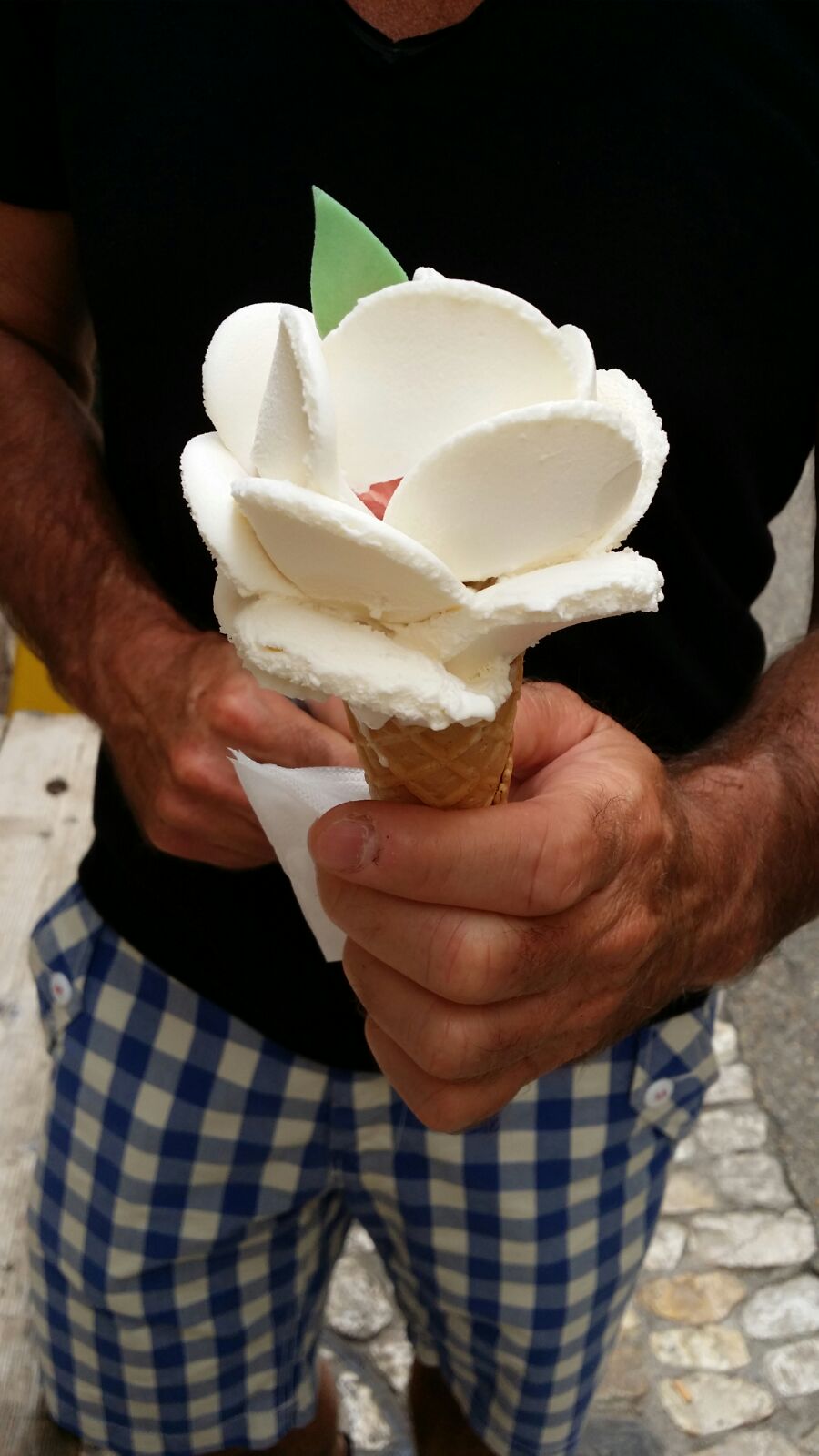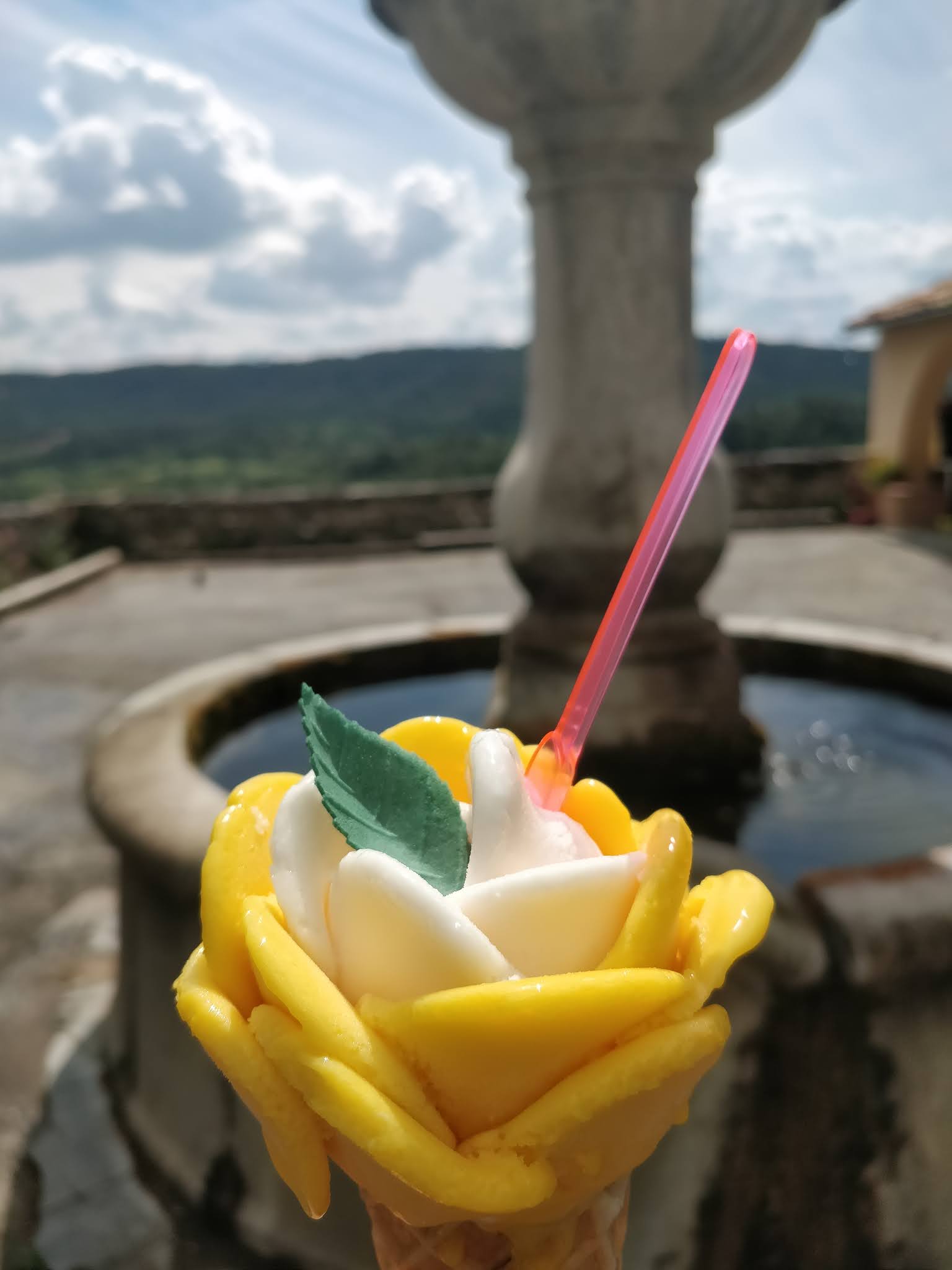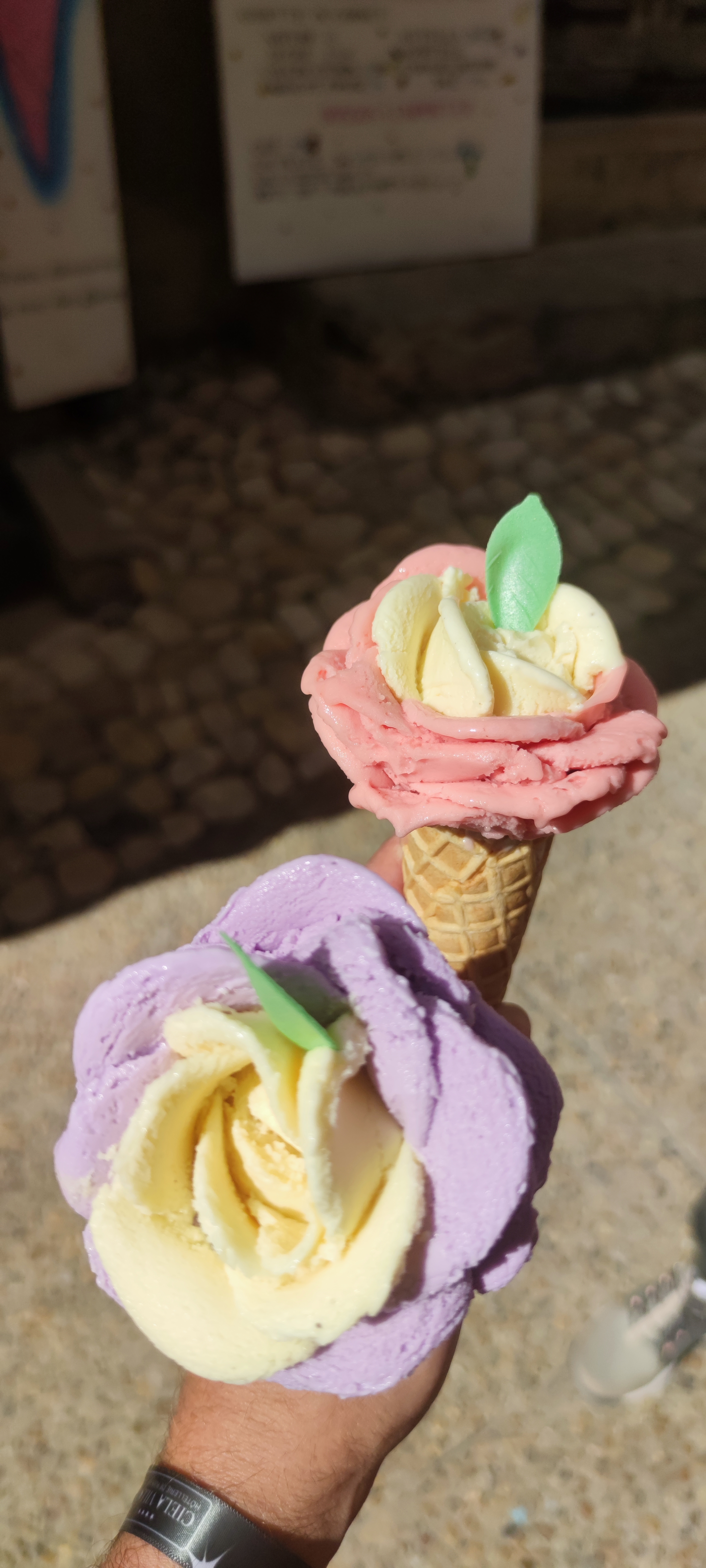 Une journée chaude et une courte promenade nécessitent une glace. Malheureusement, il n'y avait pas de stracciatella. Mais une bonne glace à la rose. C'était agréable.