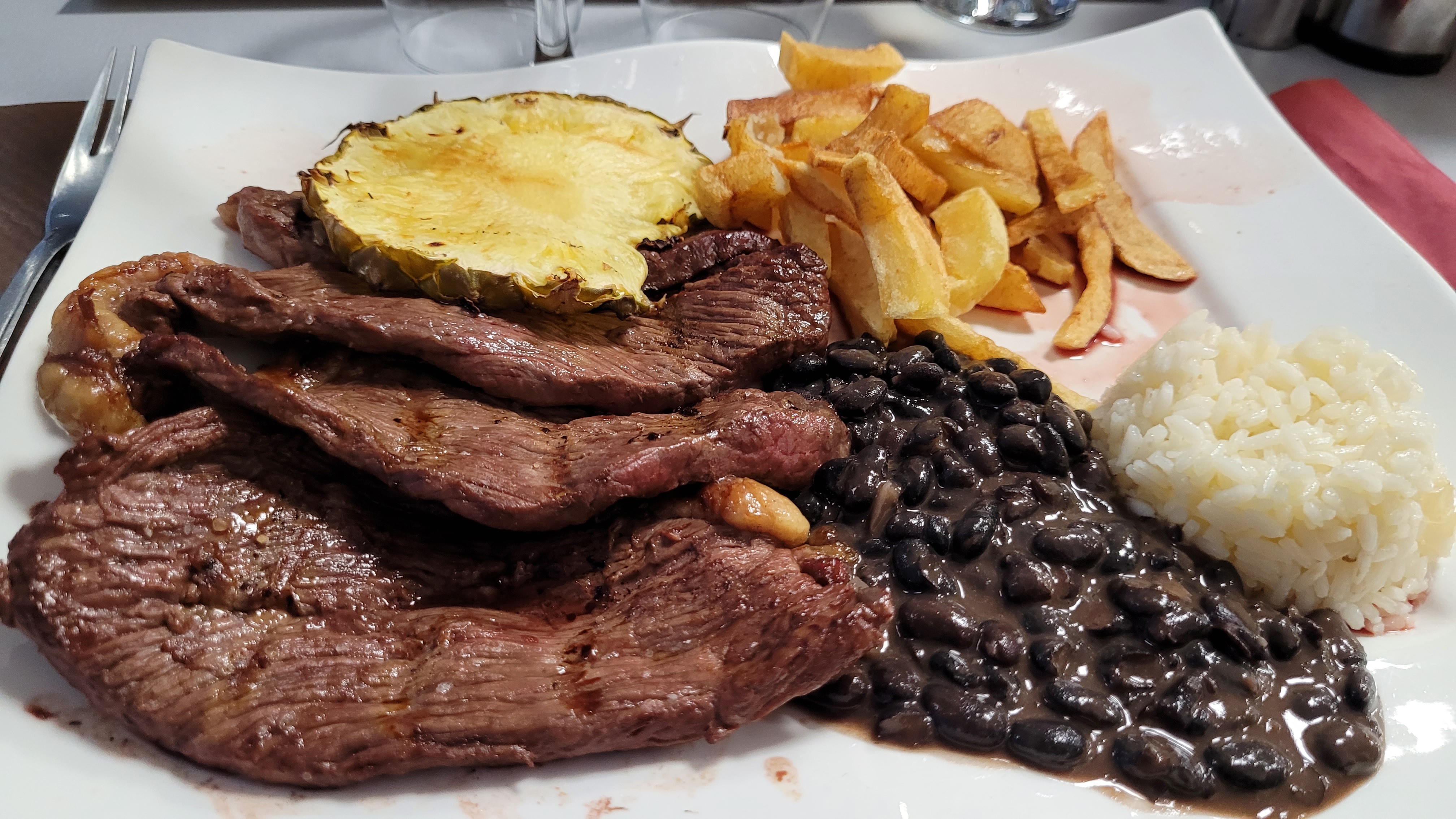 Alors très moyen la picanha trop sec manque les haricots ou alors mettre riz plus salade accompagné. Deuxième point négative la crème brûlée immangeable trop liquide avec des grumeaux. Addition un peu cher a mon gout et un employeur qui n'a pas aimé mes explications surtout sur la crème brûlée . Pour quelqu'un qui vient de Lille avec des amis c'est un peu dur d'avaler