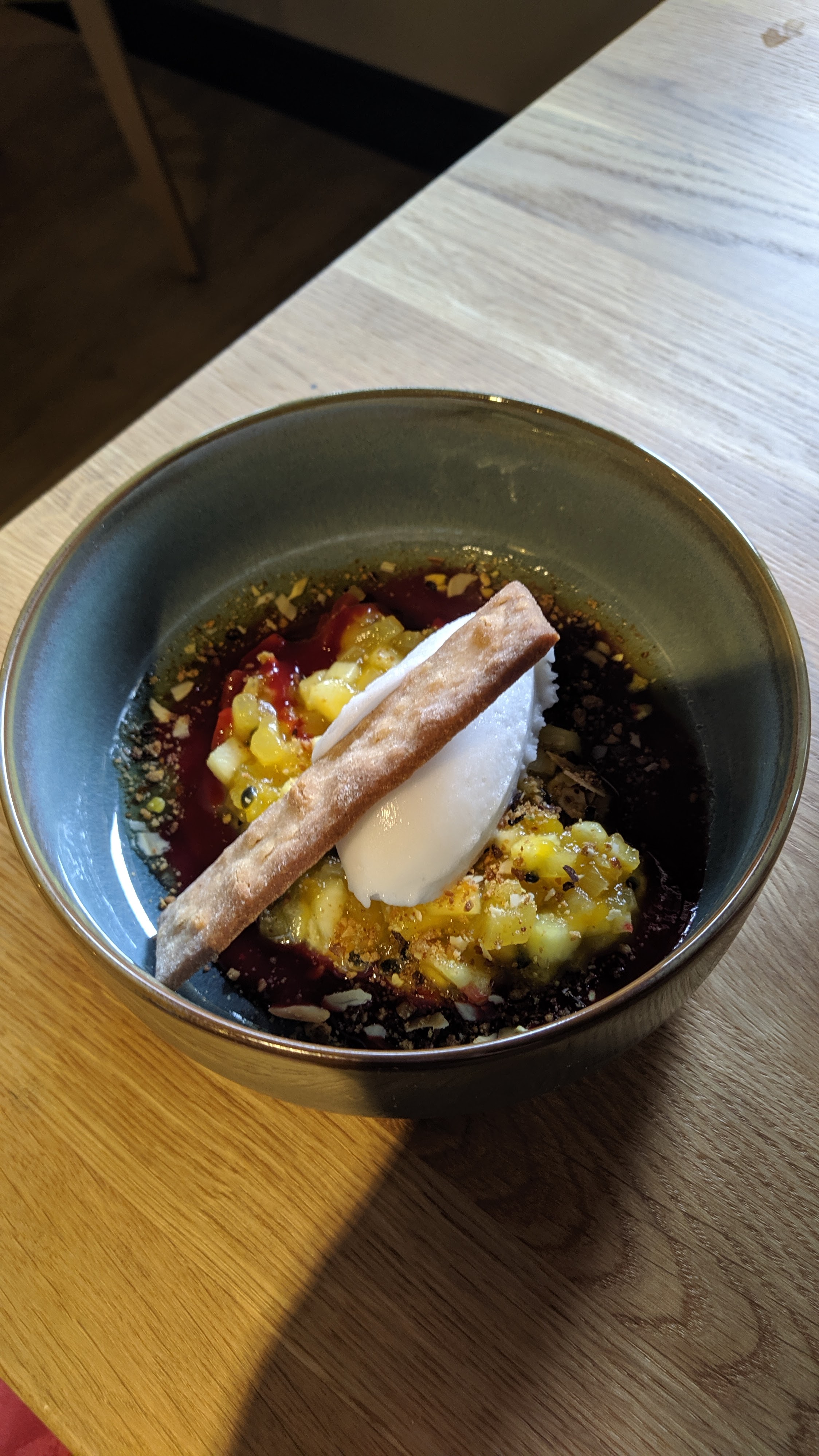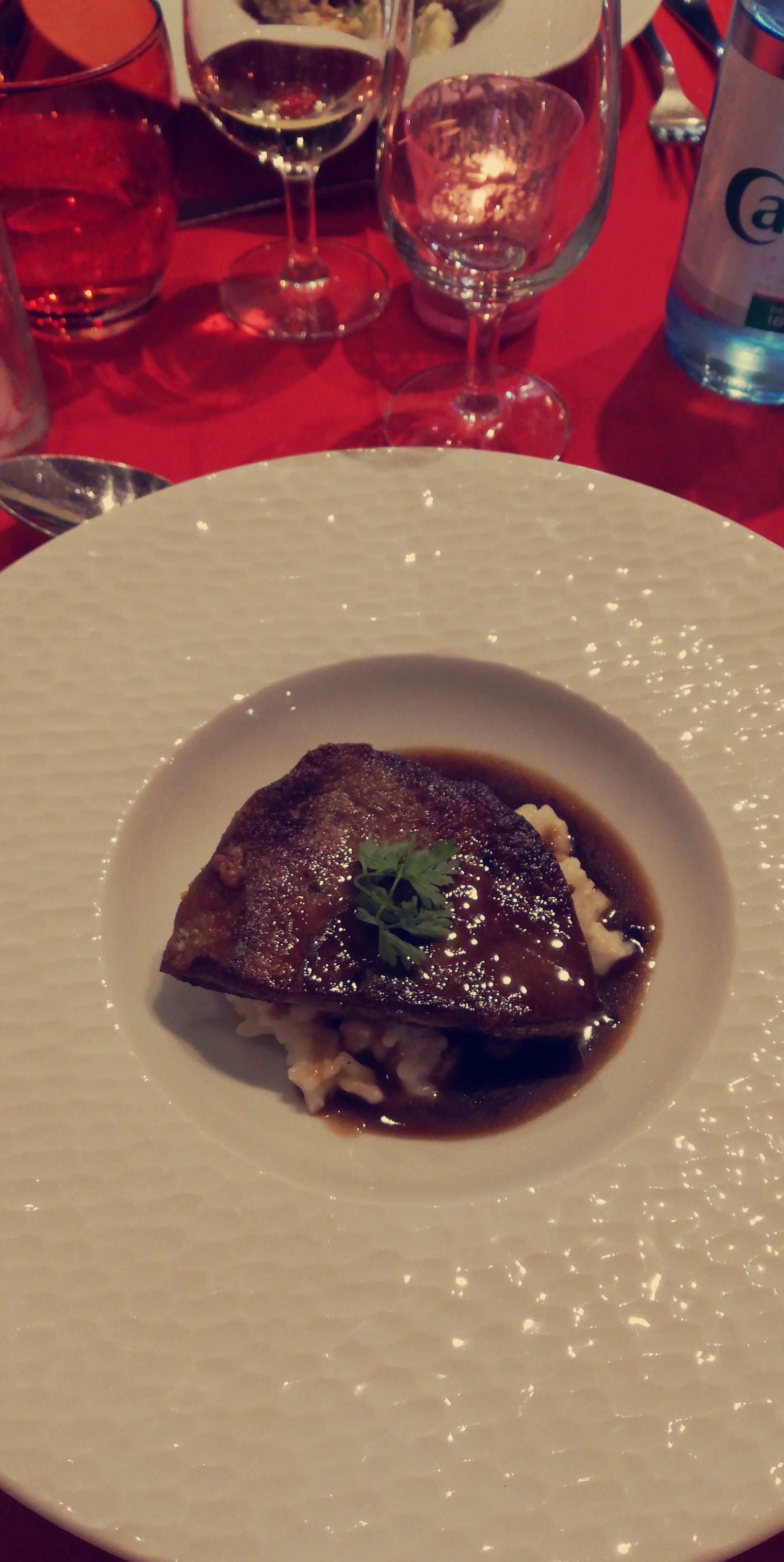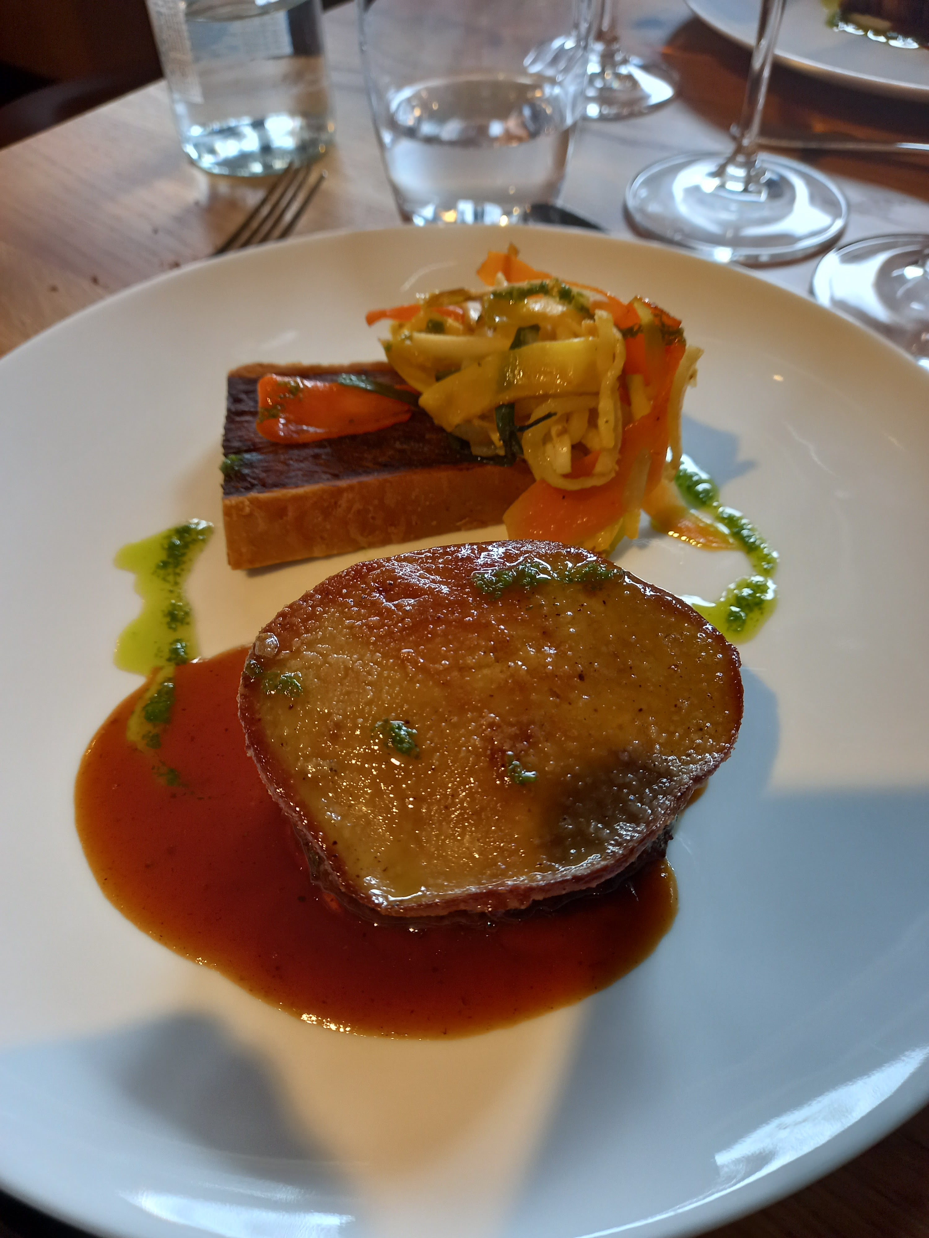 Comme d'habitude, toujours une très grande surprise de découvrir cette cuisine fine et recherchée. Et les figues au foie gras....un vrai délice. La formule avec verres de vins assortis au plat est un concept génial (vendredi soir uniquement). Il y avait très peu de monde à la terrasse ce soir là et nous avons été bichonnés par cette nouvelle serveuse qui est vraiment adorable. A consommer sans modération.