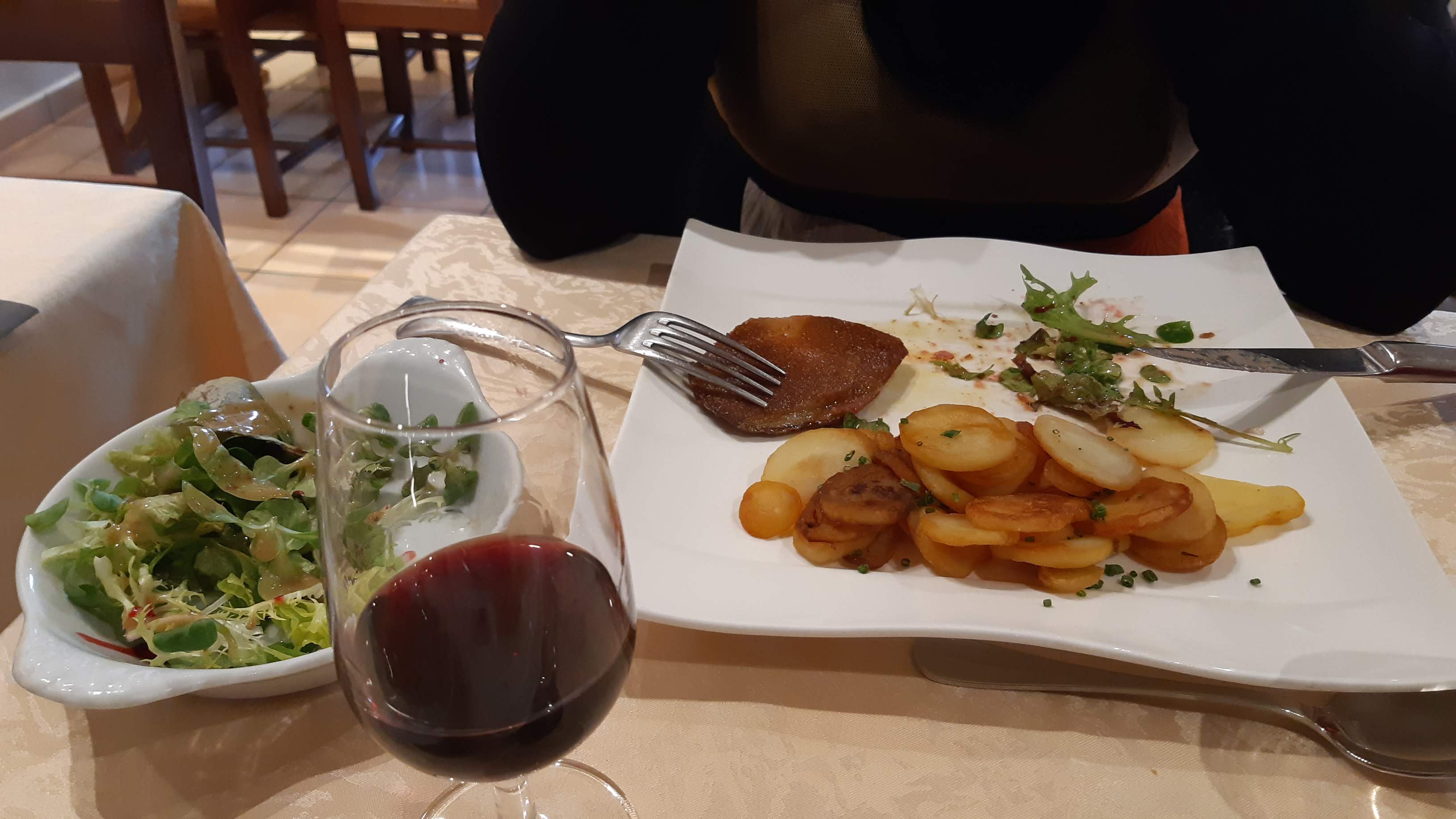 Déjeuner du dimanche : entrée, plat et dessert unique pour tous les convives du restaurant. Et sans surprise au menu : du foie gras et du canard (des plats en principe maîtrisés, et on y vient pour cela). Malgré cela, plus de 2h30 à table. Service moyen et lent (30min pour 4 expresso). Magret de canard trop cuit !!! Nous les avions demandé saignants, la serveuse nous répond que c’est une cuisson lente et qu ils sont rosés. OK. Pas de chance au final, ils n’étaient même pas rosés, mais vraiment trop cuits… C’est dommage et décevant. Foie gras en entrée délicieux et bon désert.