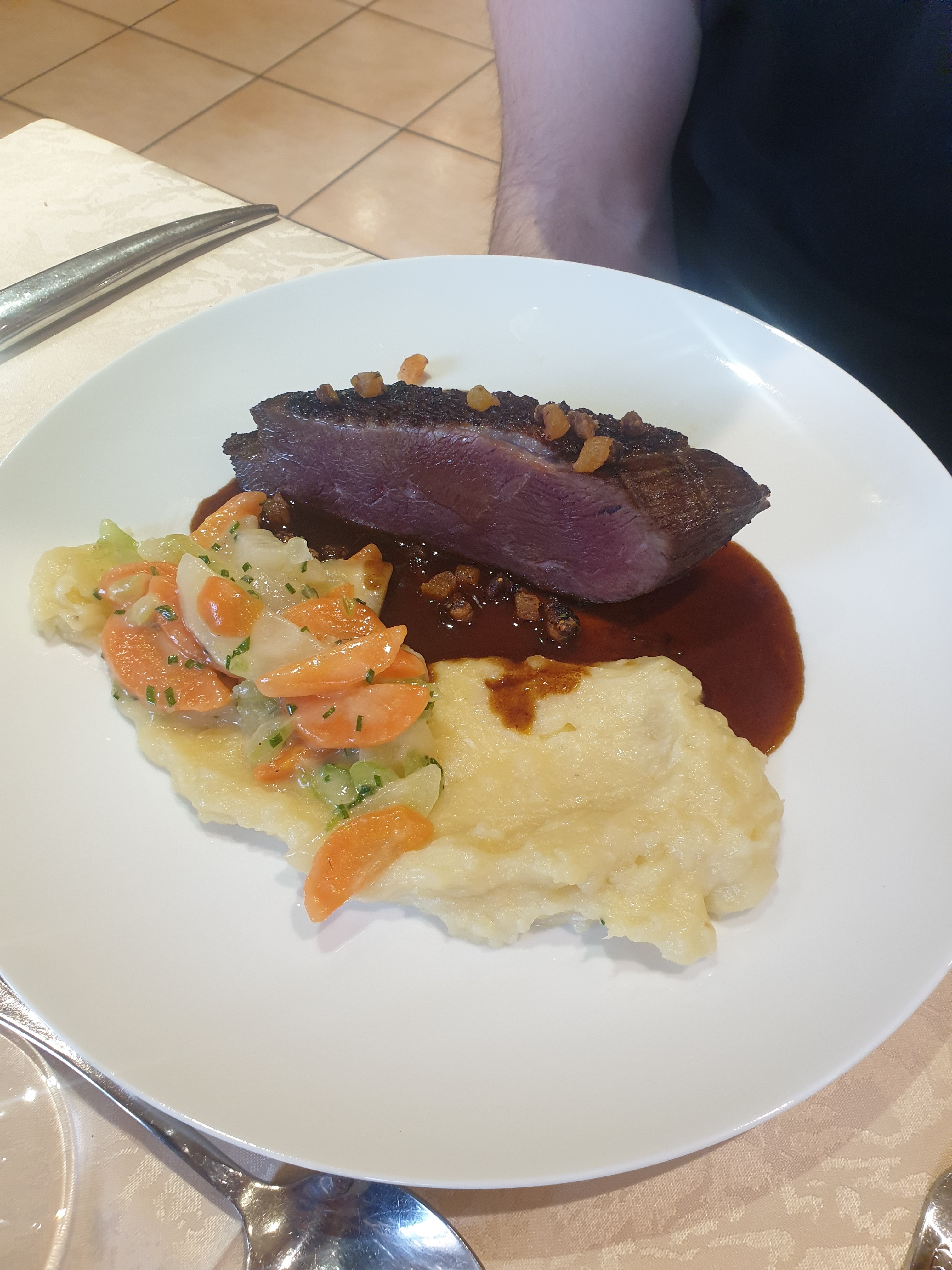 Très bonne table Assiettes gourmandes et très jolies Même le plat végétarien était excellent !