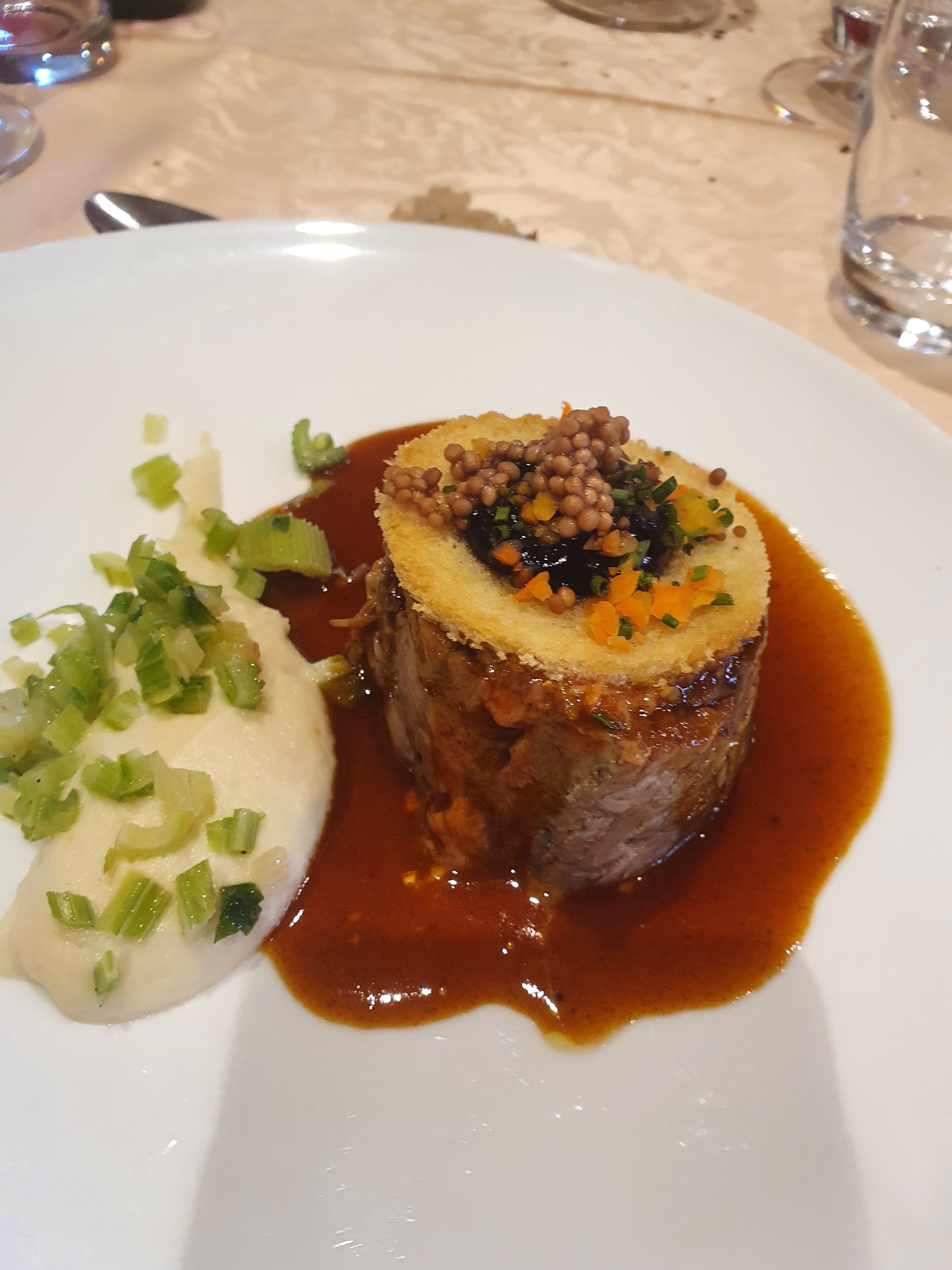Un repas d'une grande finesse, très agréable. Un gros regret en revanche que le restaurant ait accepté un gros chien encombrant à la table voisine de la nôtre.