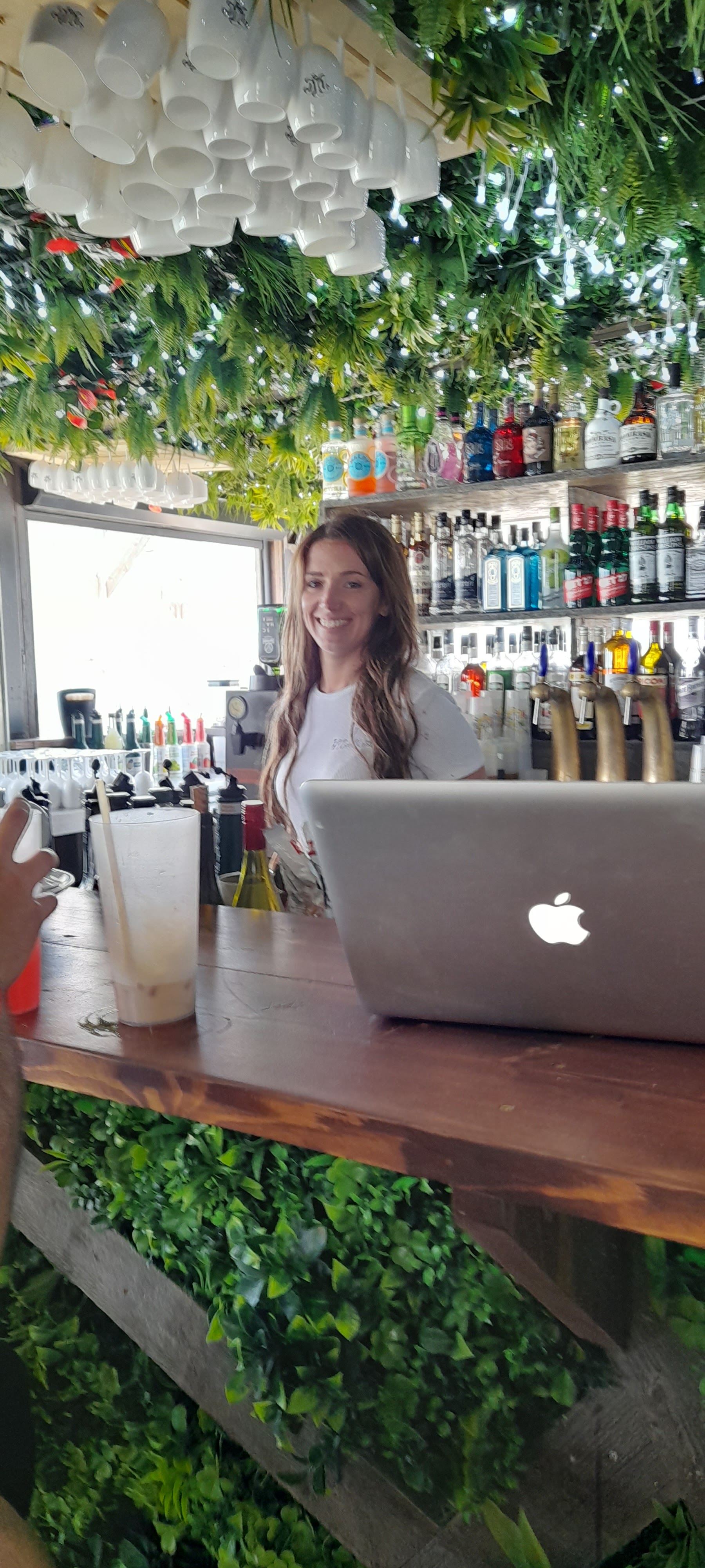 cadre sympa et bonne ambiance. terasse dans le sable les pieds dans l eau Le personnel est sympathique mais manque de professionnalisme La pina colada est bonne, le burger aussi dommage qu'on ne puisse pas choisir la cuisson de la viande