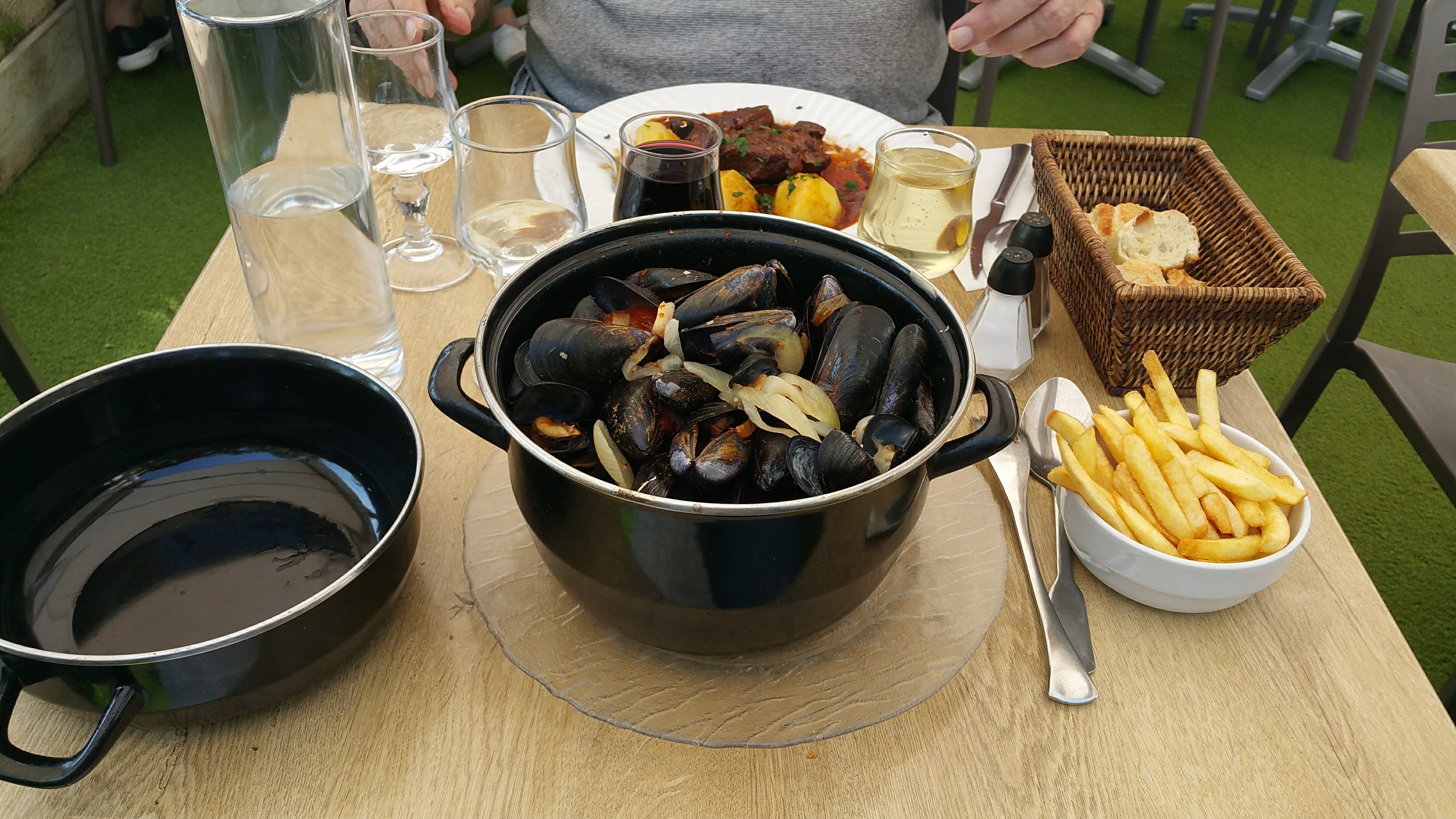 Posté le 25/08/2024 à 12:10"Bonnes moules mais vraiment trop de pas ouvertes, signalé au serveur. Sauces goutues. Serveur un peu perché."