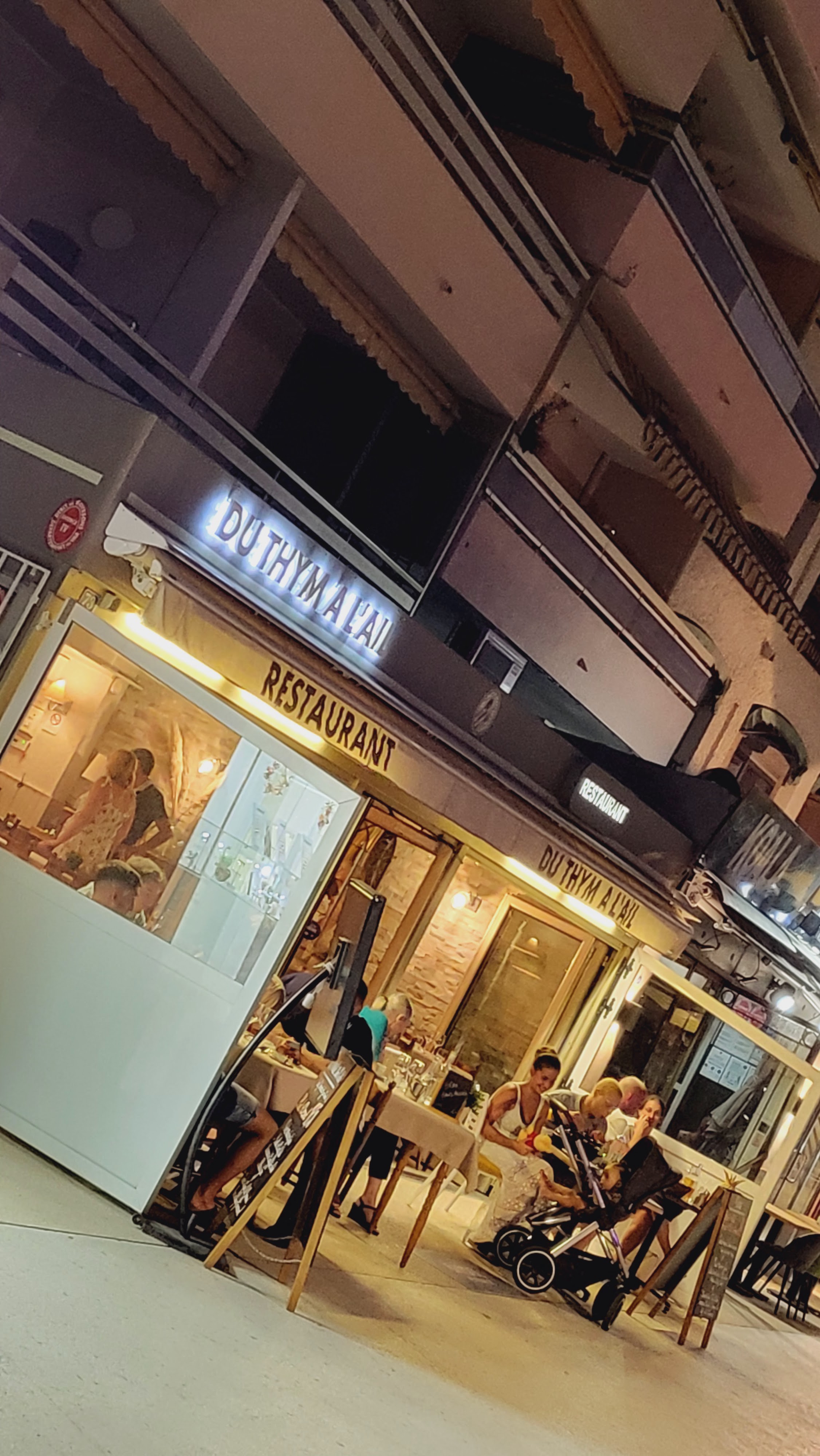 Posté le 22/08/2024 à 17:32"Très bof excepté la terrasse ombragée face à la mer et le nom du thym à l'ailqui peut faire penser à un restaurant gastronomique ou semi gastronomique 😂 que nenni, plutôt une banale brasserie😁. Plats à peu près bons sauf salade d'encornets spongieux(plein d'eau🤨)et persillade jetée dessus très aillée, service correct. Nous étions 6 dont une enfant de 7 ans, note de + 220 €(l'apéro coûte cher !) et n'attendez pas de digestif, (toujours offert ailleurs vu que nous sommes sympas🤪🤣) le patron limite désagréable par sa froideur, qui encaisse sans un sourire et fait mine de ne pas comprendre. À jamais monsieur !👎🏼"
