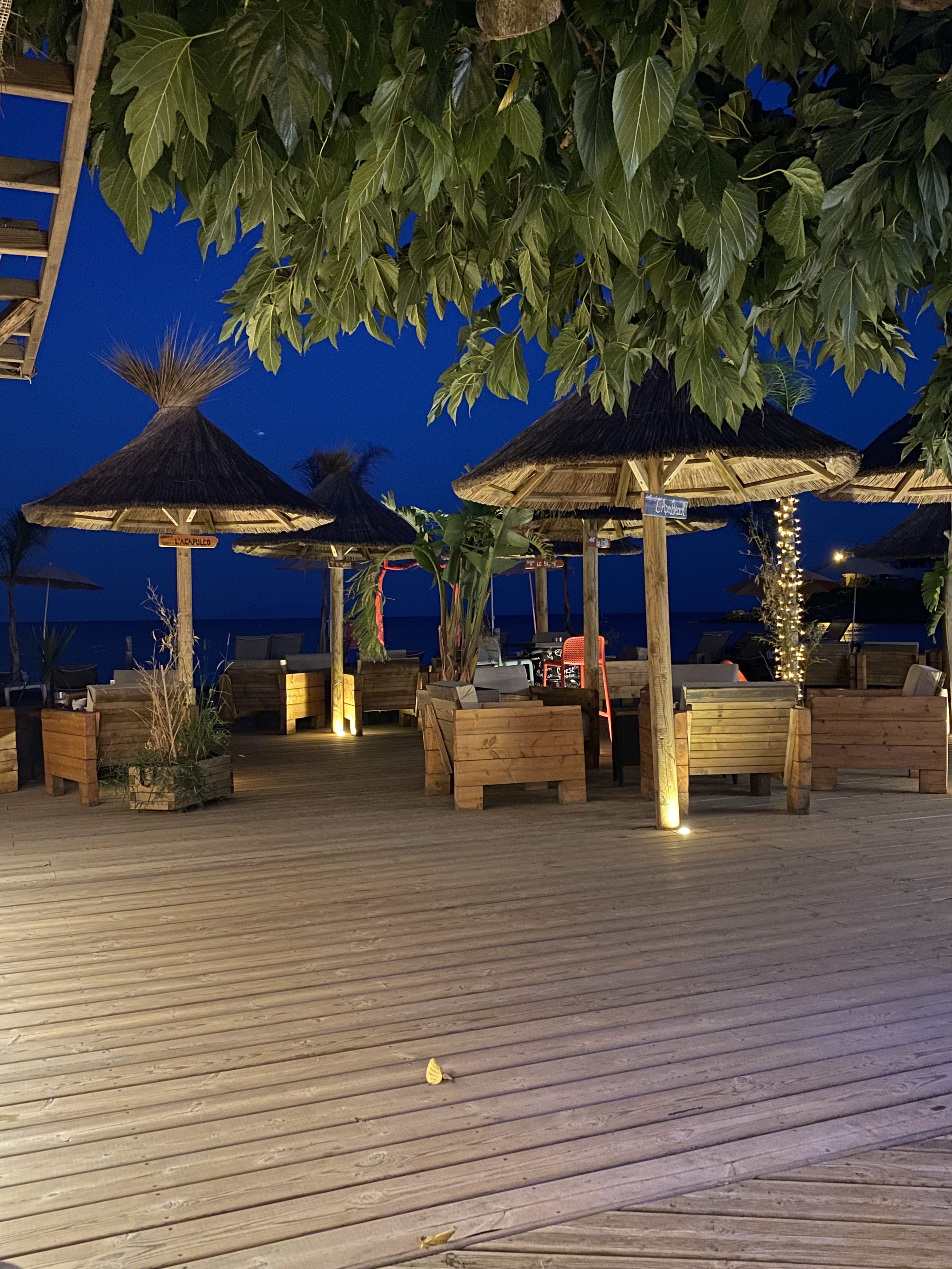 Posté le 02/08/2023 à 22:08" Nous avons dîné le soir. Le cadre est génial et très joliment décoré sur le thème de la plage. Le soir, le lieu s'anime et se transforme en un sympathique restaurant. La nourriture était vraiment bonne et meilleure que la nourriture habituelle sur la plage. "