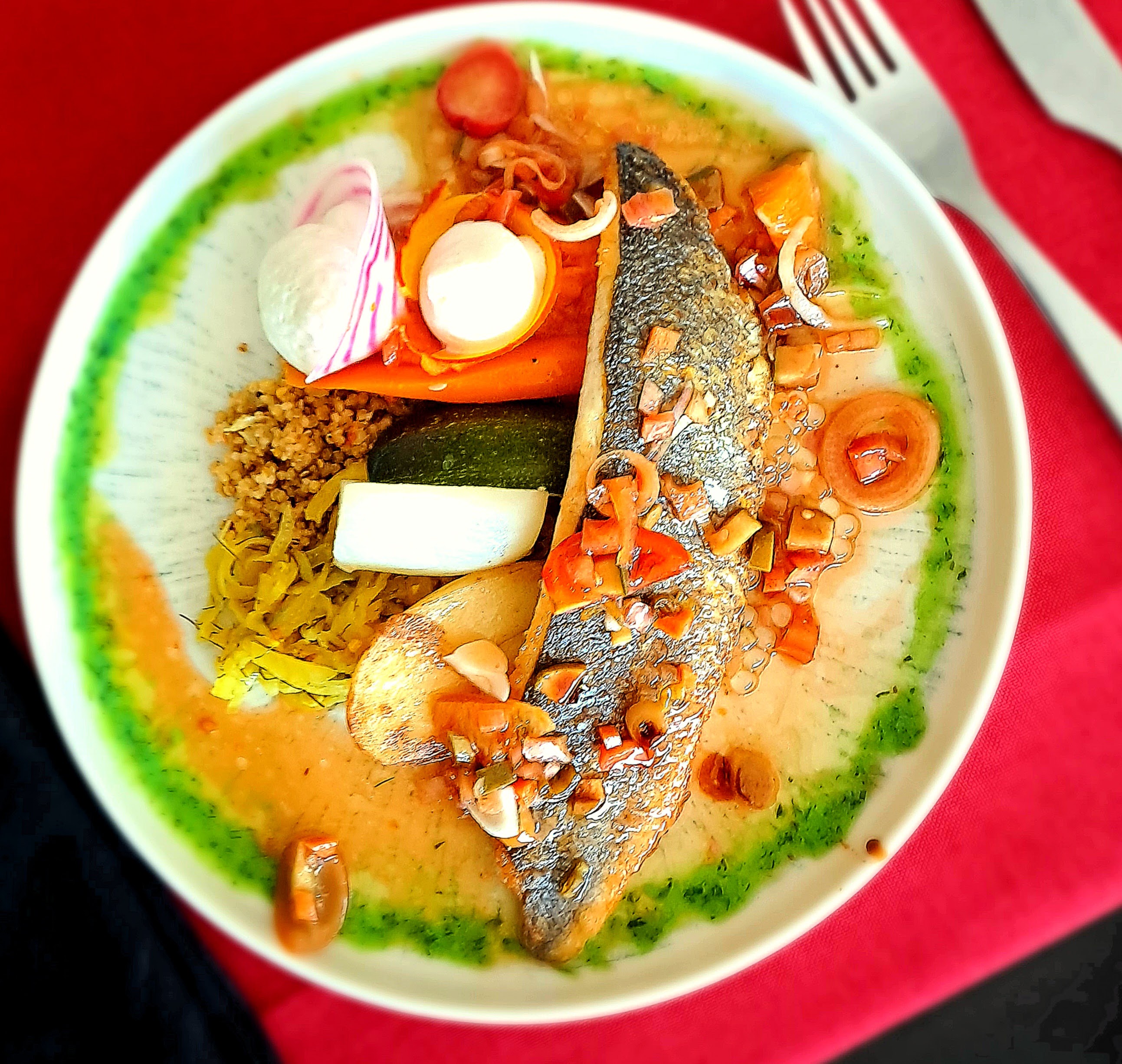 Un restaurant vraiment à conseiller, déjà le cadre, design, jolie terrasse… Puis l’accueil parfait, ensuite l’ambiance générale très agréable, pour finir, et c’est le point certainement le plus important, l’assiette ! Des plats jolis à l’œil et aux papilles, des produits locaux sublimés pas le chef… Bref, un excellent moment passé dans ce restaurant… pour en plus fêter mes 50 ans :)