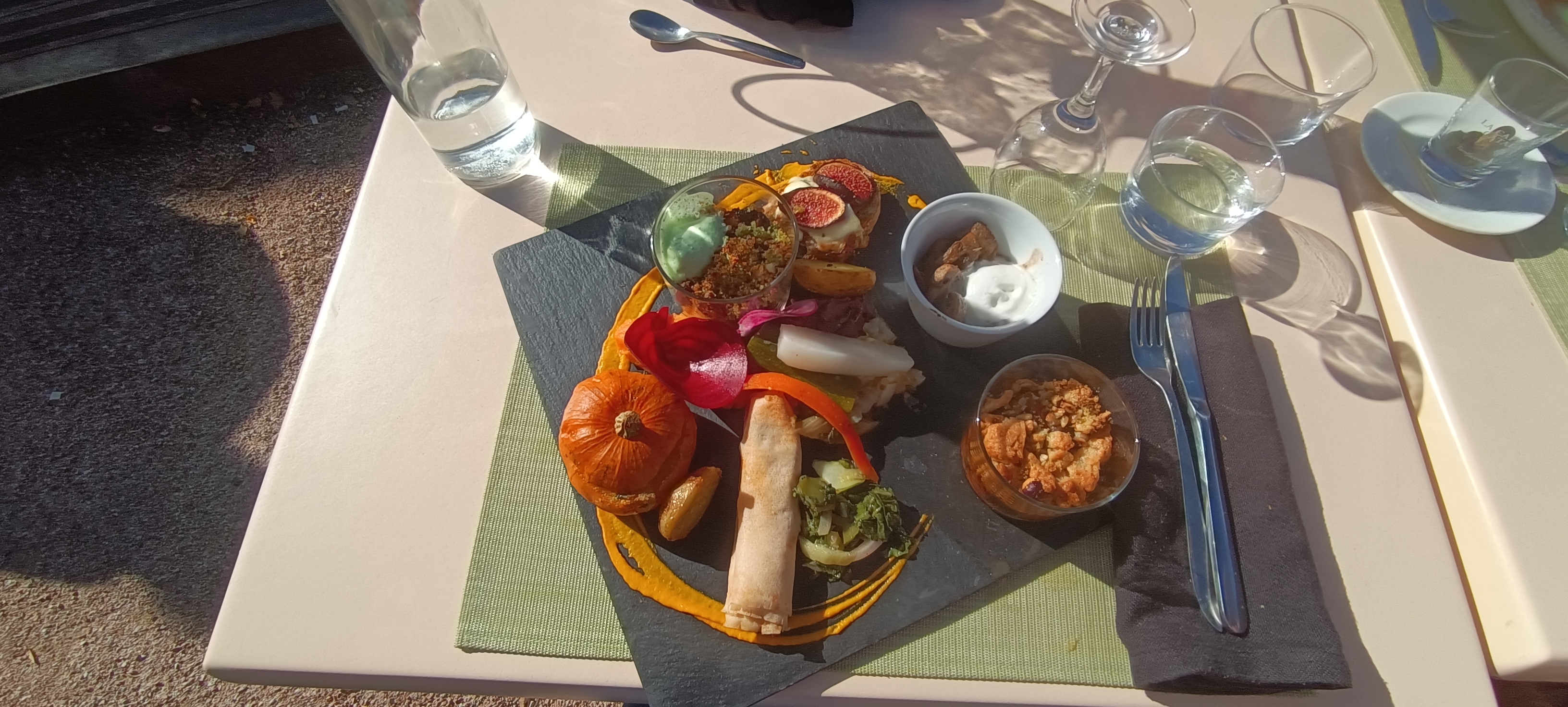 Posté le 05/11/2022 à 20:28"On y est allé aujourd'hui midi 13 Nov a 4 adultes, tous les produits sont d'une excellente qualité et produits localement avec des légumes de saison....un régal pour nos papilles de l'apéritif au dessert... Ils se sont aimablement adapté à un soucis alimentaire d'un convive en proposant une autres adaptation de son plat..... Mille merci a toutes l'équipe pour votre gentillesse"