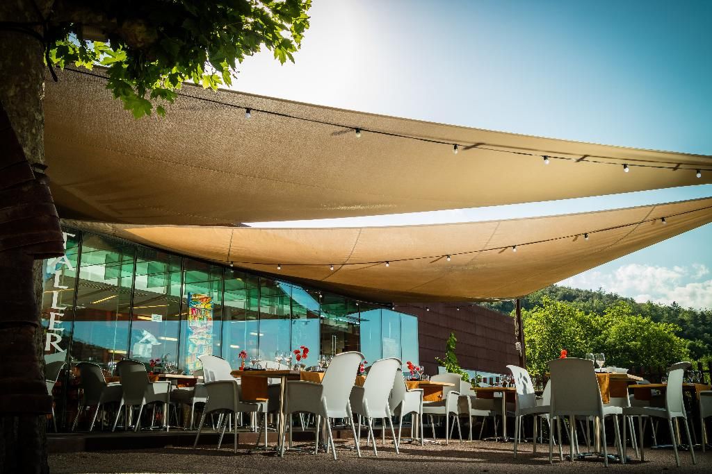 Style contemporain, cadre sympathique, proche de lieu historique. Extérieur ombragé par des toiles sous lesquelles souffle une petite brise très agréable. Cuisine de bonne qualité avec un véritable effort de présentation. Service bien orchestré. Nous recommandons
