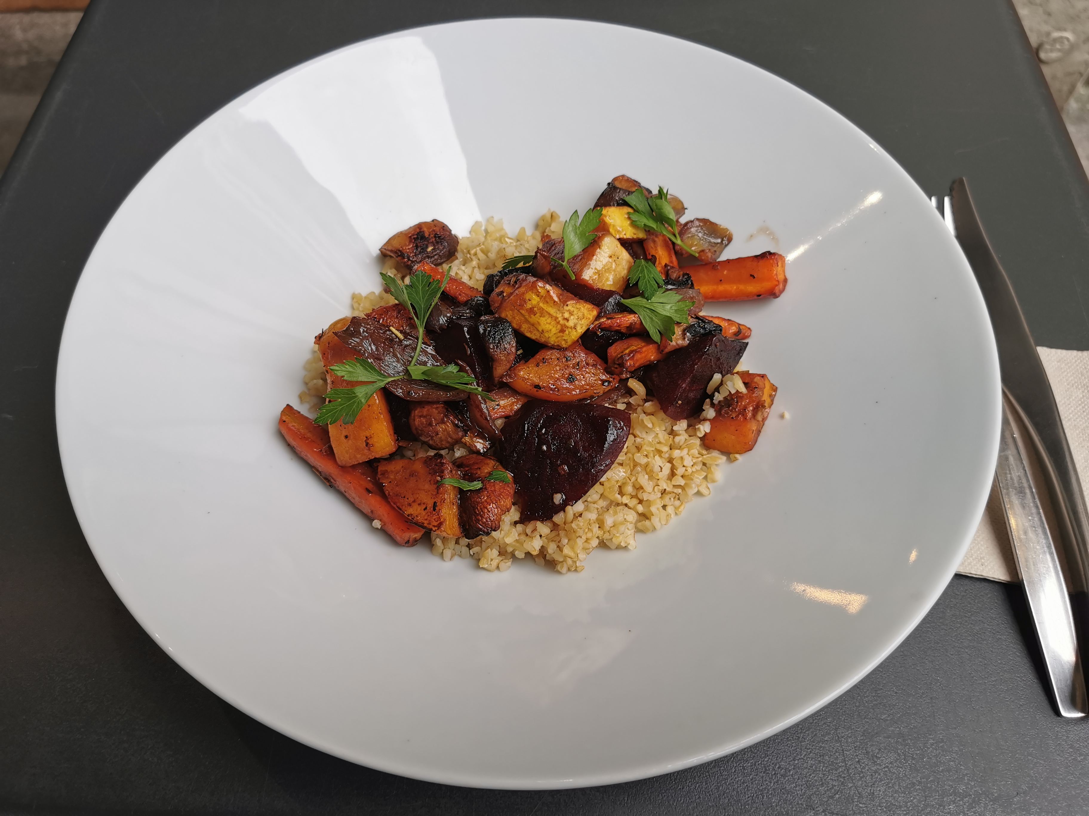 Excellent, le plat végétarien est pixel