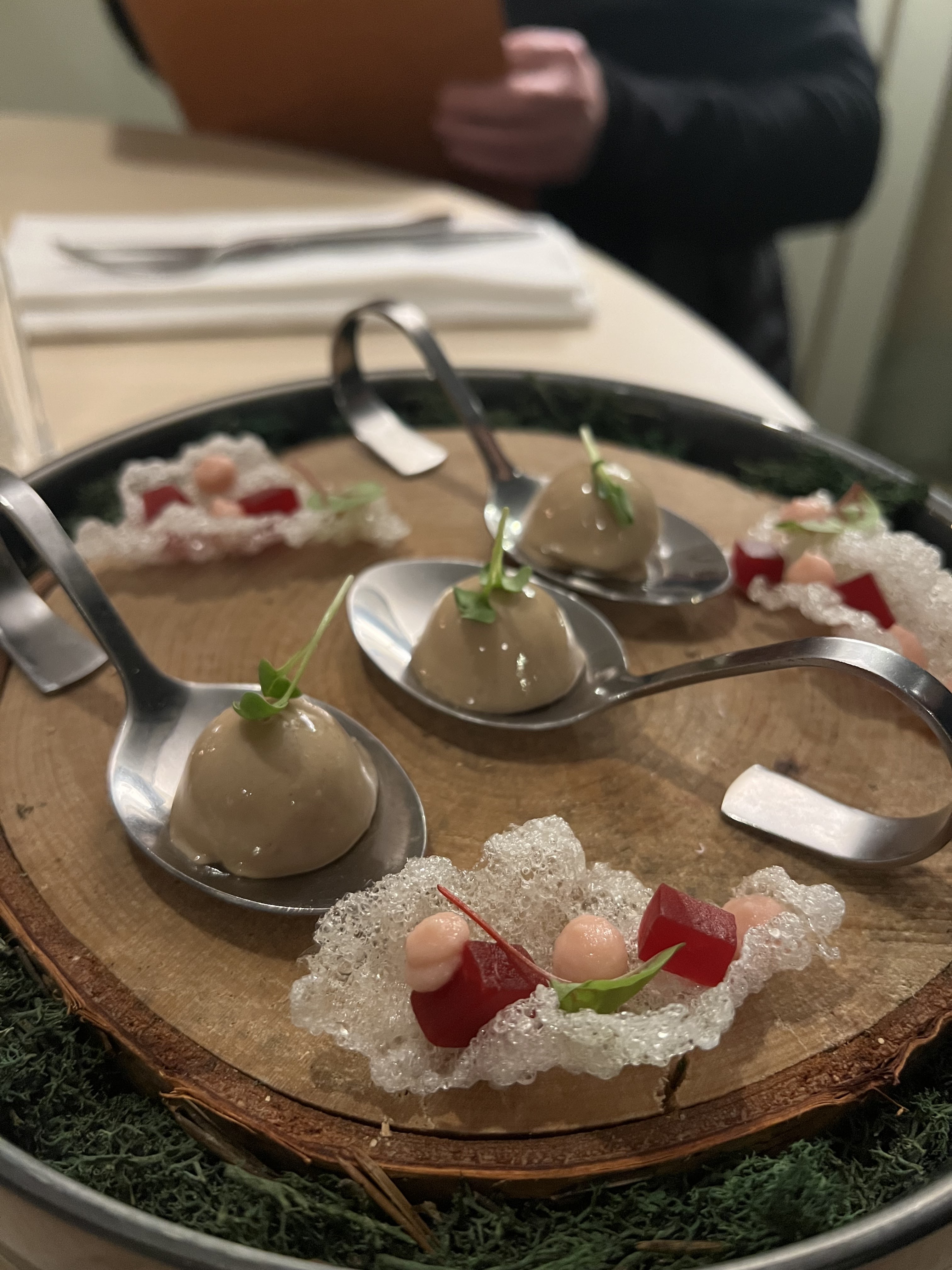 Belle surprise que ce restaurant de village, dans une deco scandinave épurée, avec trois menus. Expérience culinaire au top. Tout était délicieux et créatif, de l’entrée au dessert. Un moment d’exception.