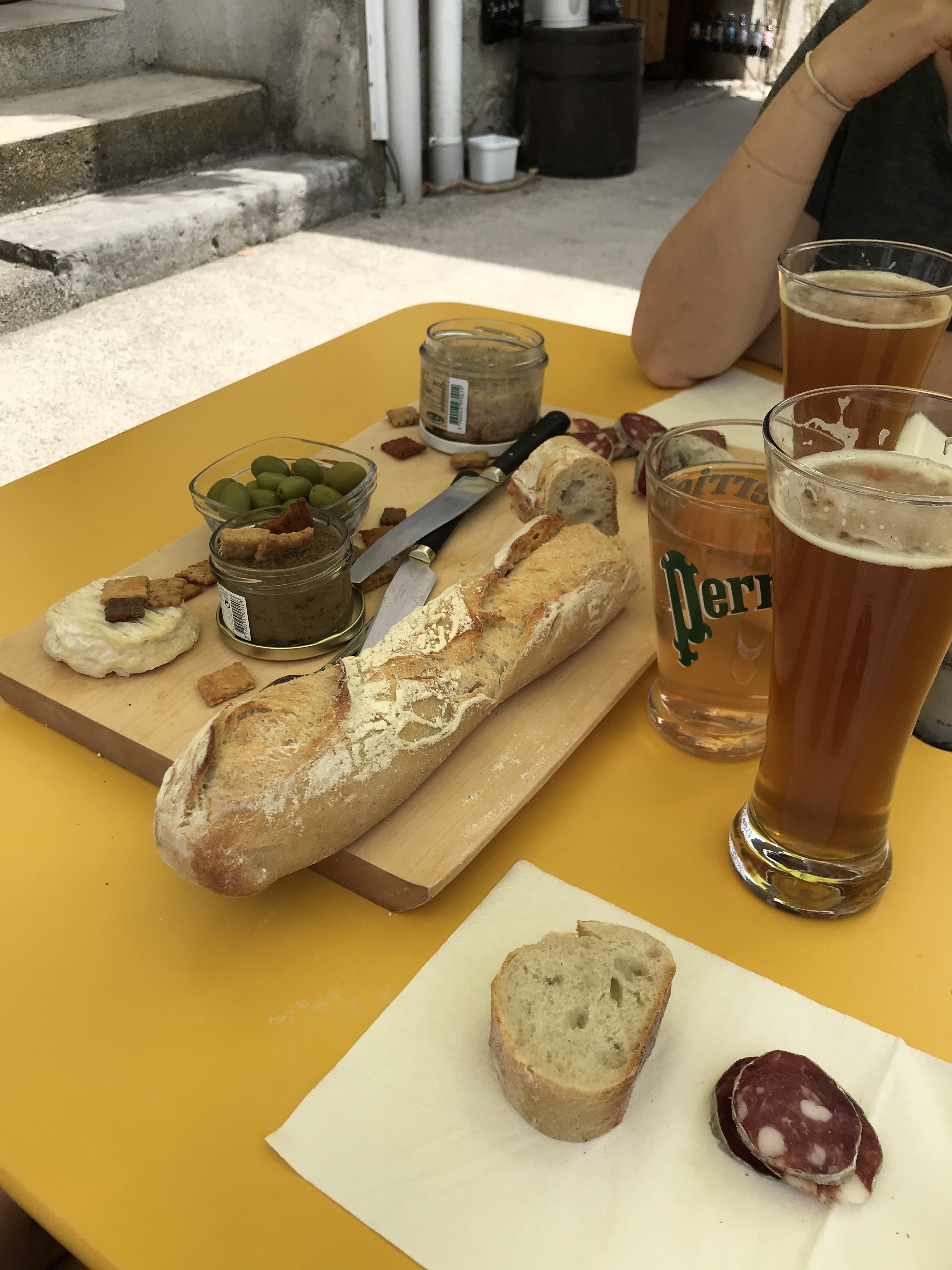Nous nous sommes arrêtés ce midi pour déjeuner. Salade de lentilles excellente et de bonnes bières locales. Super accueil et service parfait. Les planches proposées avaient l'air très appétissantes. Il faudra qu'on y revienne ! Bonne continuation à Robin et Maddy !