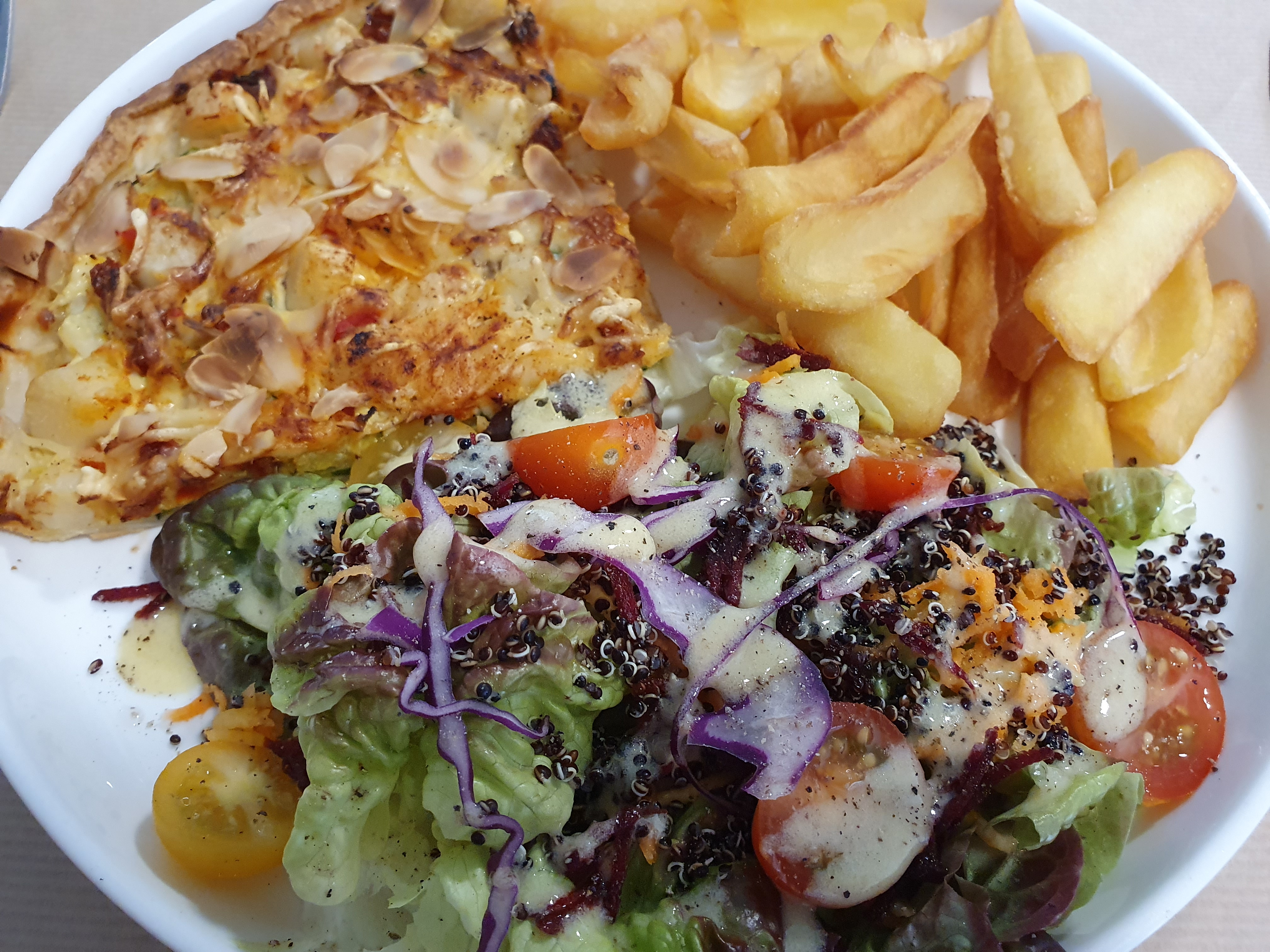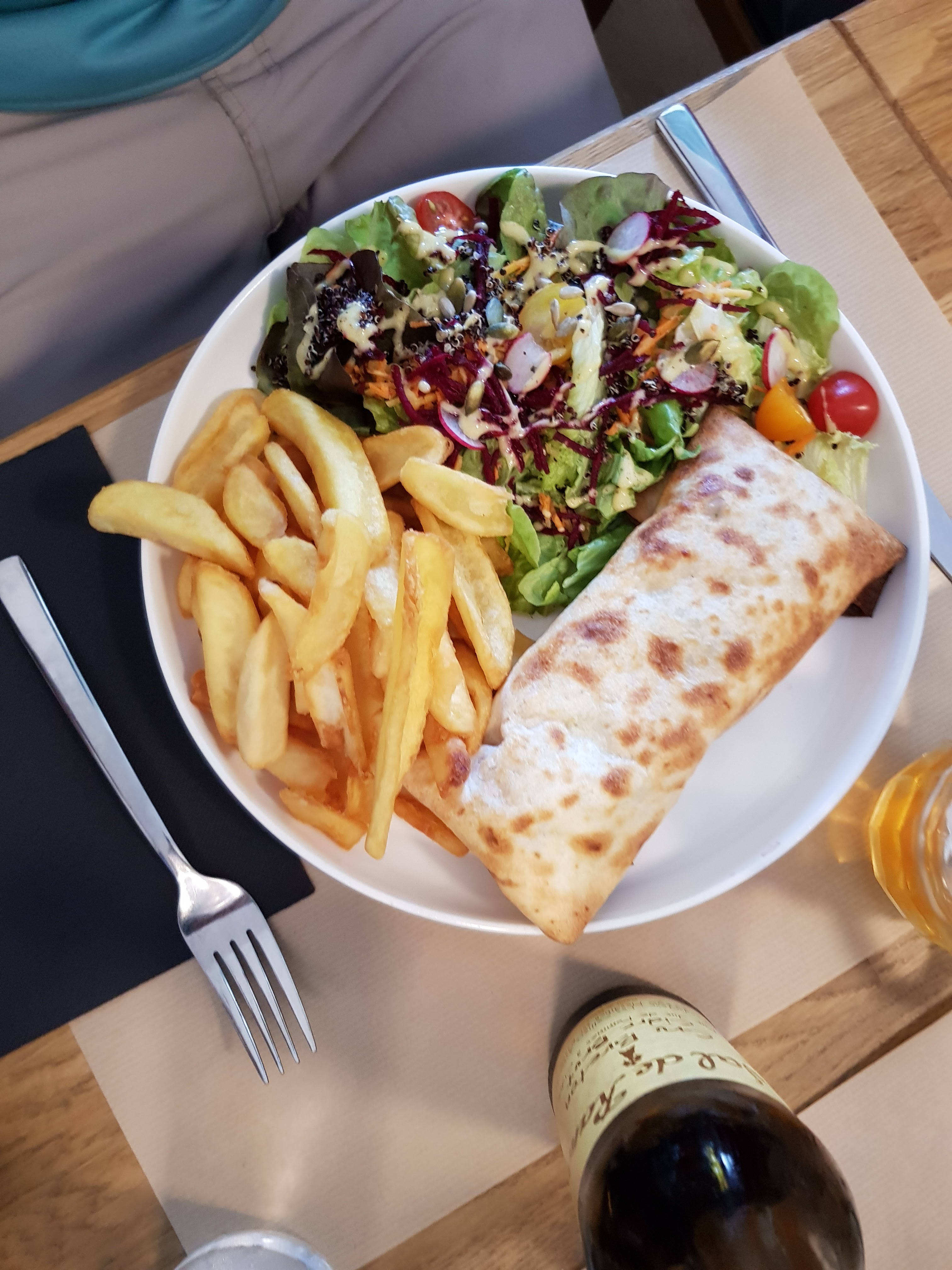 Très bien accueilli. Même si le cadre extérieur n'est pas le plus mignon du monde on y est bien installé. Pour la partie repas alors la... Top. Plats du jour excellents et carte alléchante. Pour un rapport qualité prix très raisonnable. Pour moi c'est un lieu où il me sera difficile de ne pas revenir pour goûter au reste de la carte. Je valide 👍