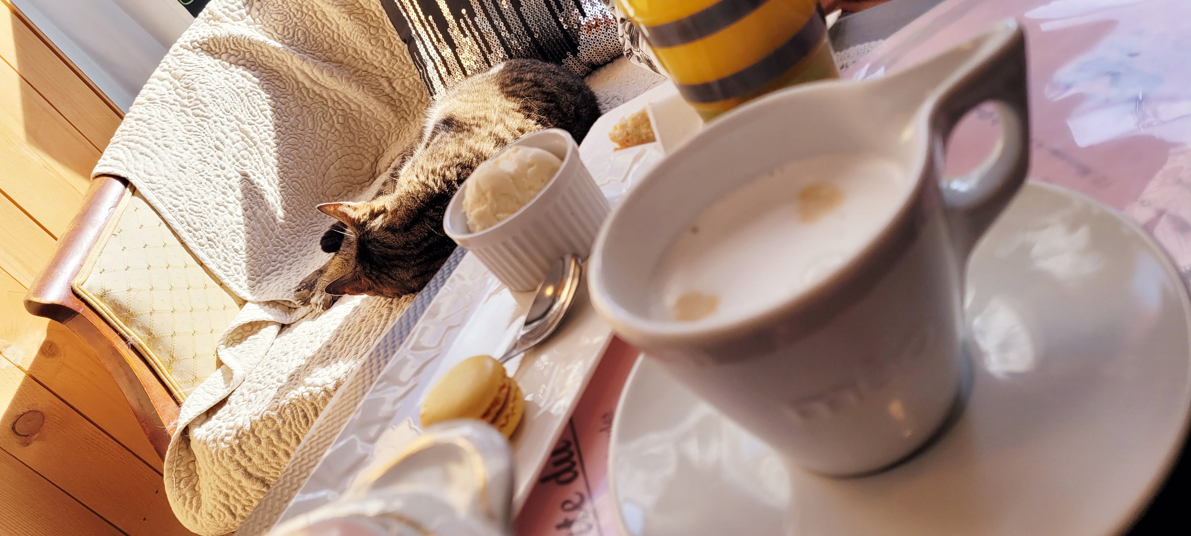 Nous y avons été avant tout pour voir les chats puisque la mienne est décédée fin avril et c'est un gros manque. Et c'était juste super, c'est cosy les desserts sont très bons je pense que nous allons y retourner souvent