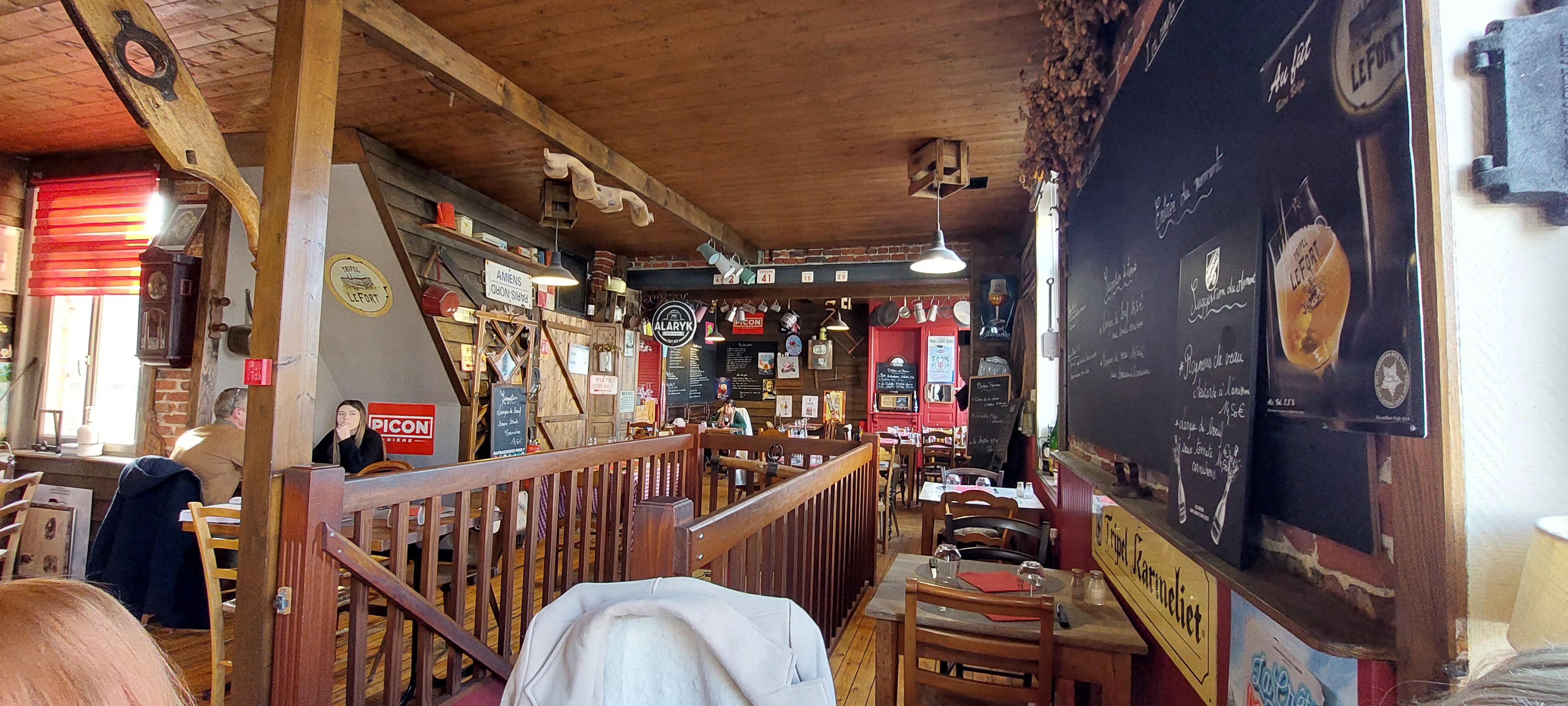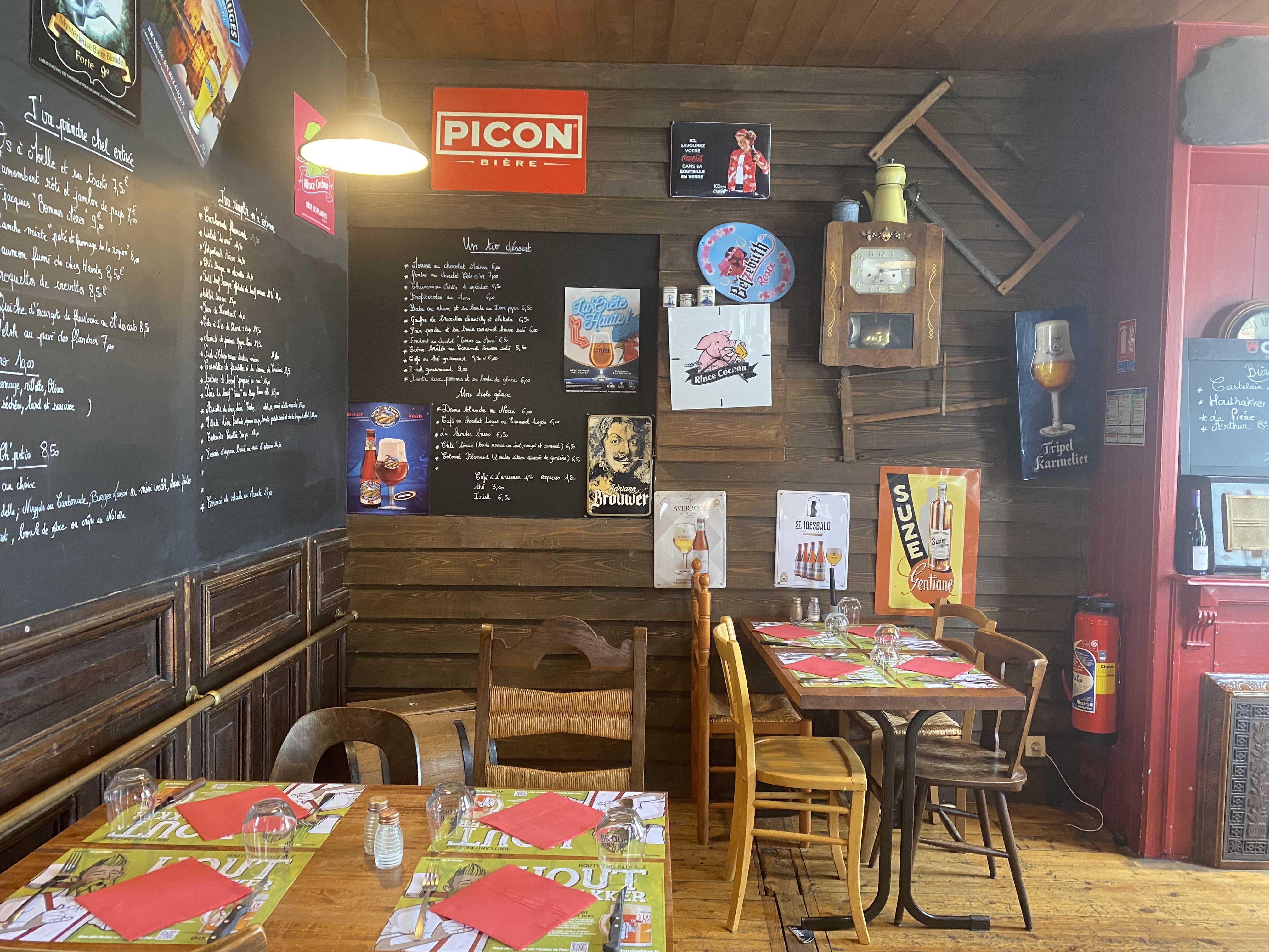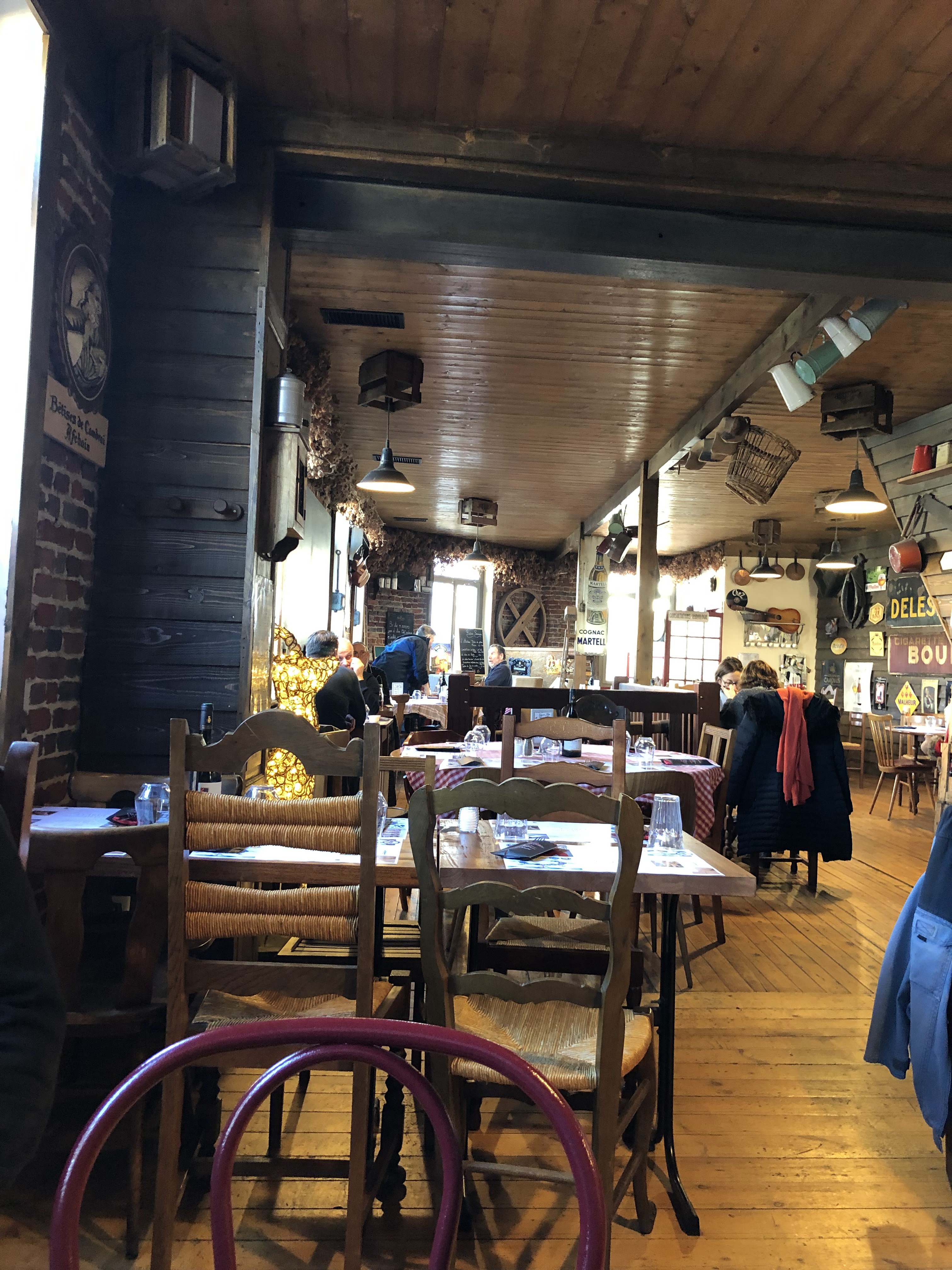 incontournable de passer par là, cuisine revigorante et copieuse, plats du Nord et bières ch'ti, difficile de faire son choix, tant c'est appétissant. Décor nordiste quasi musée arts et traditions populaires.. J'y passe quand je monte faire mes appros pour mon café et je fais le détour exprès.. Parfois c'est pas évident sans réserver...
