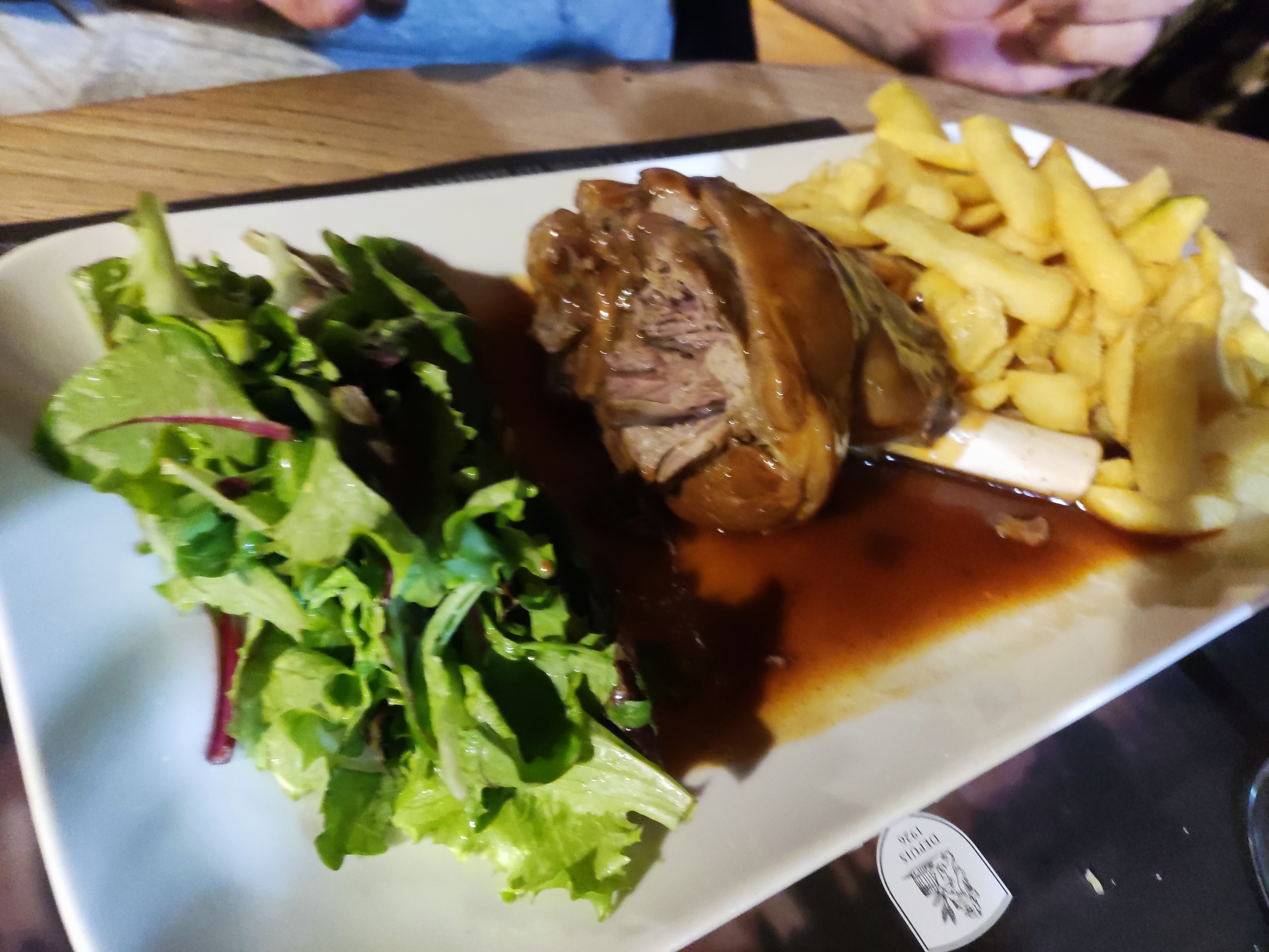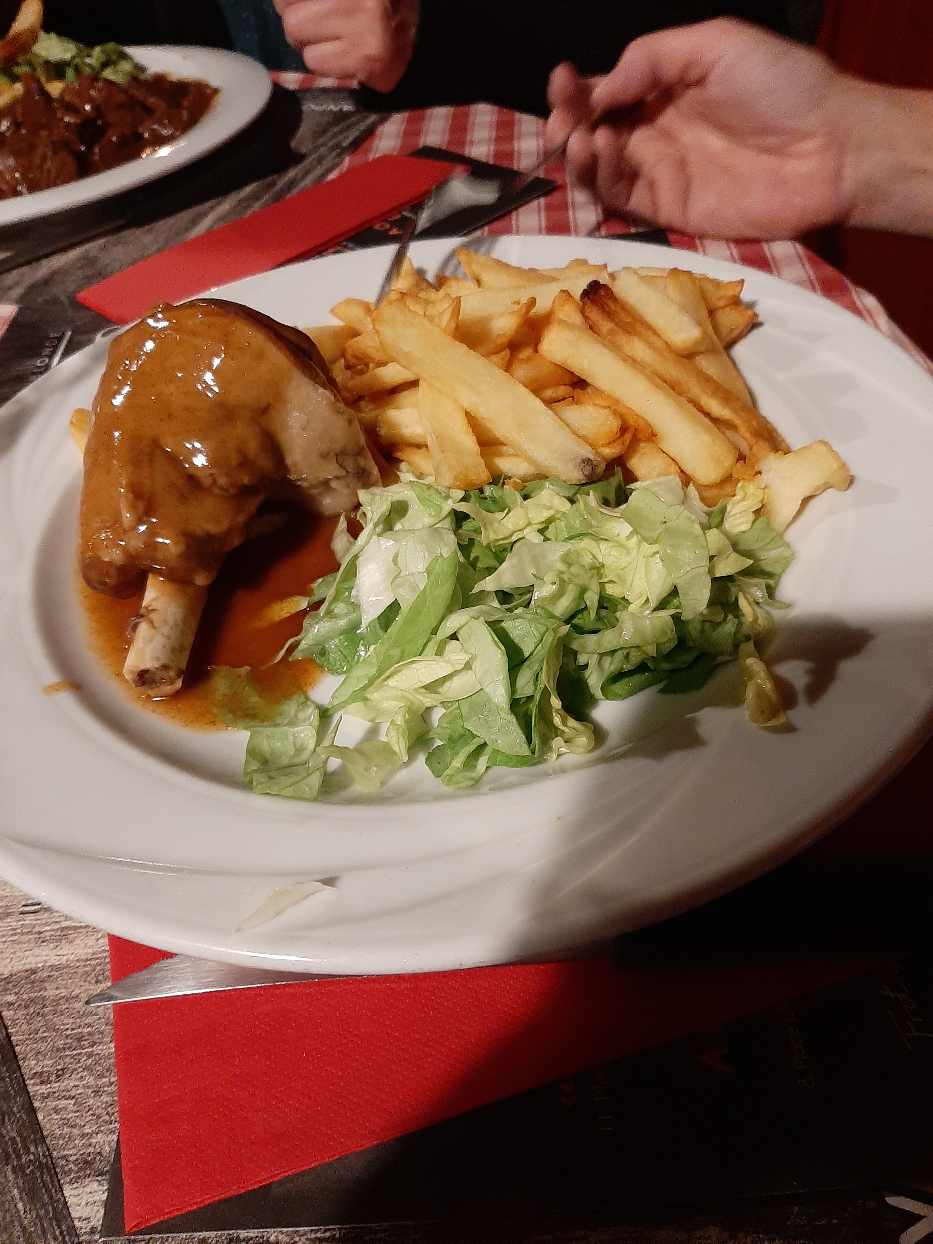 Cette fois je suis déçu.😔 Je devais essayer depuis pas mal de temps le jambonneau à 19 euros. Le visuel très beau , le goût très bon mais malheureusement il était froid. On aurait dit qu'il sortait du frigo. Dommage car le goût était bon. Rien ne sert de courir il faut servir à point. Loupé du réchauffage. Un faux pas que je pardonne largement car on y mange très bien.