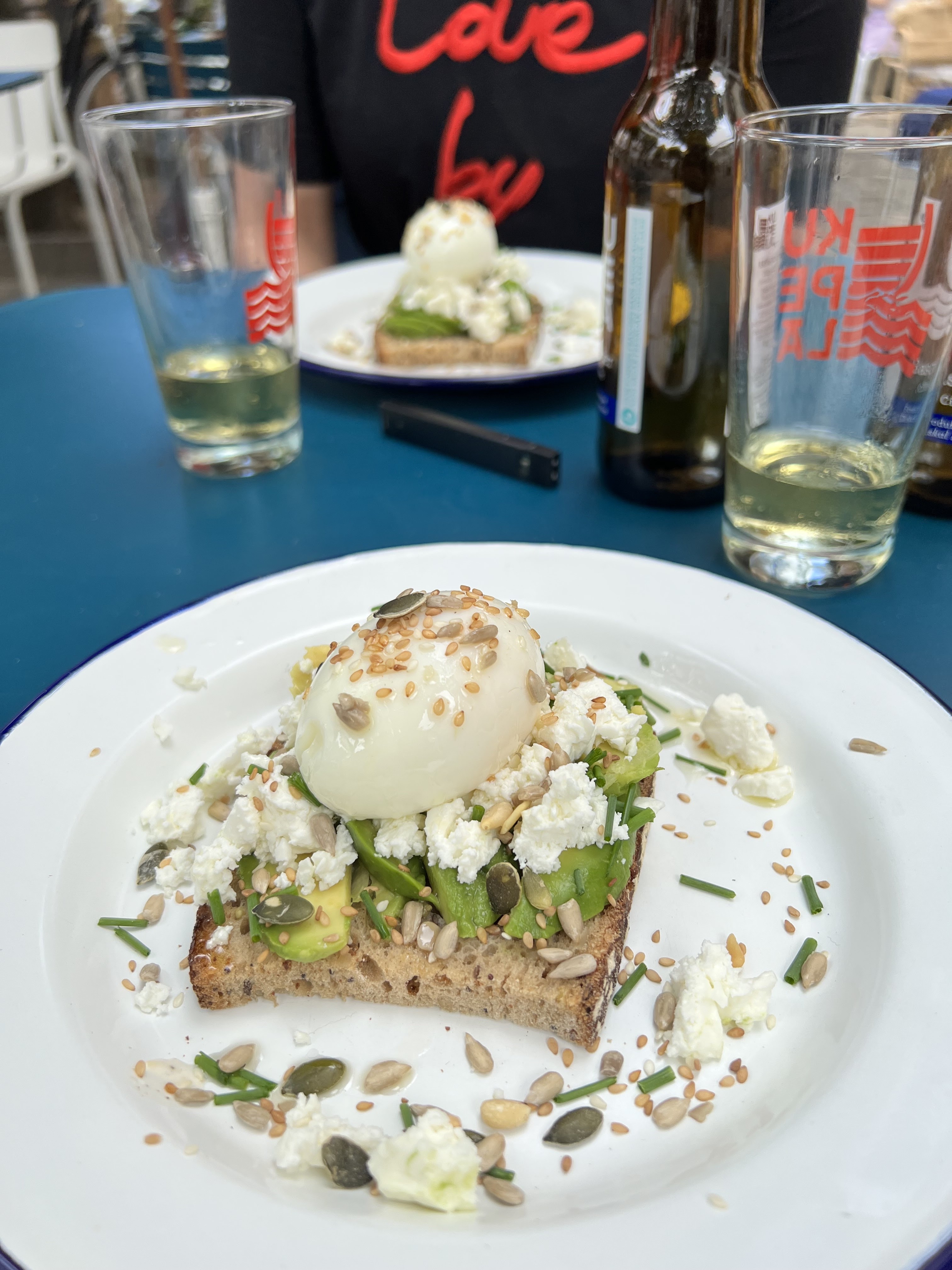 J’ai pris un entrée + plat à 20 euros. L’avocado feta toast était simple mais tres efficace. La salade de jambon de parme était bonne 👍🏼. Le serveur très sympa.