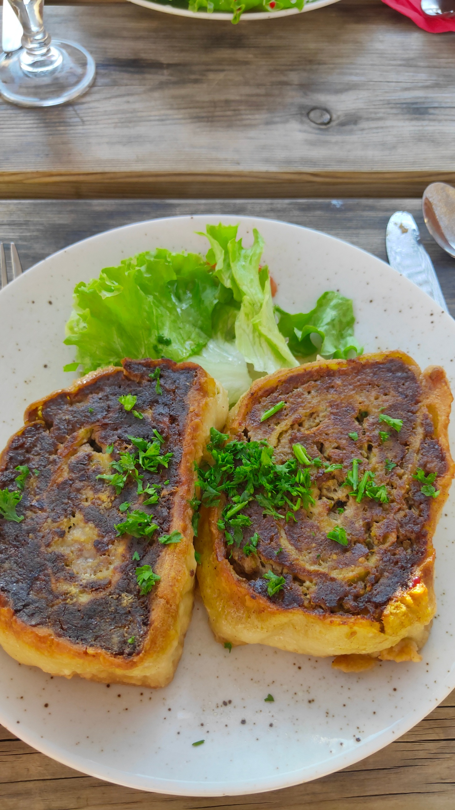 Cadre idyllique avec vue magnifique ! Accueil au top, petite serveuse juste trop gentille, à l'écoute, bienveillante, souriante, très bon repas, les fleischnakas sont excellents, je recommande 🍀