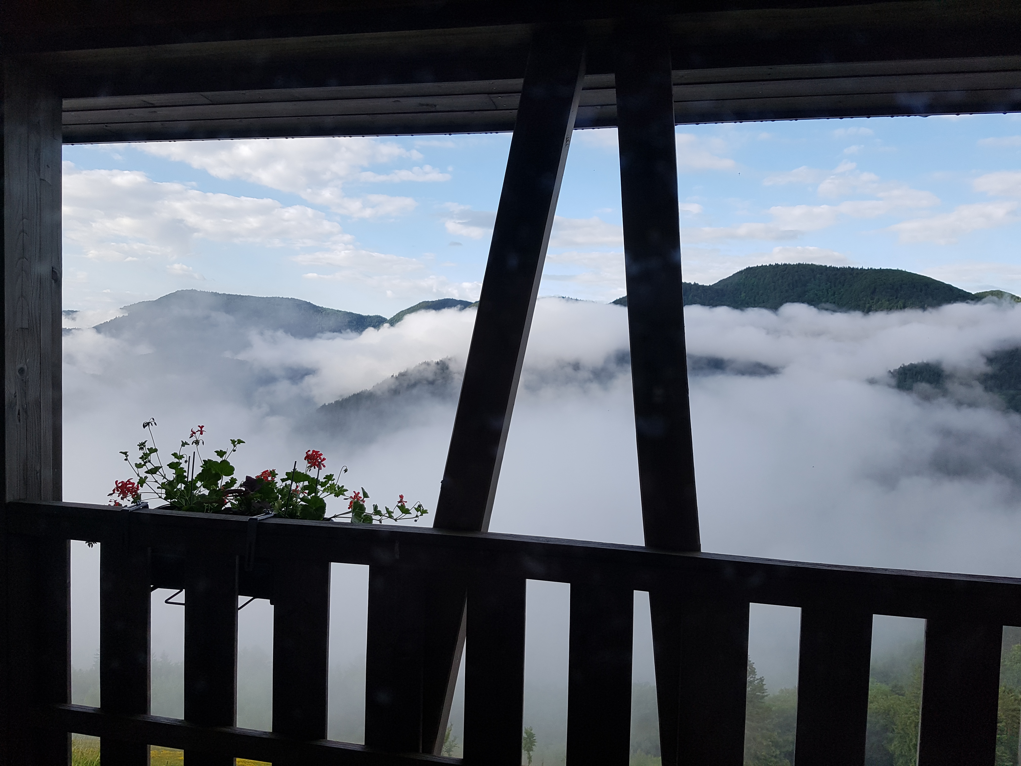 2eme nuit sur un circuit de quelques jours dans les Vosges, avec une formule demi pension. Le gîte auberge du Gustiberg est un endroit très chouette : une belle vue, un accueil sympa et des chambres agréables. Repas du soir, petit déjeuner et panier repas du midi nickels et des portions généreuses 😊
