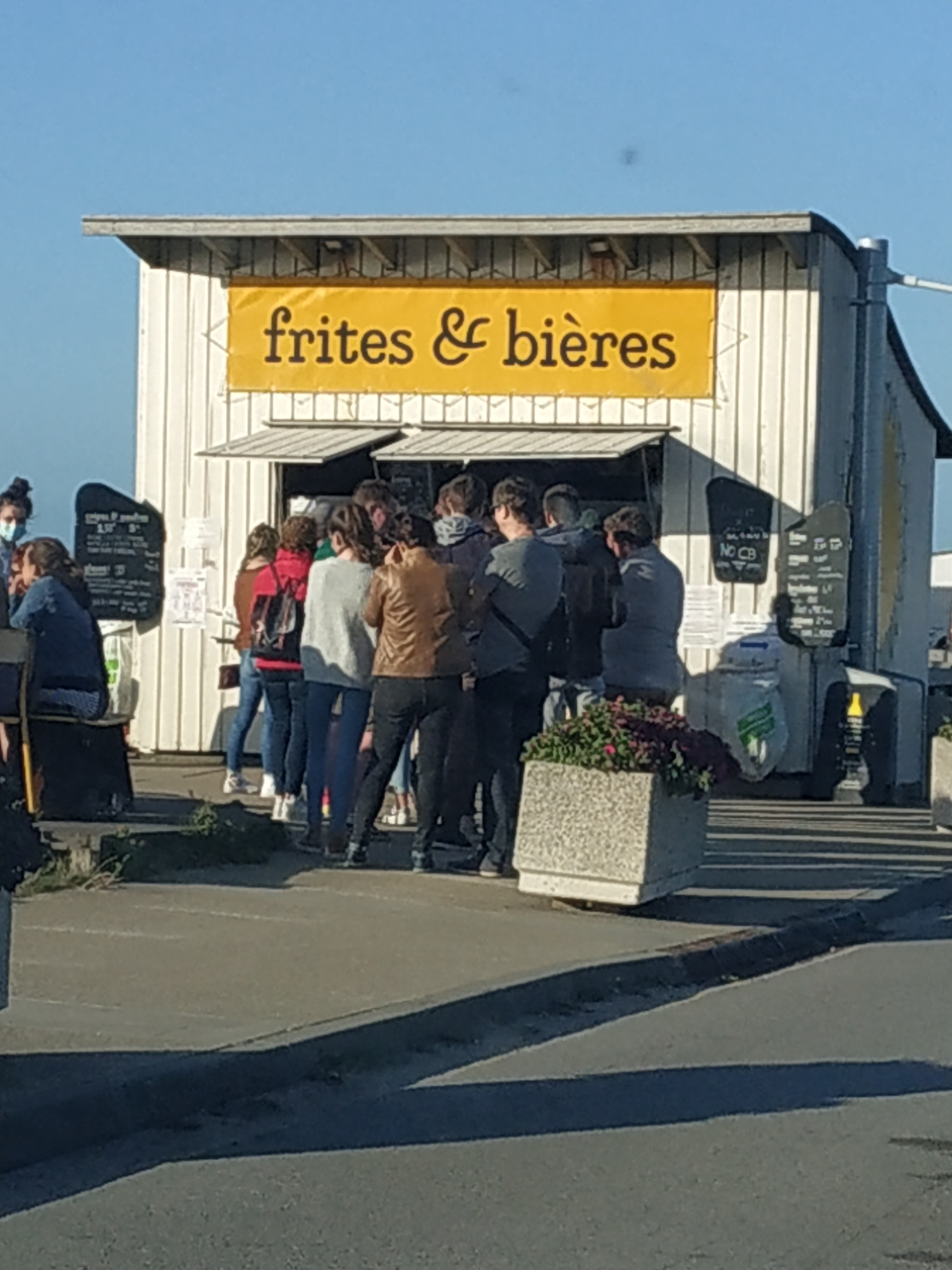 Une honte. Les frites sont bonnes, le personnel est sympathique. Cependant : COVID ! Non respect des règles, les gens sont agglutinés, en famille, avec les enfants.... on n’y retournera plus