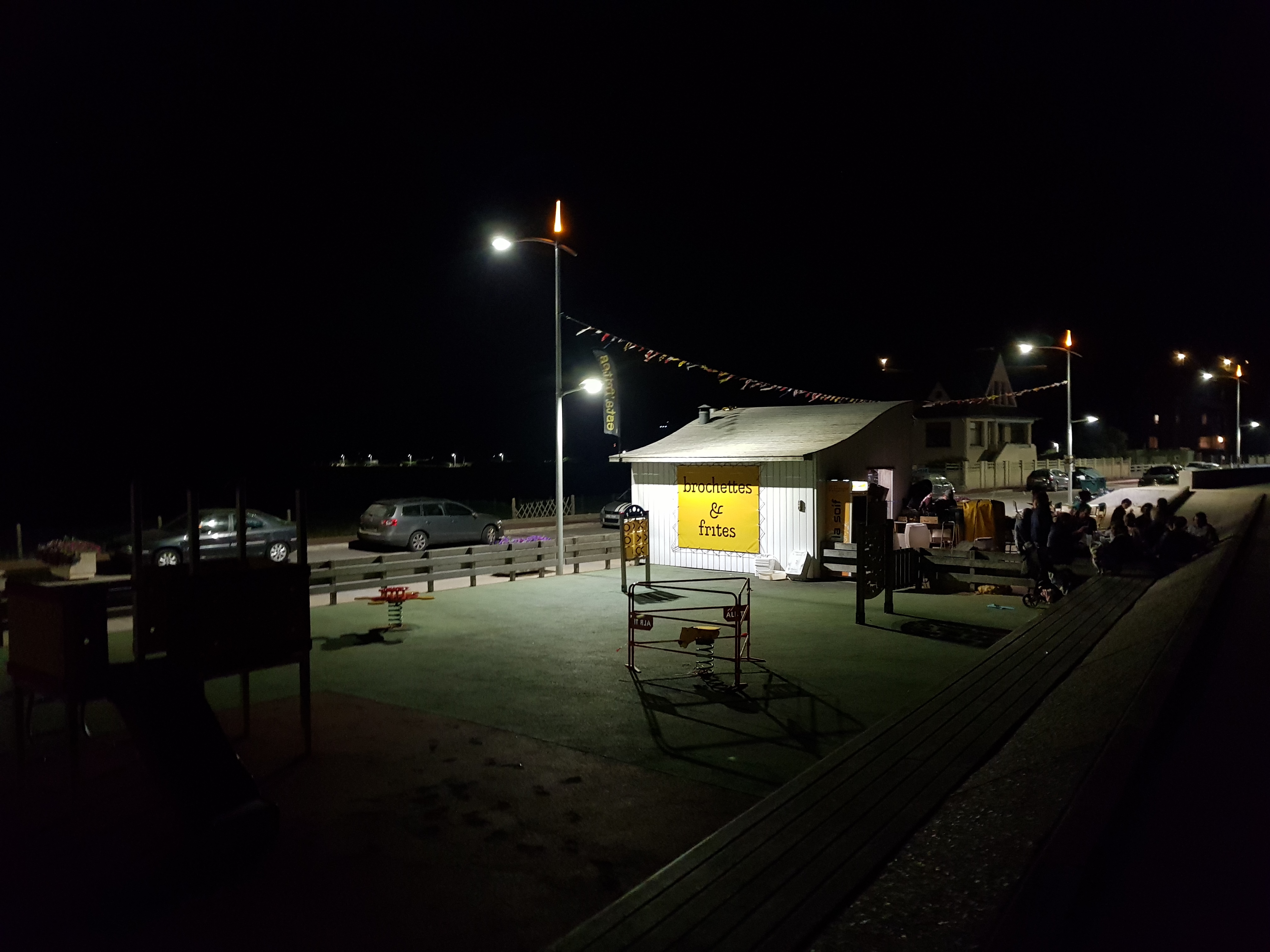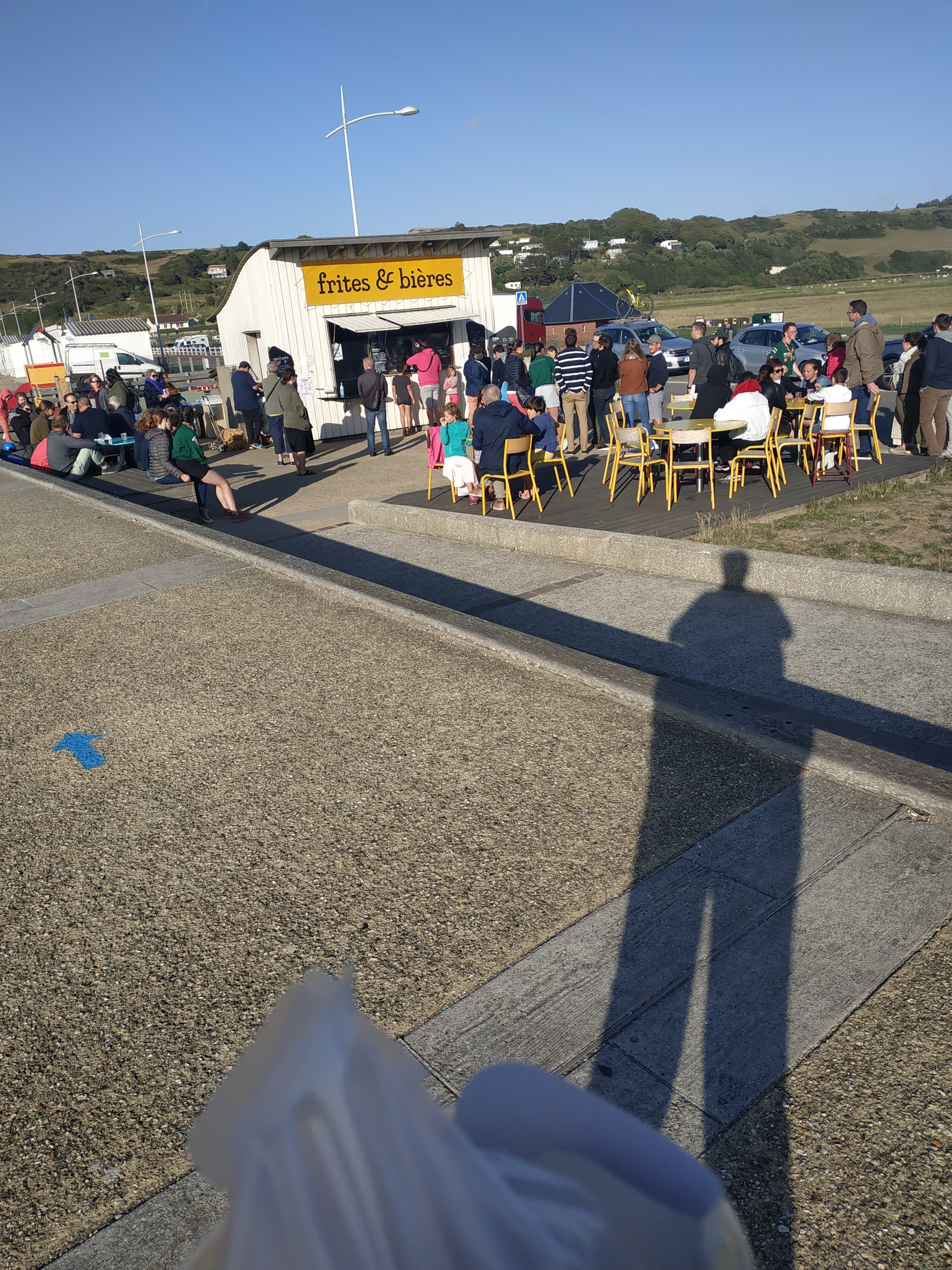 Nous étions installés sur l'aire de camping car à proximité et sommes allés manger de très bonne frites, excellentes brochettes avec une bonne bière, le tout dans la bonne humeur, et une belle vue.