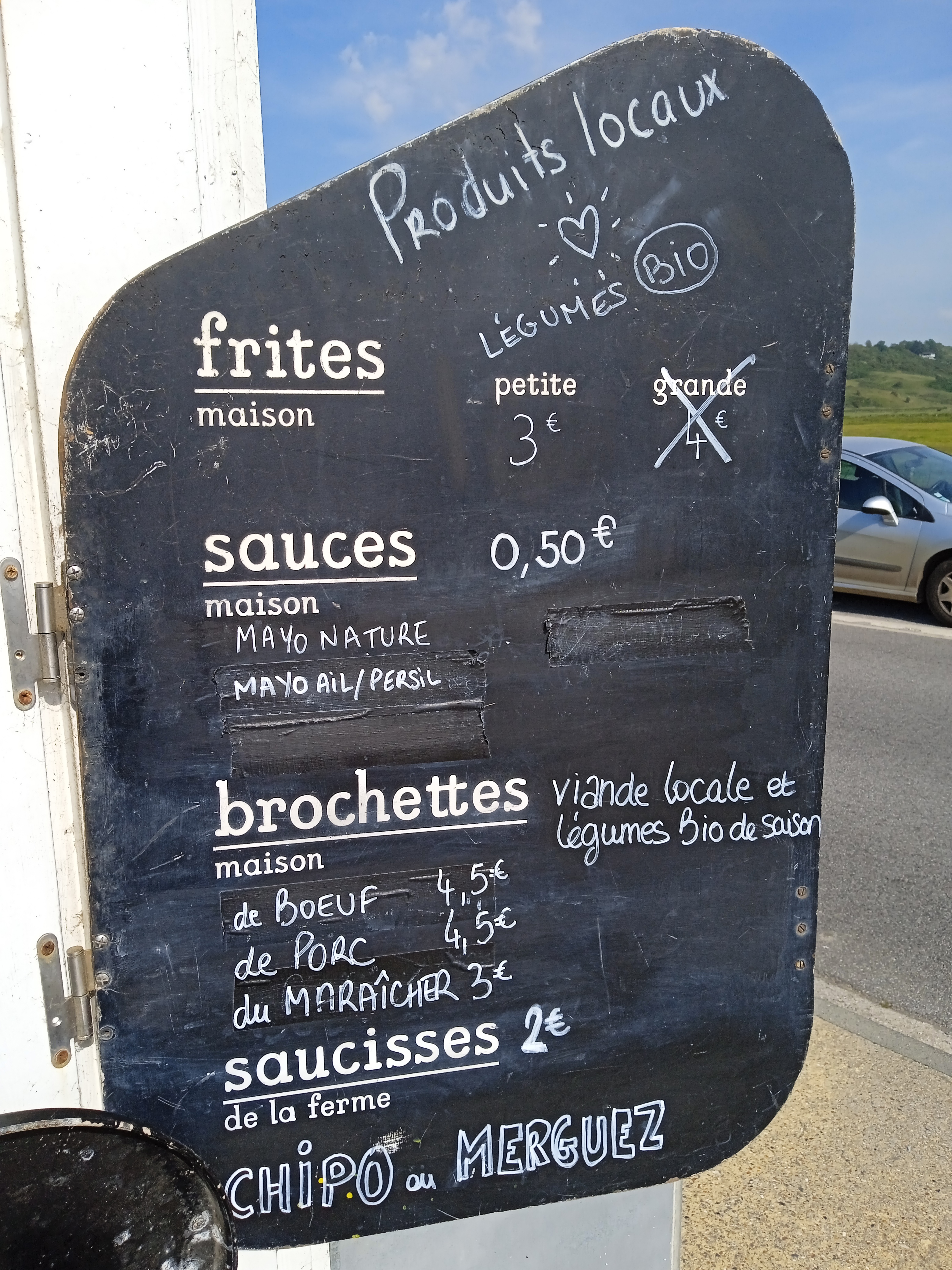 Une petite barquette de frite pour 3€, deux merguez pour 4€, des brochettes pour 4,5€, une bouteille de cidre pour 10€… tout est excellent, frais, et pour pas cher ! Tout le monde y est super sympa, et le paysage de Veulettes-sur-Mer est très plaisant. On y reviendra !