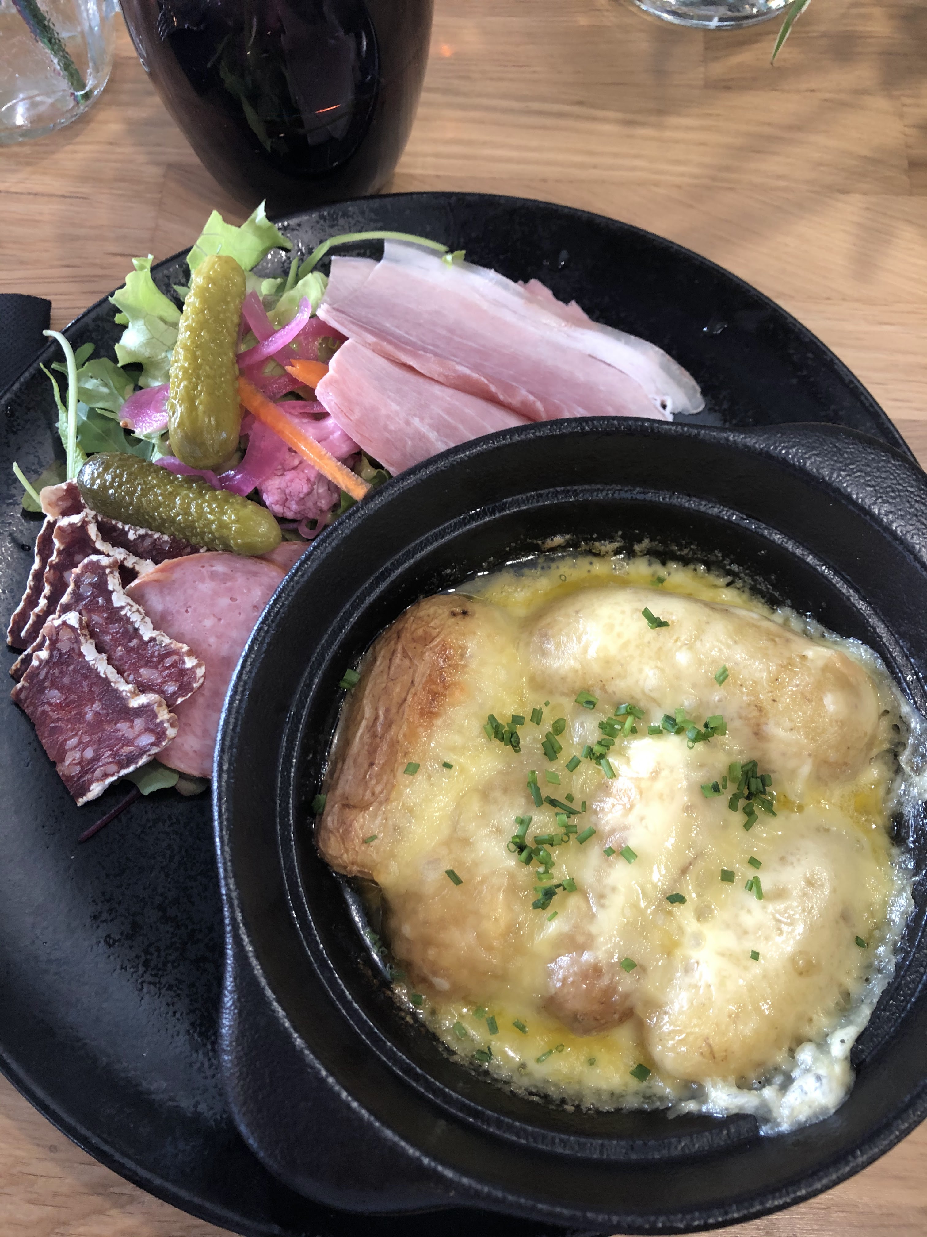 Fromages et charcuteries excellents. Moelleux au chocolat délicieux. À tester