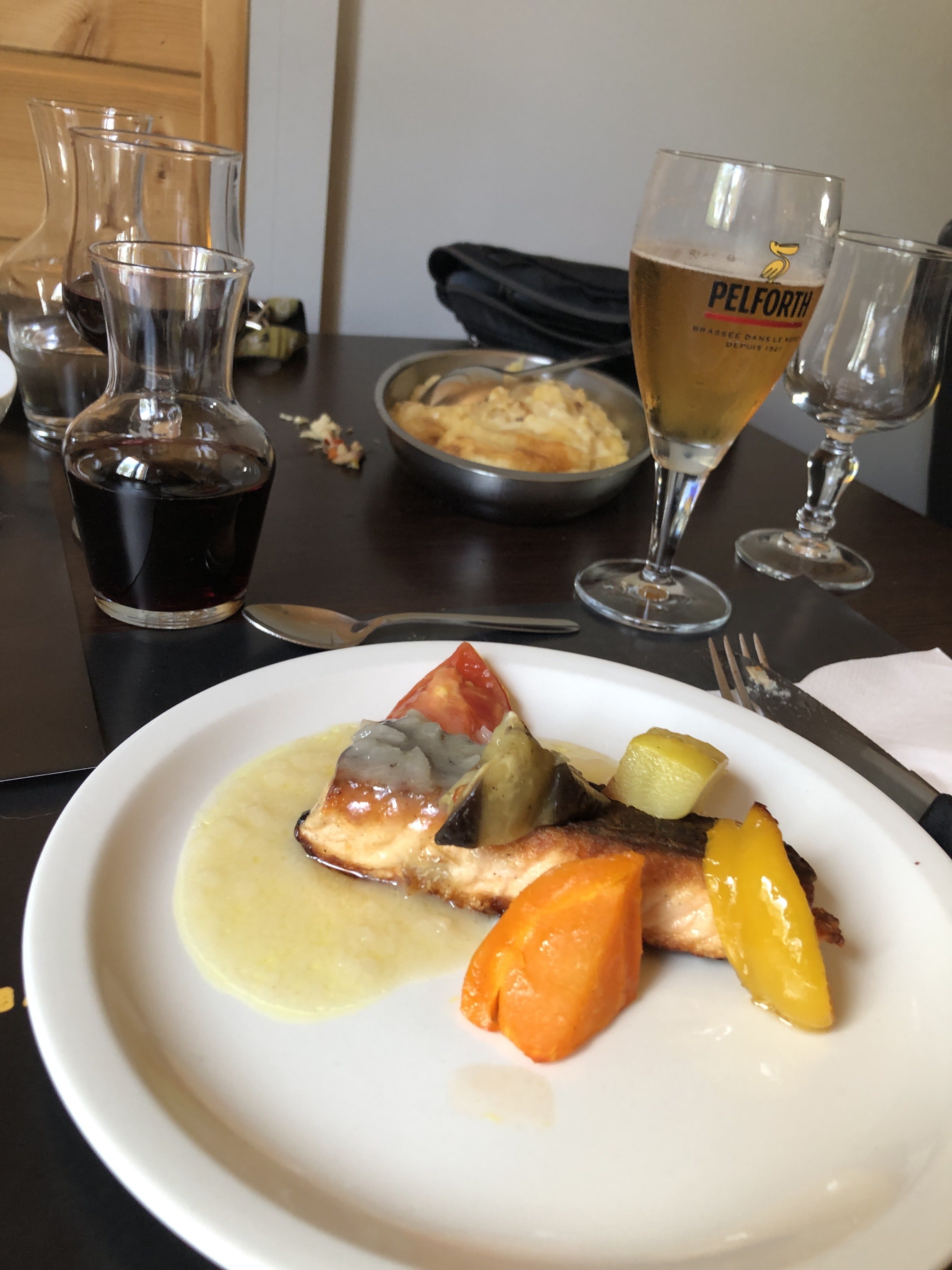 Le repas était très bon surtout le la pêche en dessert par contre je n'ai pas compris pourquoi ce qui arrive après vous sont servi avant, ont a attendu 3/4 d heures avant d'être servi