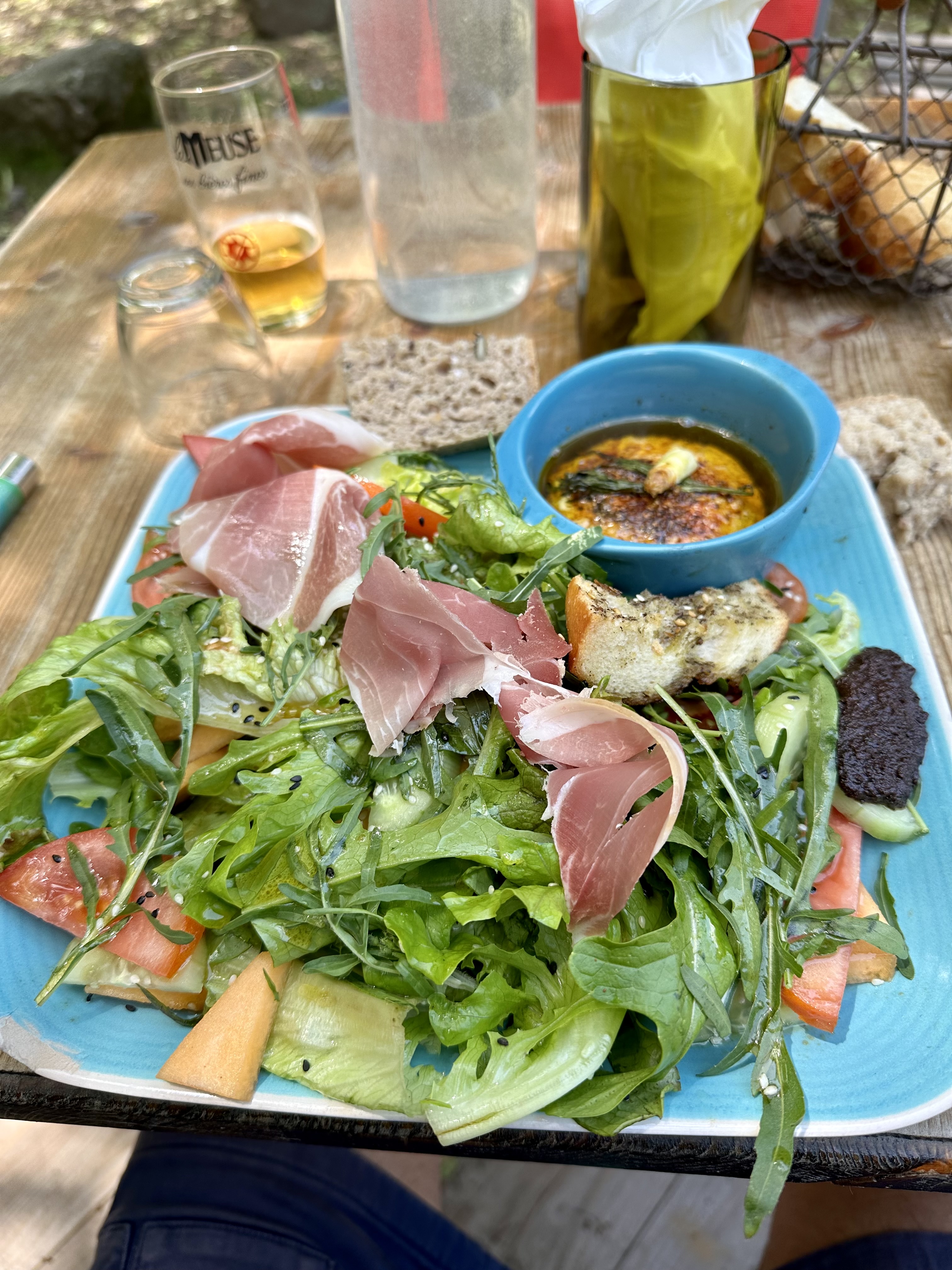 Nous avons manger une salade bourgognon ... Vinaigrette sans goût , deux tranches de jambon top budget histoire de...une fourmi dans ma salade pour la protéine...heureusement que le pelardon lui été bon...un demi rosé servi température ambiante sans glaçons rien... Verres et couverts pas super propre ... Bref pas convaincu,dommage car le cadre été sympa tout de même ..mais nous ne reviendrons pas !
