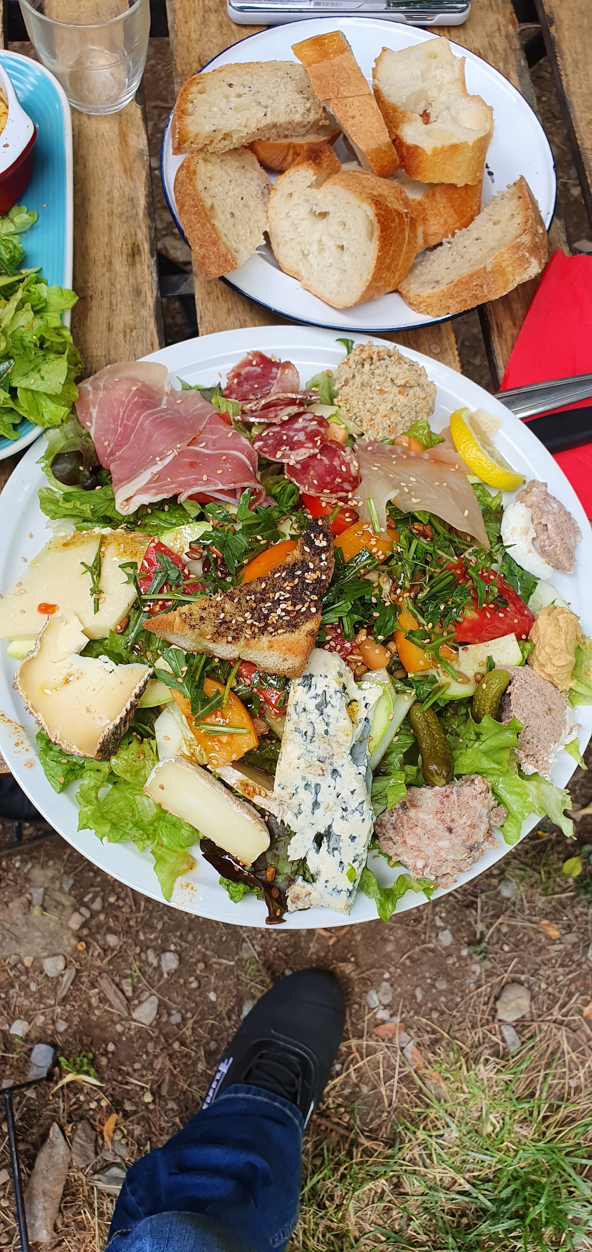 quelles sont bonnes et fraîches les salades de la guinguette du bout du lac, un lieu atypique idéal pour se poser le temps d'un repas ou bien plus...