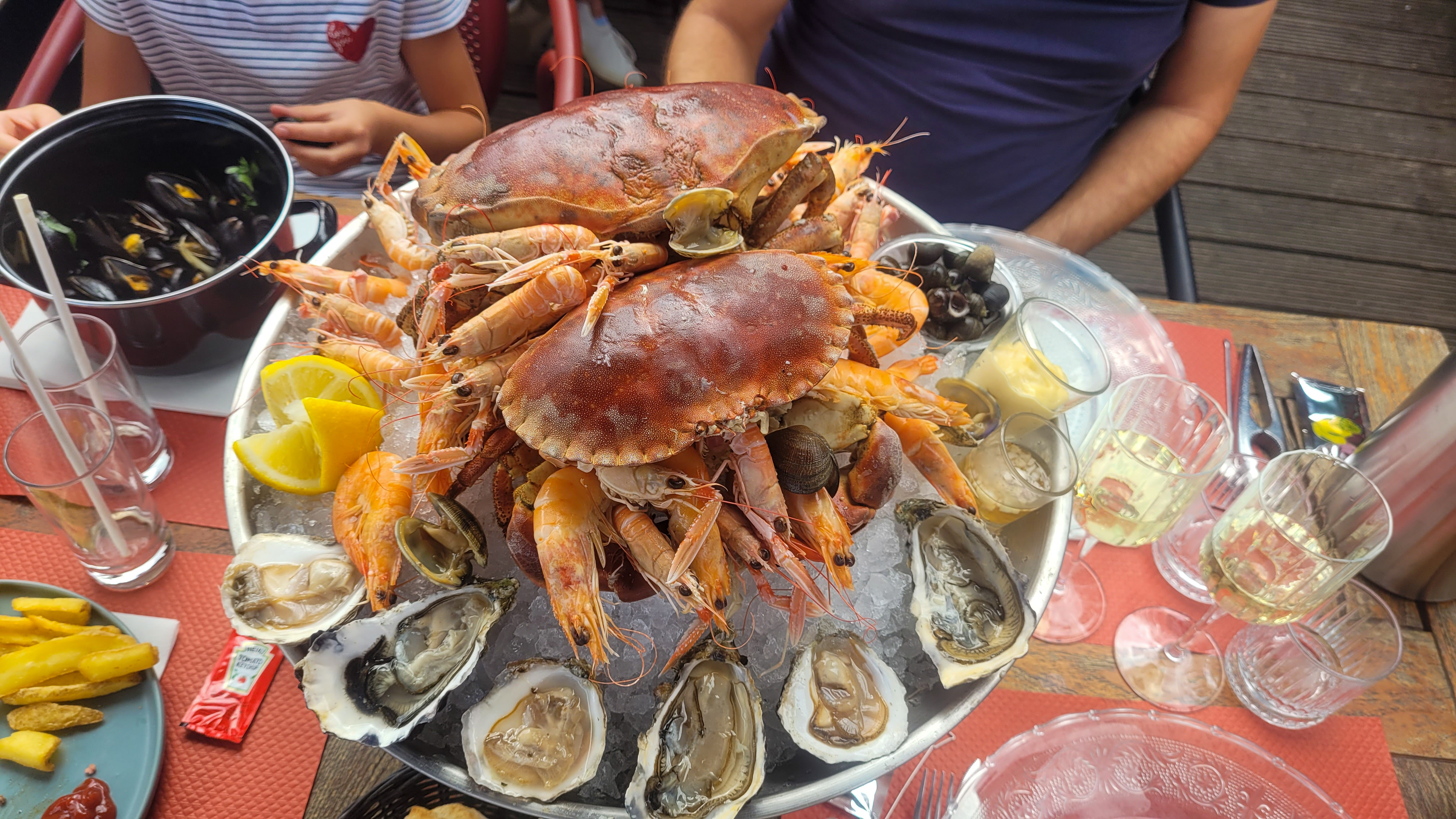 Bon accueil, moules et plateau de fruit de mer très frais. Un peu cher mais très bon et de qualité. Donc tout a un prix. Je recommande