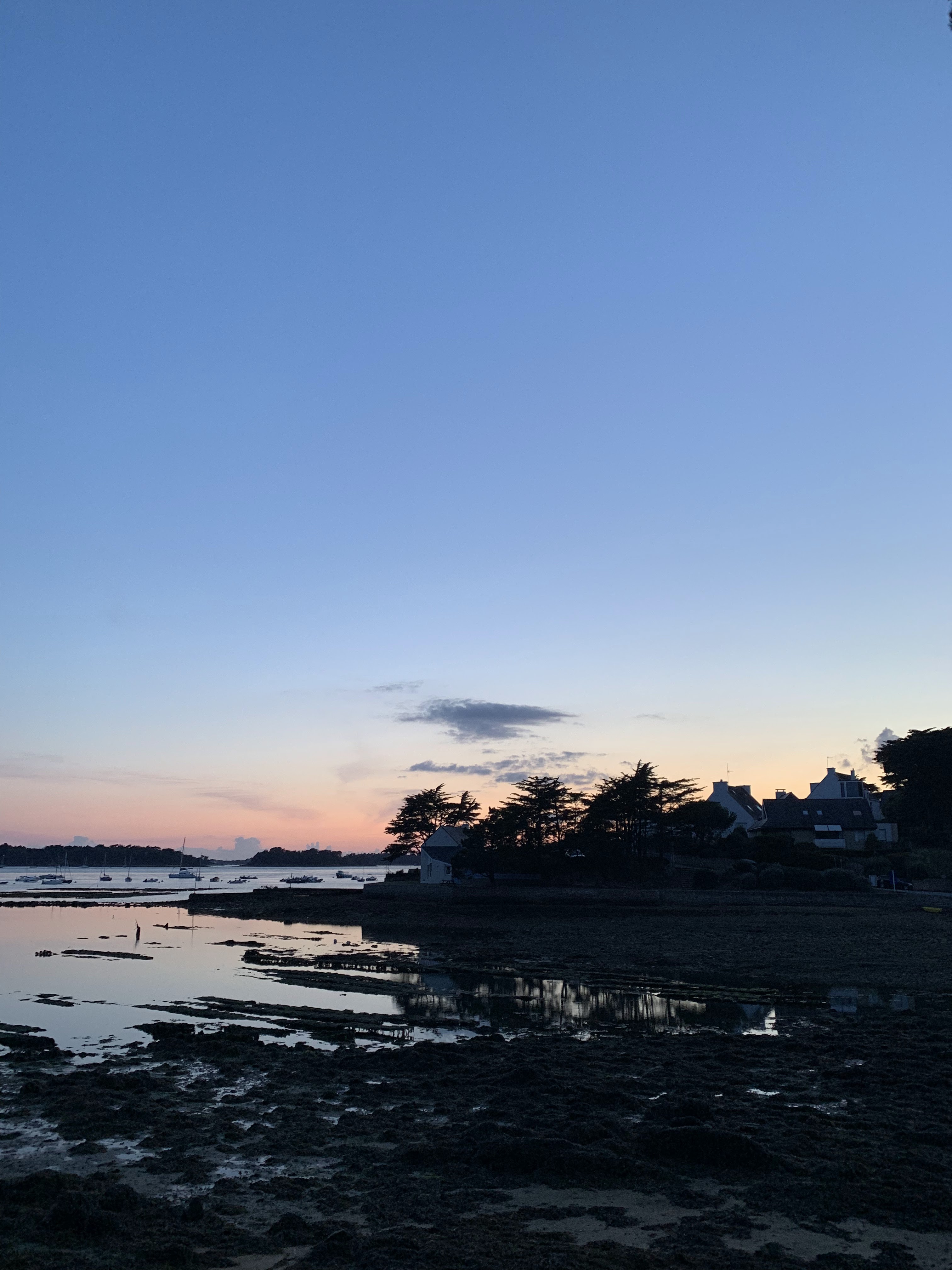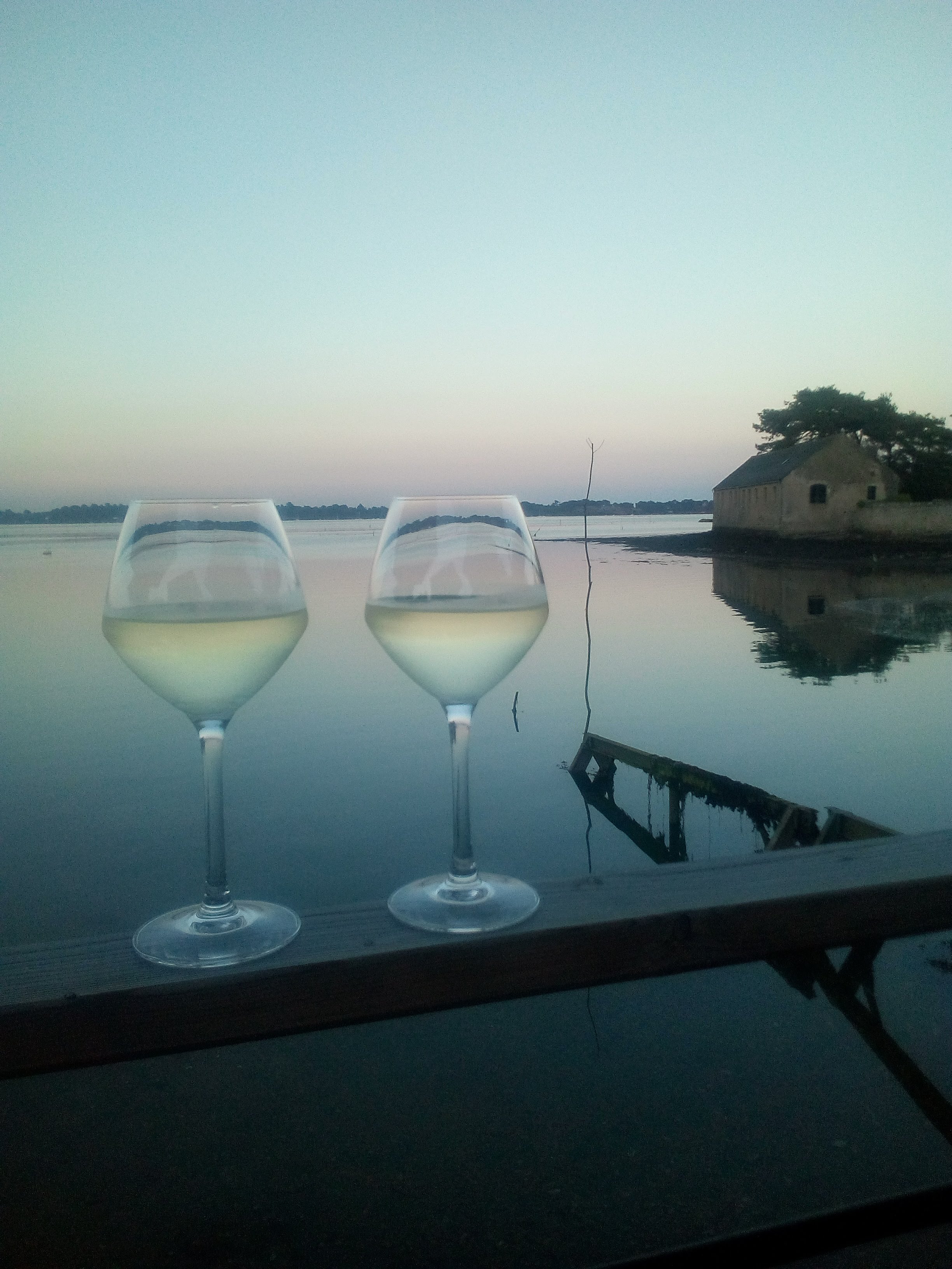 Coucher de soleil magique sur la baie et l'ile de Berder ! Service très sympa, l'ostréiculteur a pris le temps de nous a donner plein d'infos sur les huitres ! Produits ultra frais !