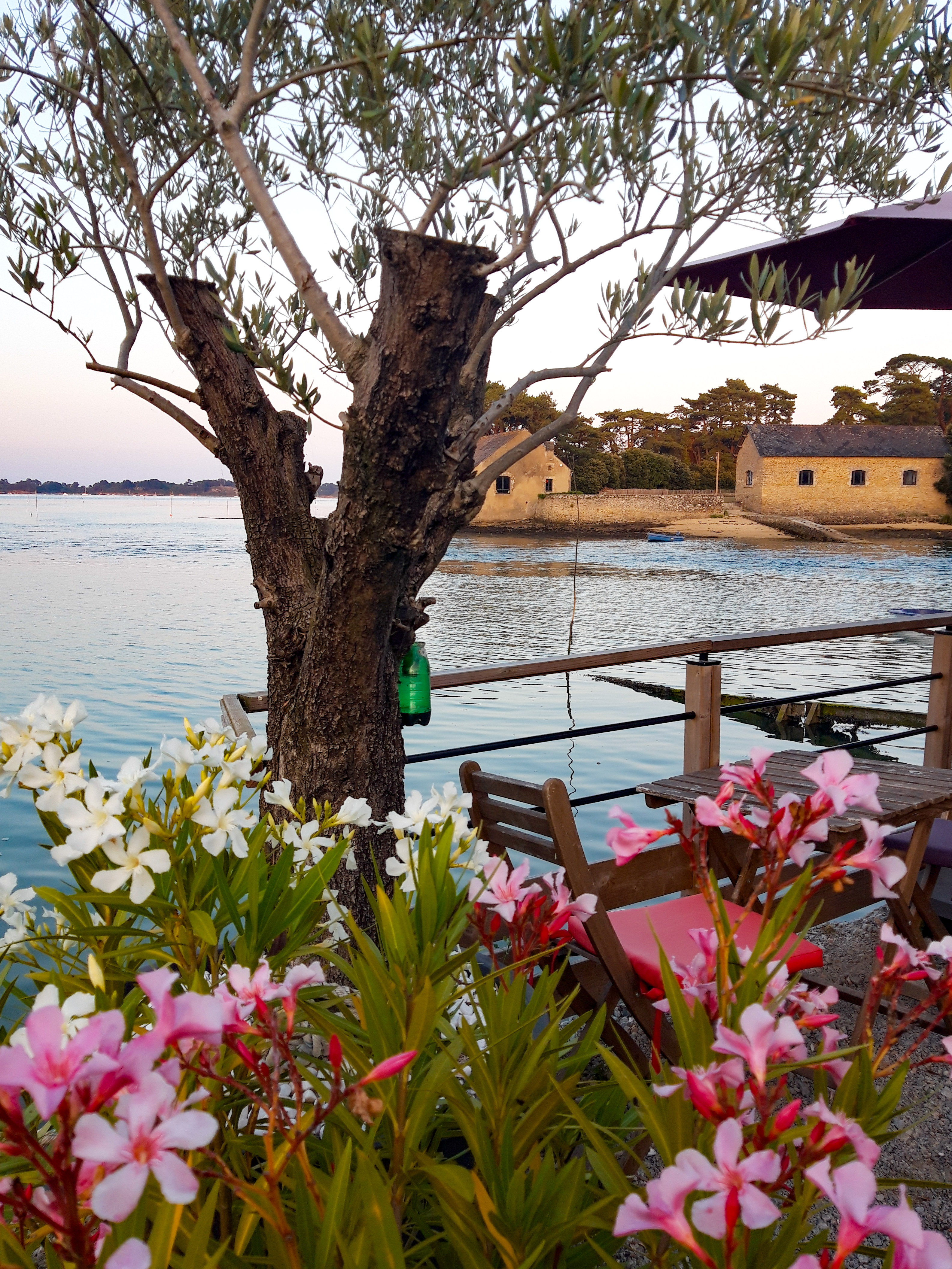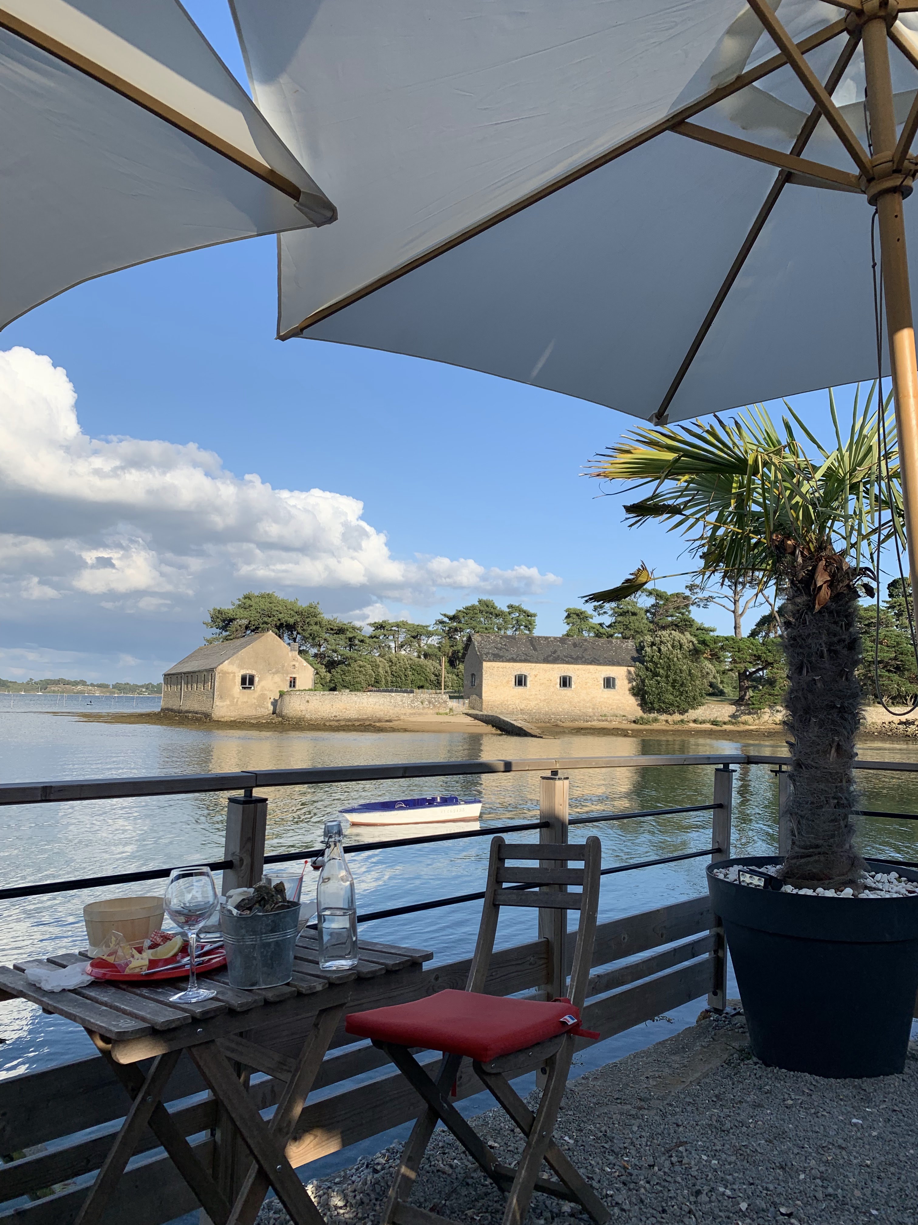 Lieu idyllique pour les amateurs d'huîtres. Petit coin de paradis au bord de l'eau en terrasse, en plein dans le Morbihan. J'aime beaucoup y dîner au moment du coucher du soleil.