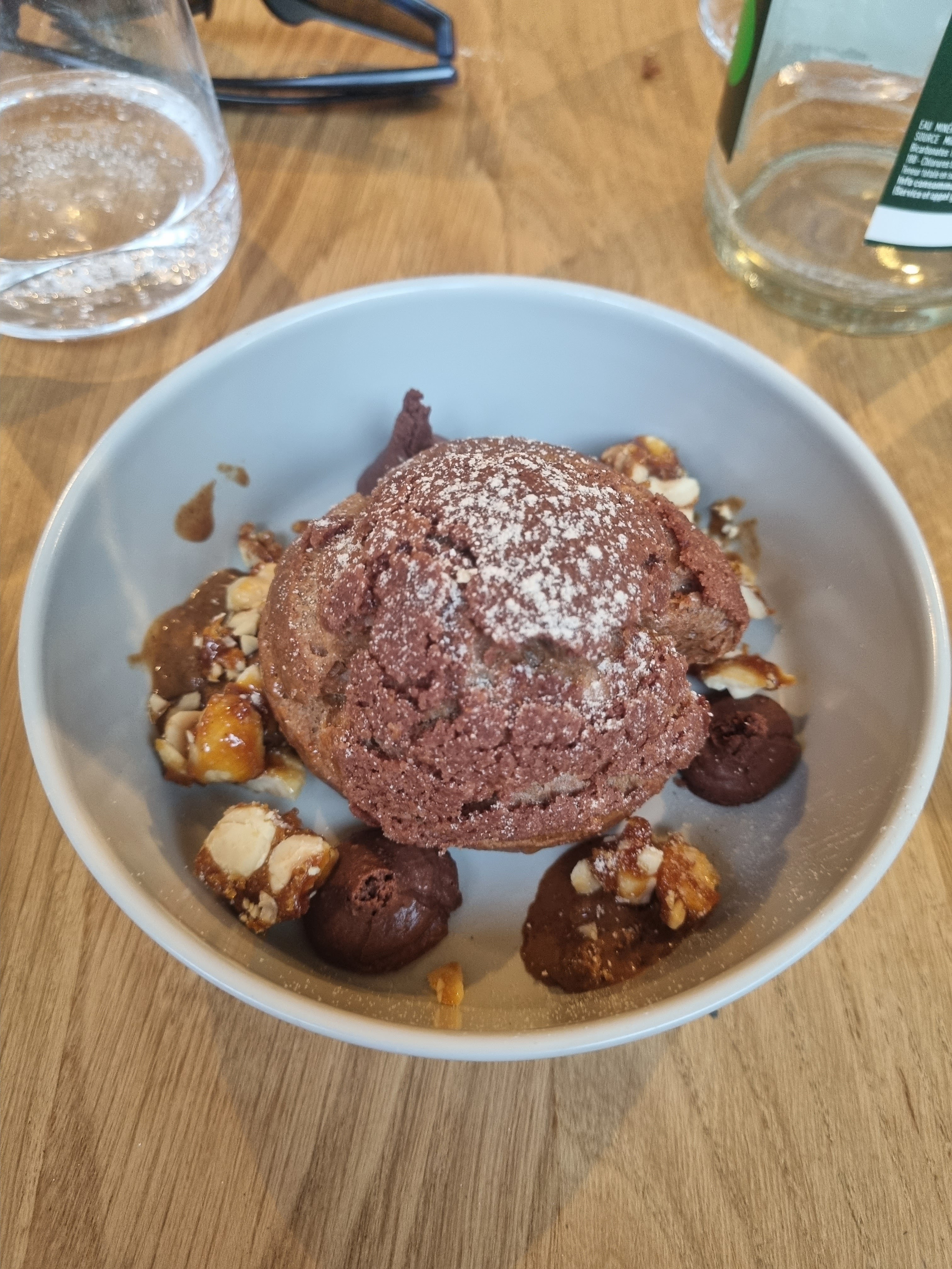 De passage sur Amiens, on aperçoit le restaurant en allant à la cathédrale. Je vois cuisine engagée et cela m'intrigue. 3 entrées, 2 plats, 1 fromage, 2 desserts. Toutes les tables intérieures étaient réservées sauf 1. On fait l'ouverture, ayant un spectacle à 20h. Produits frais, agréablement présentés. Coup de cœur pr le praliné du chou chocolat. Un peu plus de jus avec le poulet aurait été apprécié. Pas d'alternative végétarienne.
