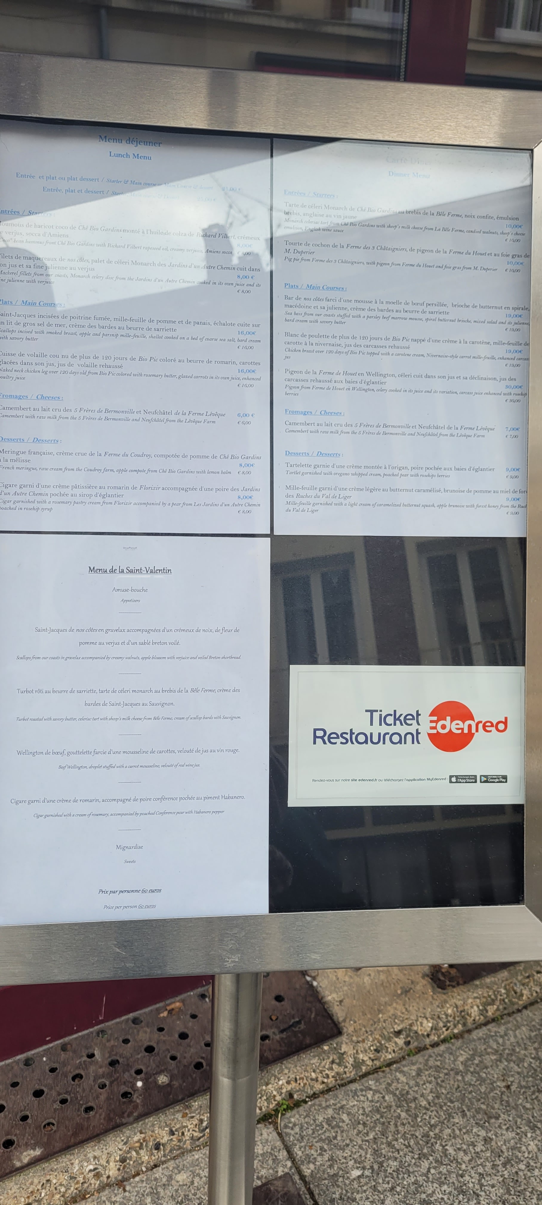 Nous sommes passées devant par hasard, le menu nous a immédiatement plu, peu de propositions, donc frais, produits du terroir, donc intéressant Nous avons été très bien accueillies , et ce fut un vrai régal ! Tartare de vives, asperges chaudes, et un dessert à la rhubarbe Plats bien présentés et papilles satisfaites Très belle découverte, si j'habitais Amiens ce serait ma cantine !!!