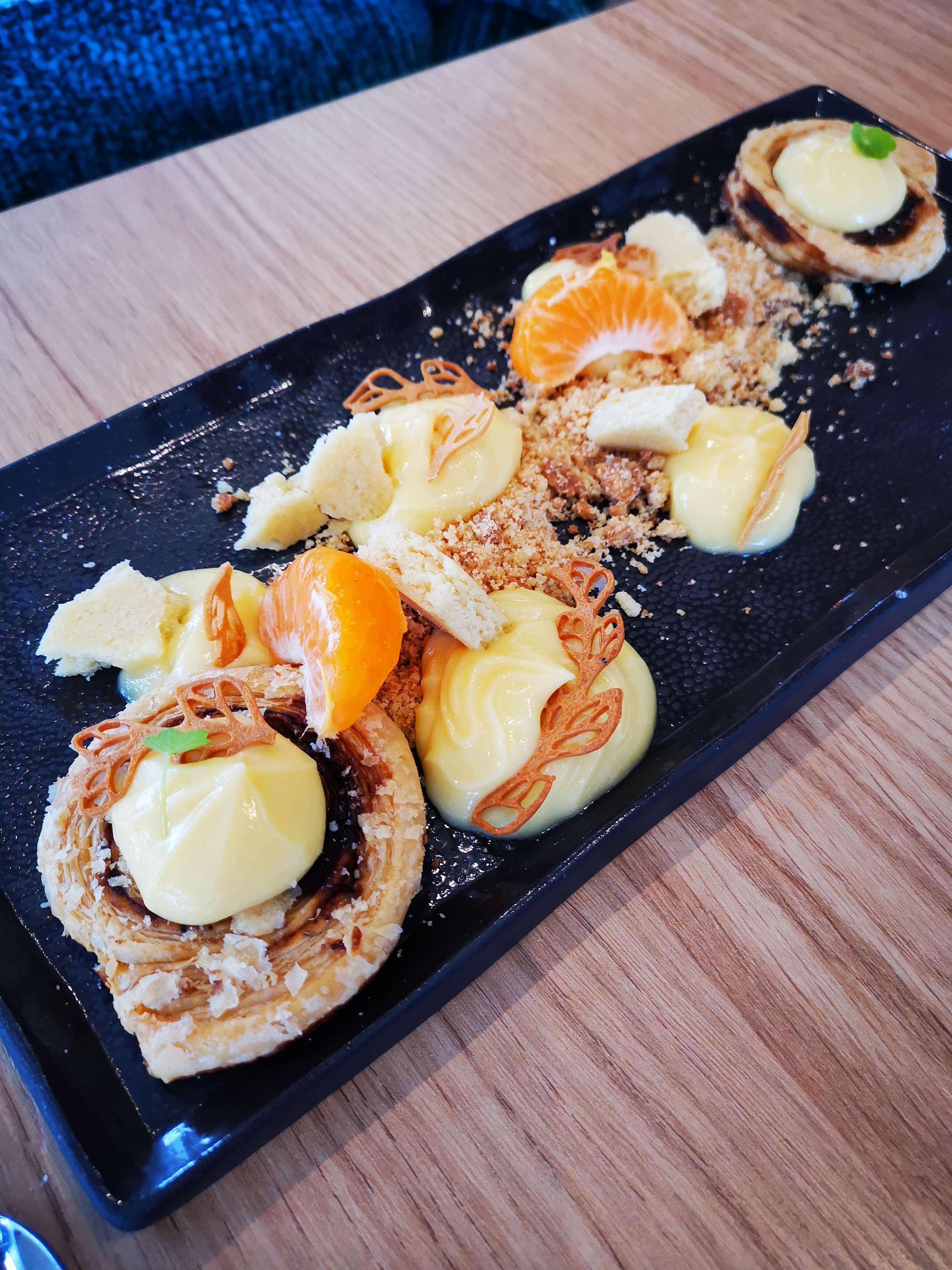 De l'appliqué pour nous régaler par les yeux puis par les papilles et le goût. L originalité de la carte a l aveugle je recommande....si vous êtes friand de découverte.... vous ne serez pas déçu par la grande terrasse, une équipe agréable et a l'ecoute. Une belle adresse ambitieuse ! 👍👍