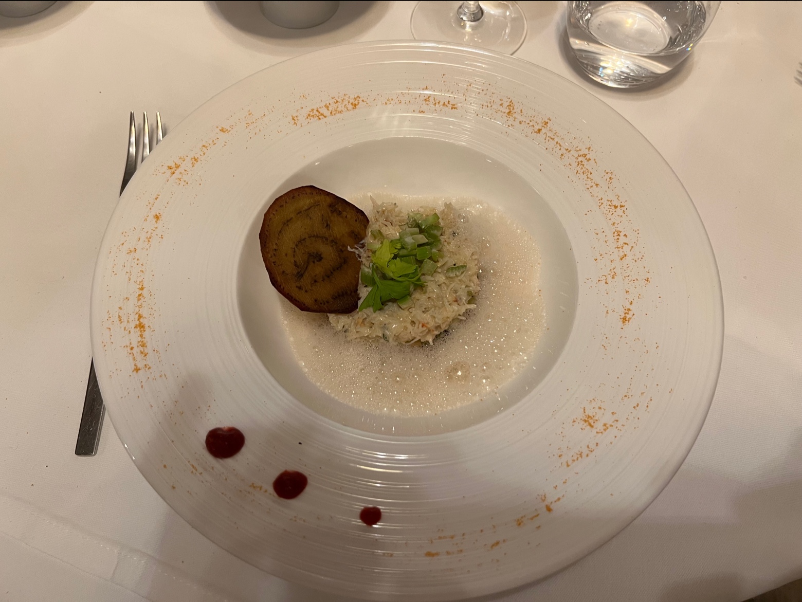 Formidable expérience gastronomique avec le menu inspiration à seulement 49€ ( gambas sur un lit de houmous revisité, chevreuil fondant à souhait aux salsifis, un légume injustement oublié et dessert chocolat-praliné croquant et goûteux). Service impeccable, cadre chaleureux. What else ?