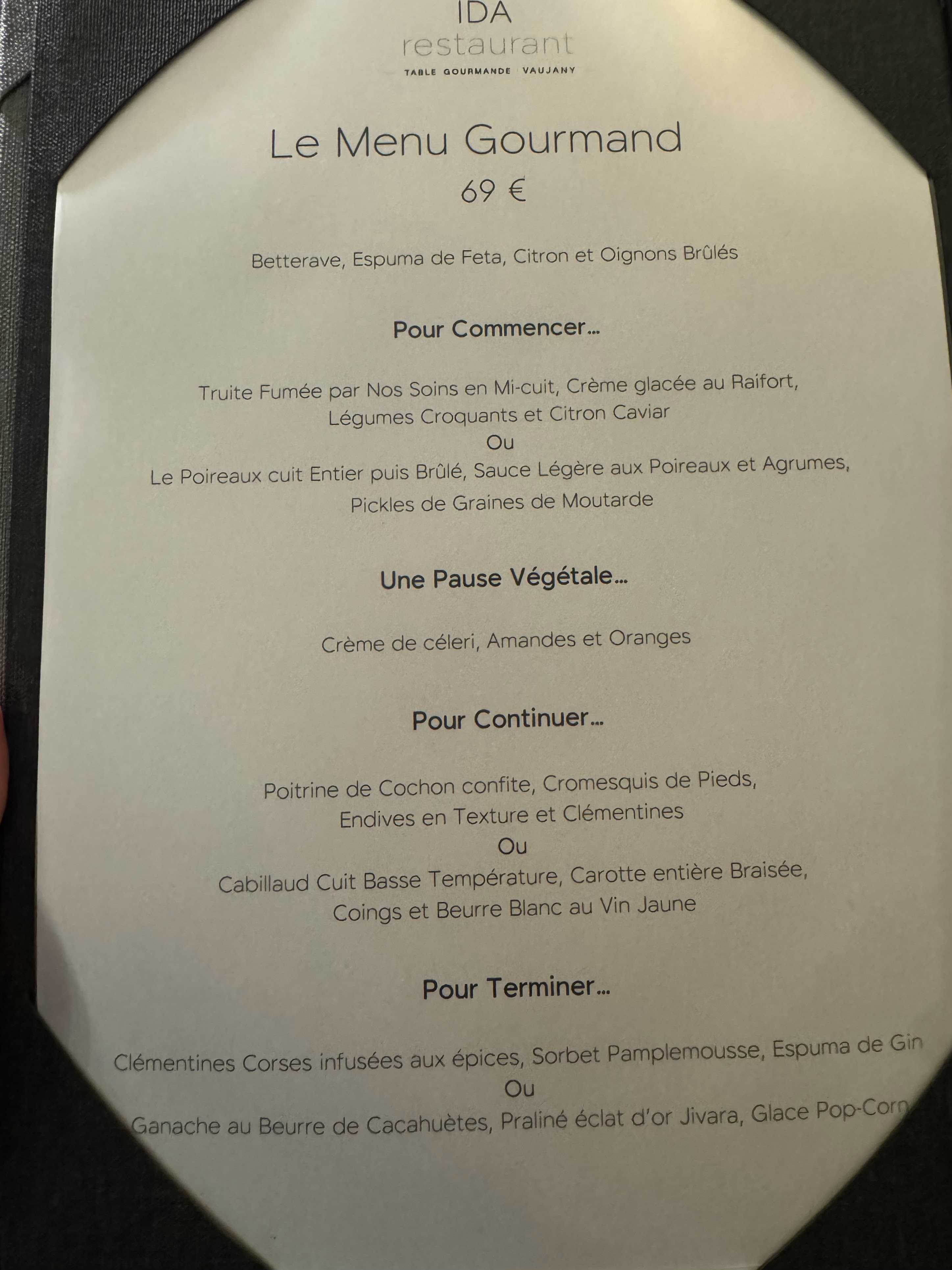 Posté le 08/08/2023 à 19:46"Une cuisine de grande qualité grâce à des chefs à l'expérience professionnelle de renom et une super équipe. Un service très attentionné. Une expérience très riche autant en gastronomie qu'en art de vivre. Rare dans l'Oisans. Je recommande le menu gourmand. Cadre très raffiné. Merci à toute l'équipe de IDA et en particulier à Roxanne, Stéphane et Mélissa."