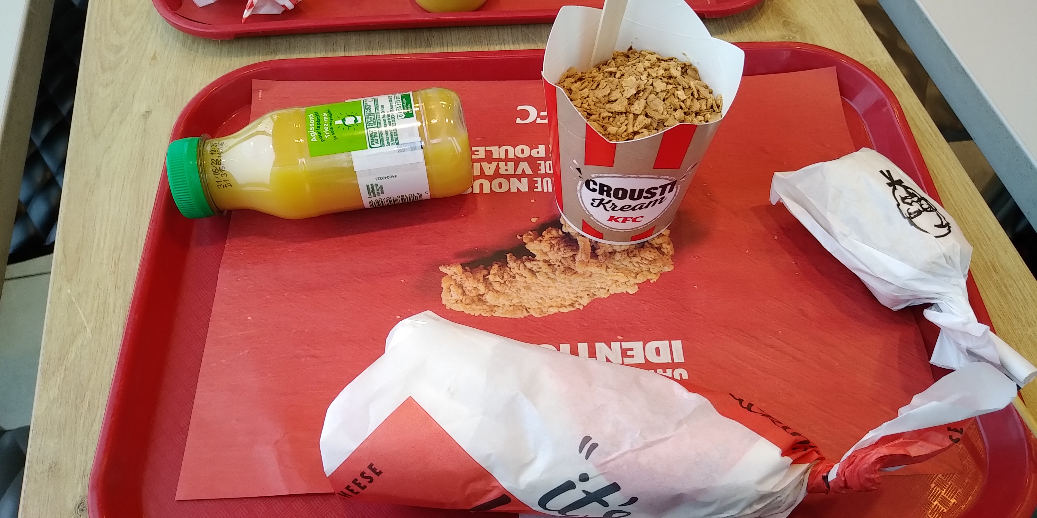 Rien de spé, juste 2 personnes qui avaient envie de manger, et ns voilà, au KFC pr un moment rare et Joyeux, il faut dire que cela arrive les 34 du mois.