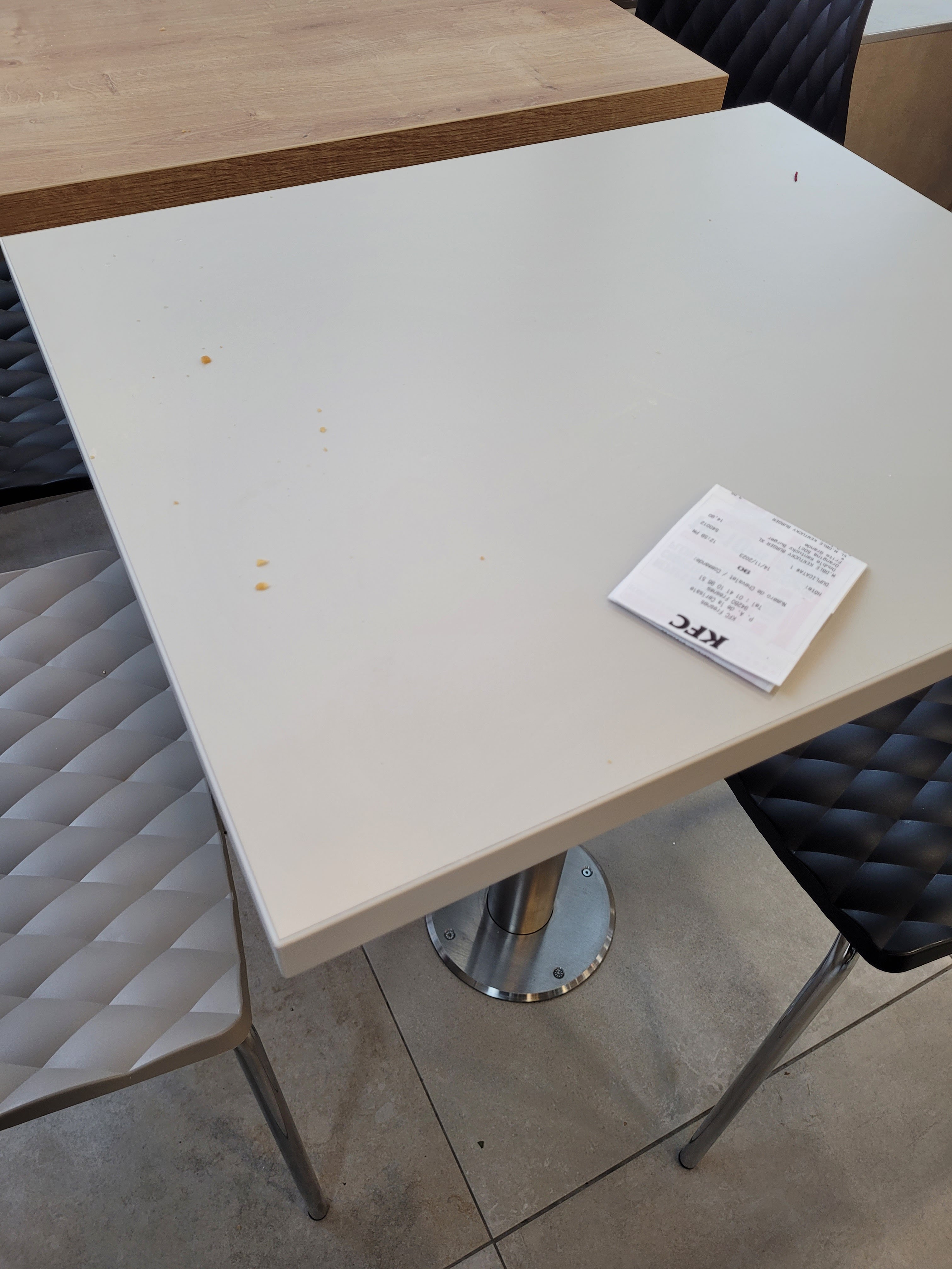 Fuyez!! Mon copain et moi nous sommes venus hier, et il est tombé malade, il a vomis tout la nuit. Je précise que c’était son seul repas de toute la journée. L’hygiène n’y est pas que se soit en cuisine ou en salle. Pour le bien de votre microbiote ne venez pas dans ce kfc.