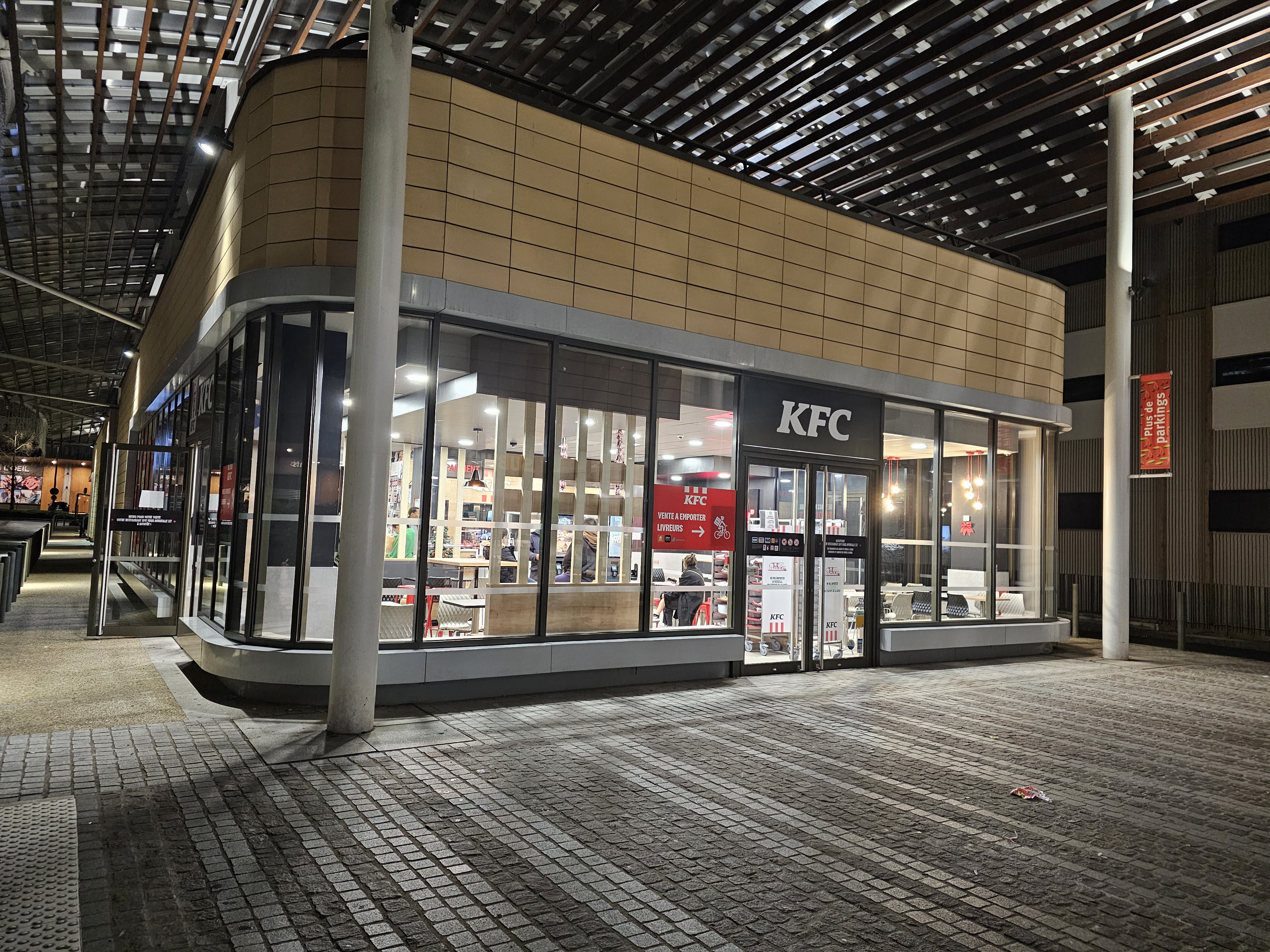 Le restaurant est quand même petit si vous venez en famille il serait préférable de prendre à emporter. En ce qui concerne la nourriture je suis allé deux fois dans ce KFC: une fois vers 14h, un jour de semaine; une autre le samedi soir. Résultat, celui de la journée était bien meilleur on sentait les épices et c'était croustillant tandis que celui du soir était assez décevant...